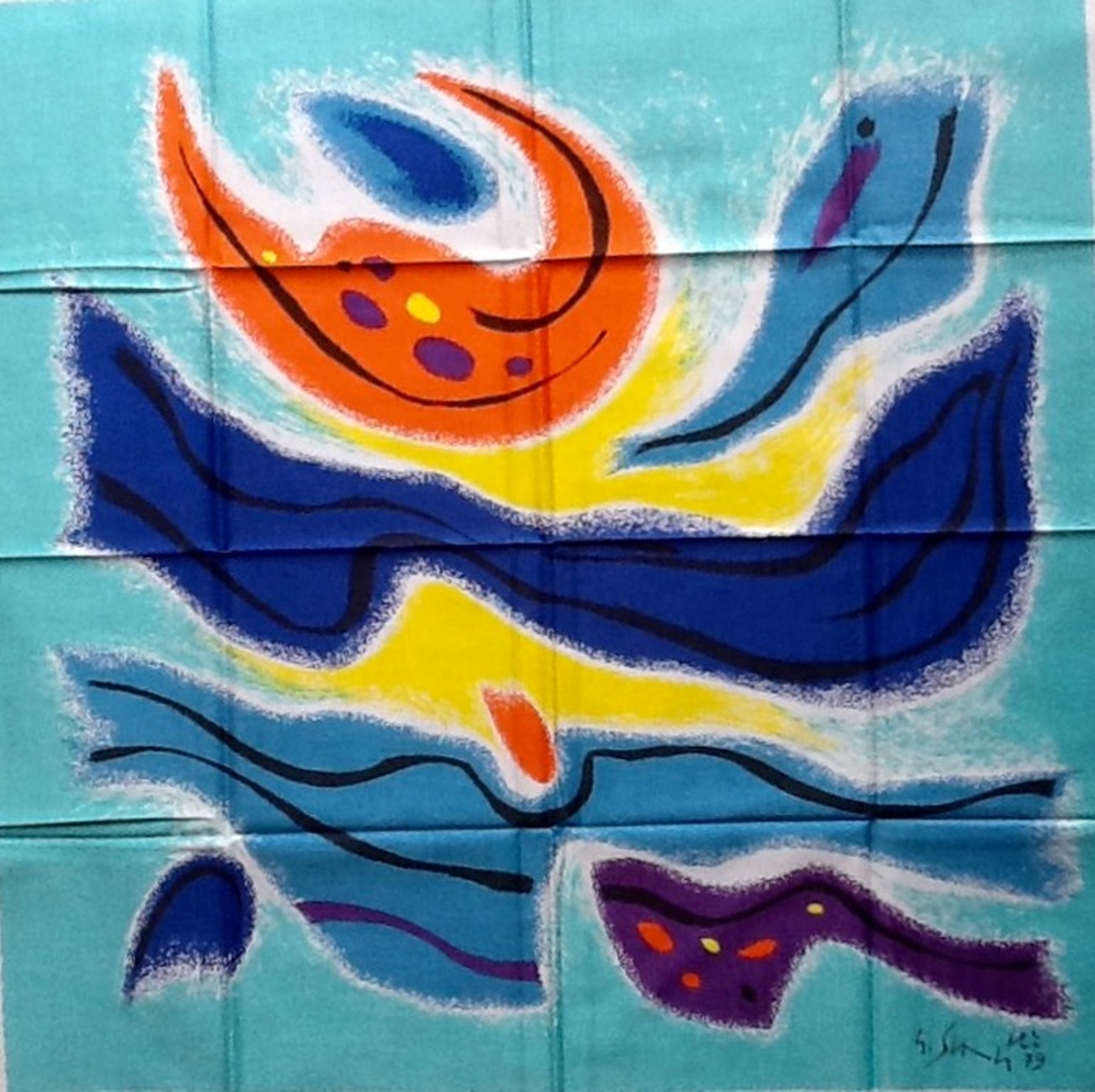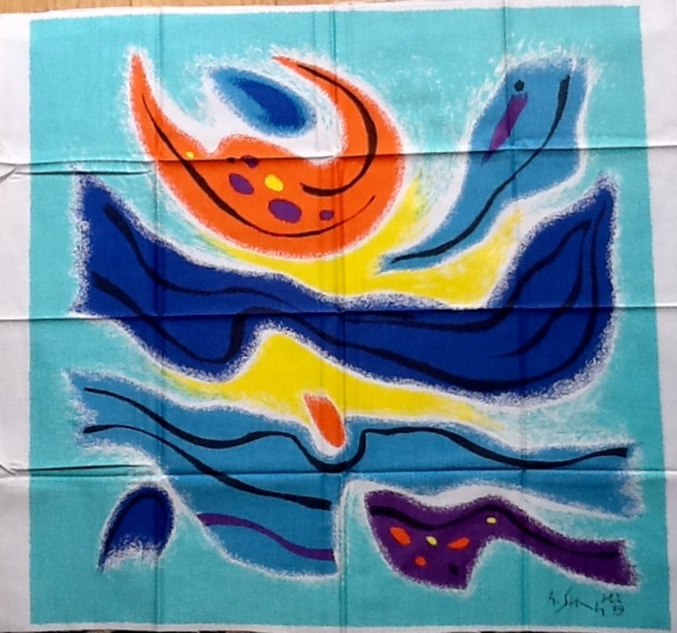 Unieke zeefdruk op katoenzijde. 7 kleuren