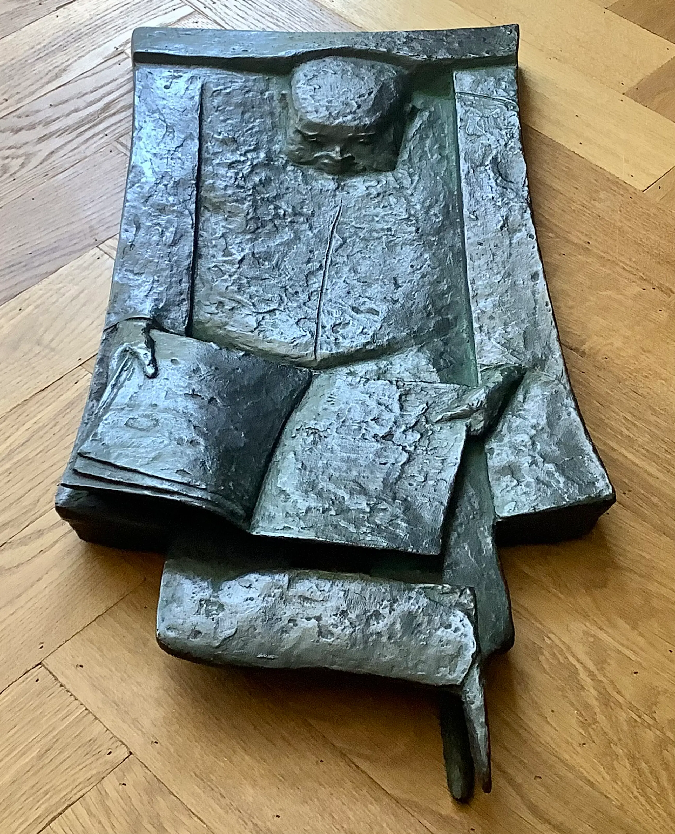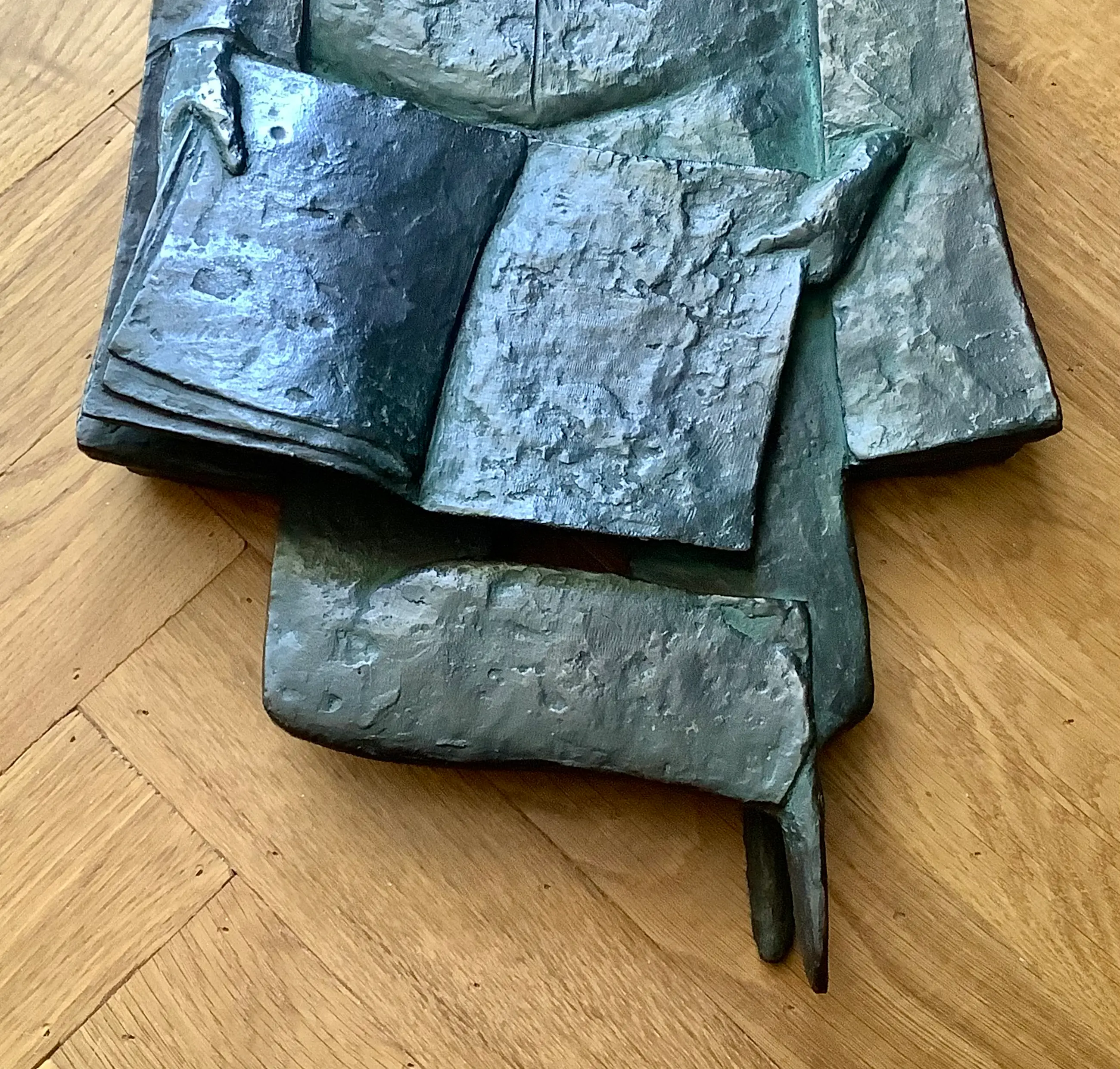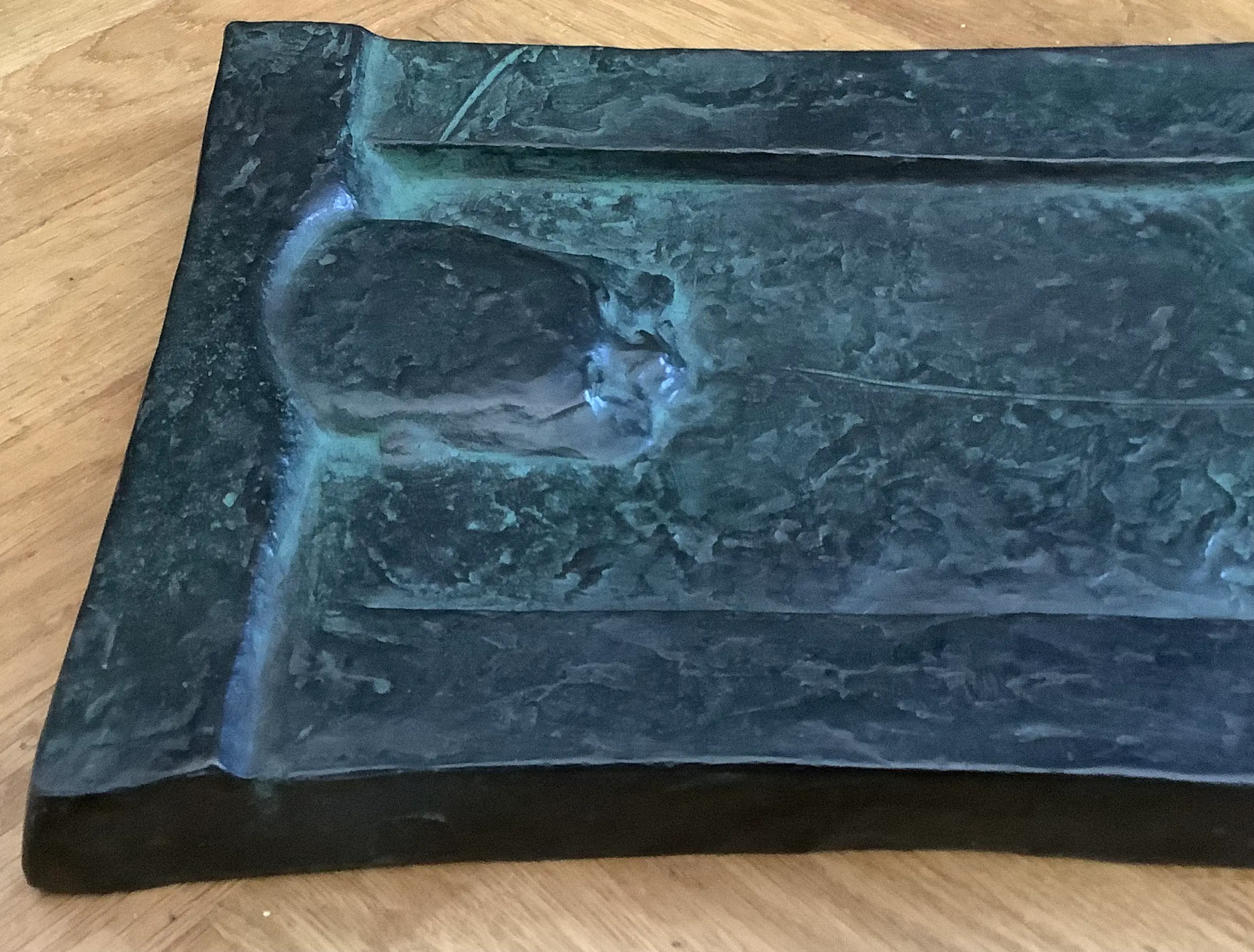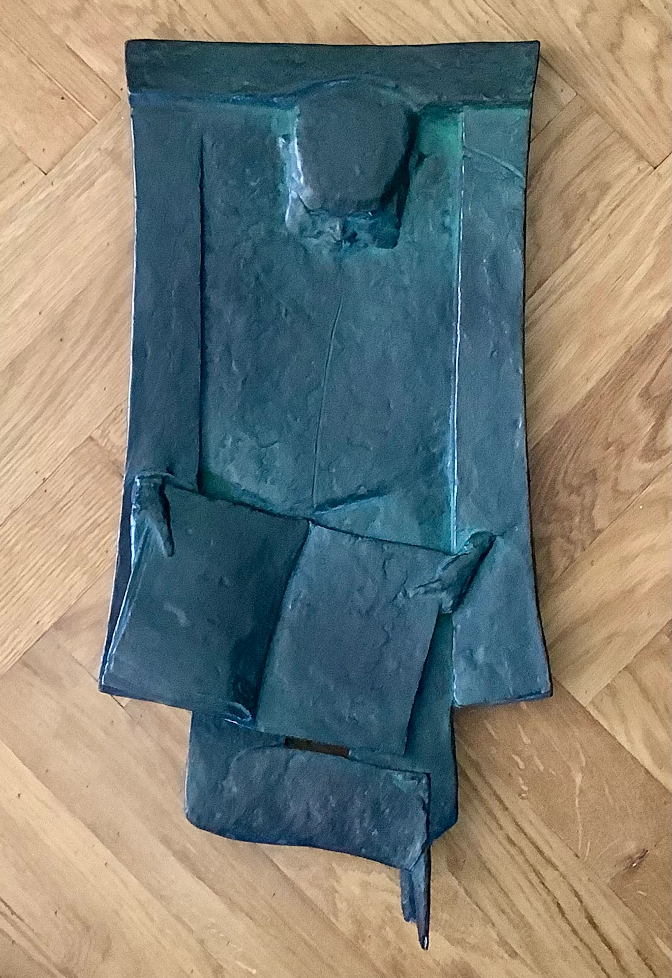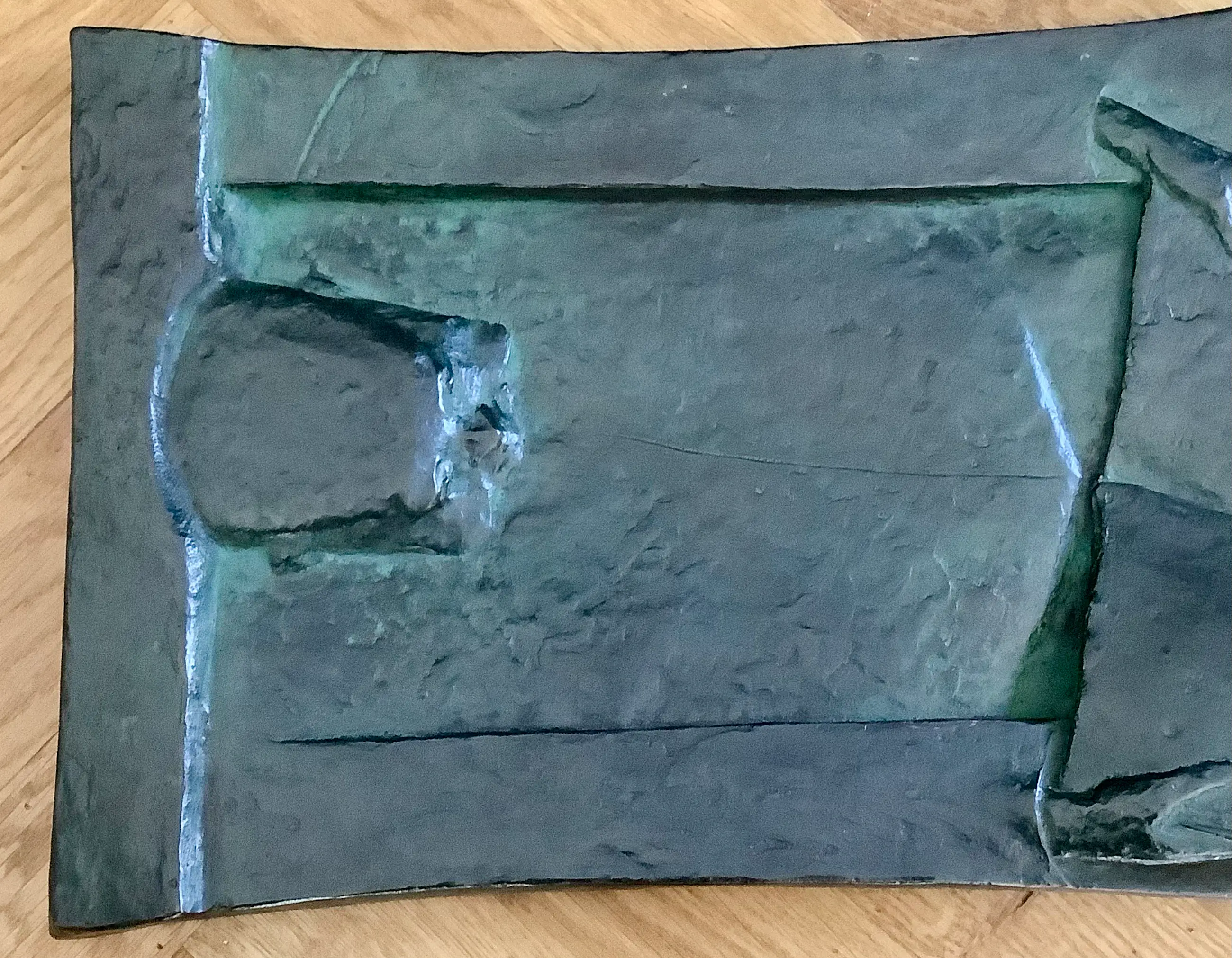 Wandsculptuur van Guus Hellegers. Typerende “platte” wandsculptuur. Wordt niet verstuurd vanwege gewicht en kwetsbaarheid.