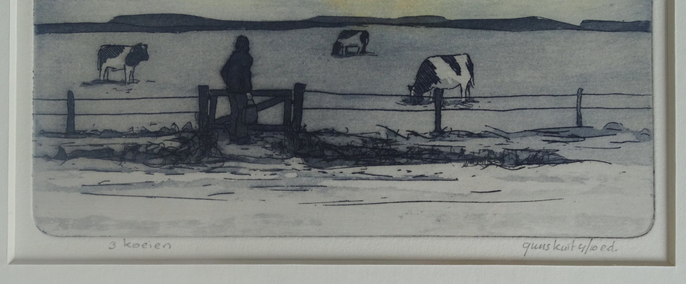 Twee mooi ingelijste etsen van Guus Kuit. De werken zijn met potlood gesigneerd en in goede staat.