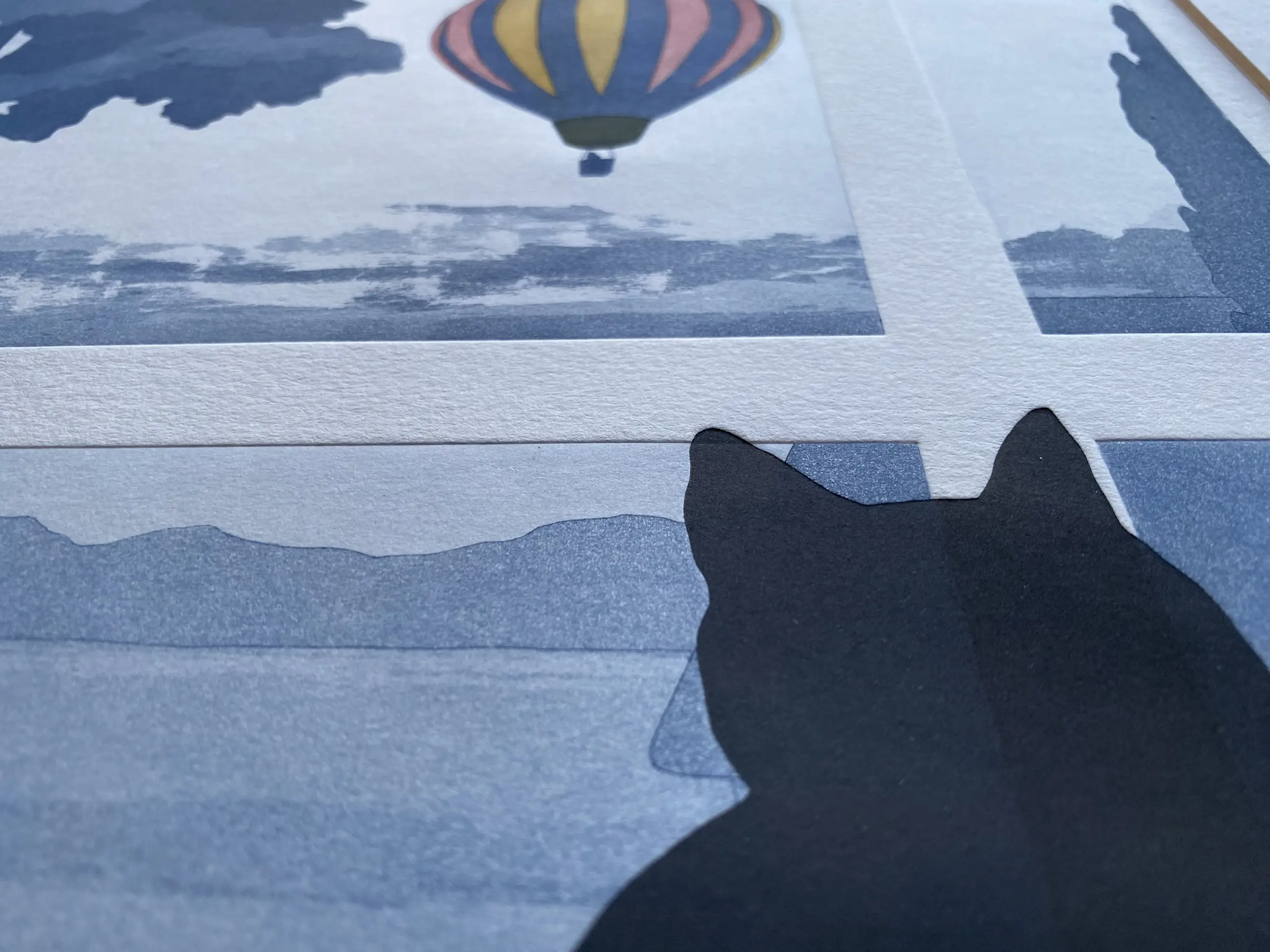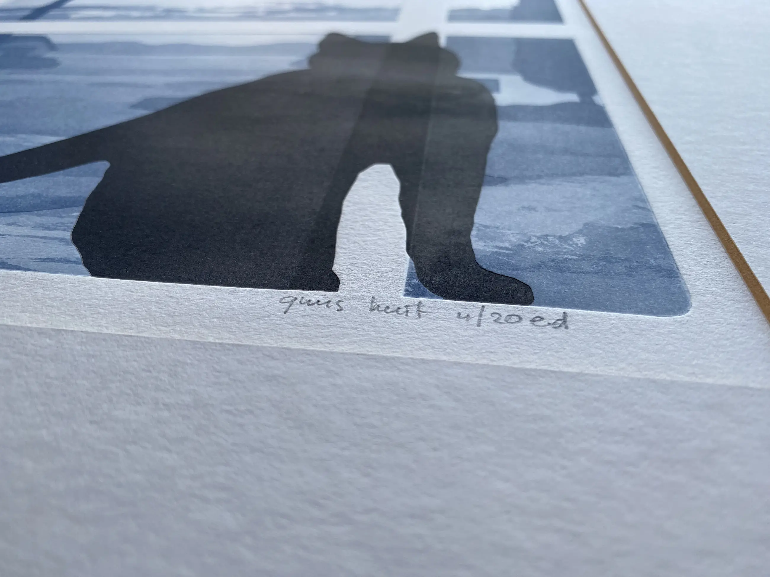 Mooie kleurets “uitzicht 15” van Guus Kuit. Eigen druk 4/20 Ingelijst in een aluminium lijst.