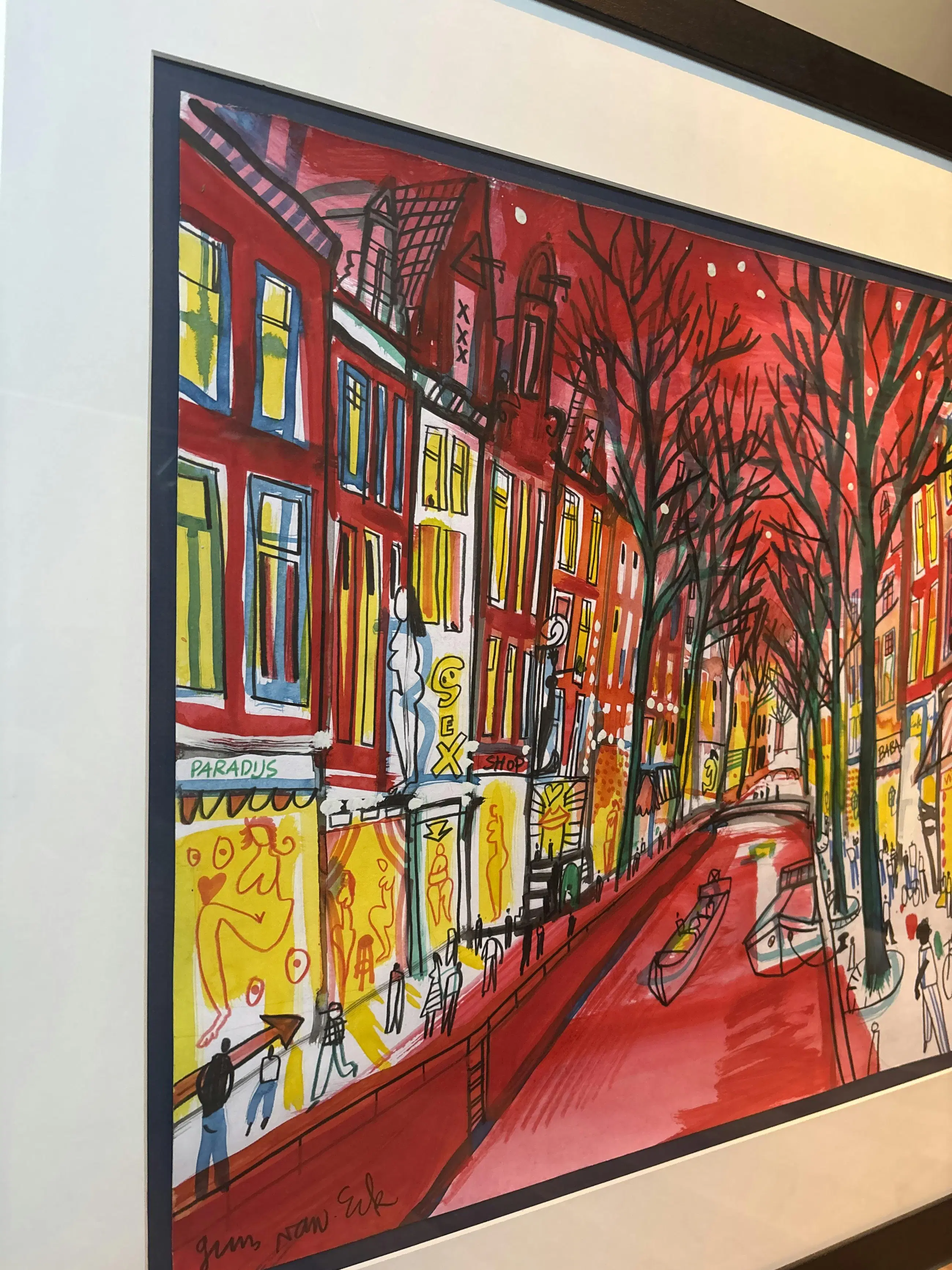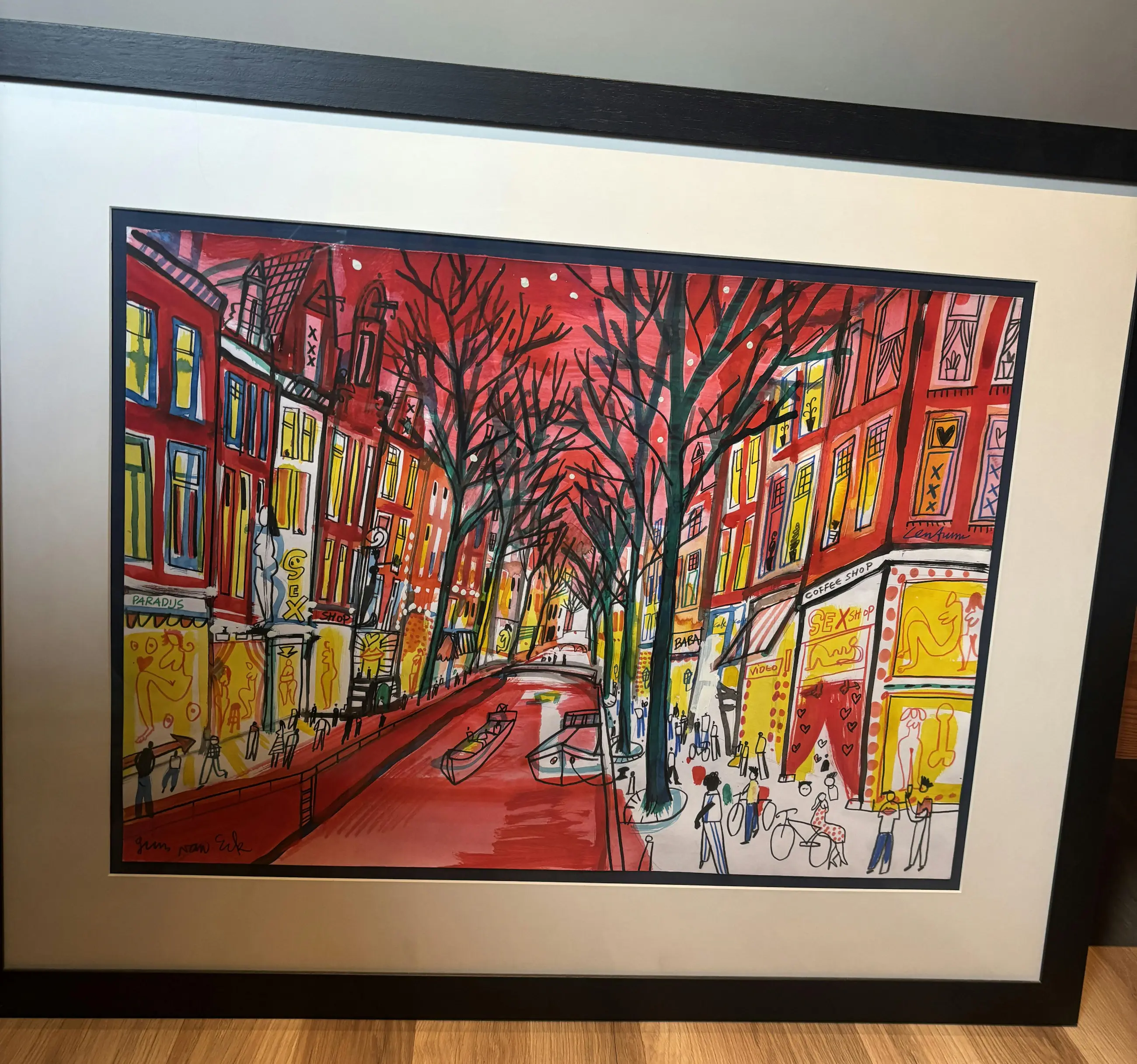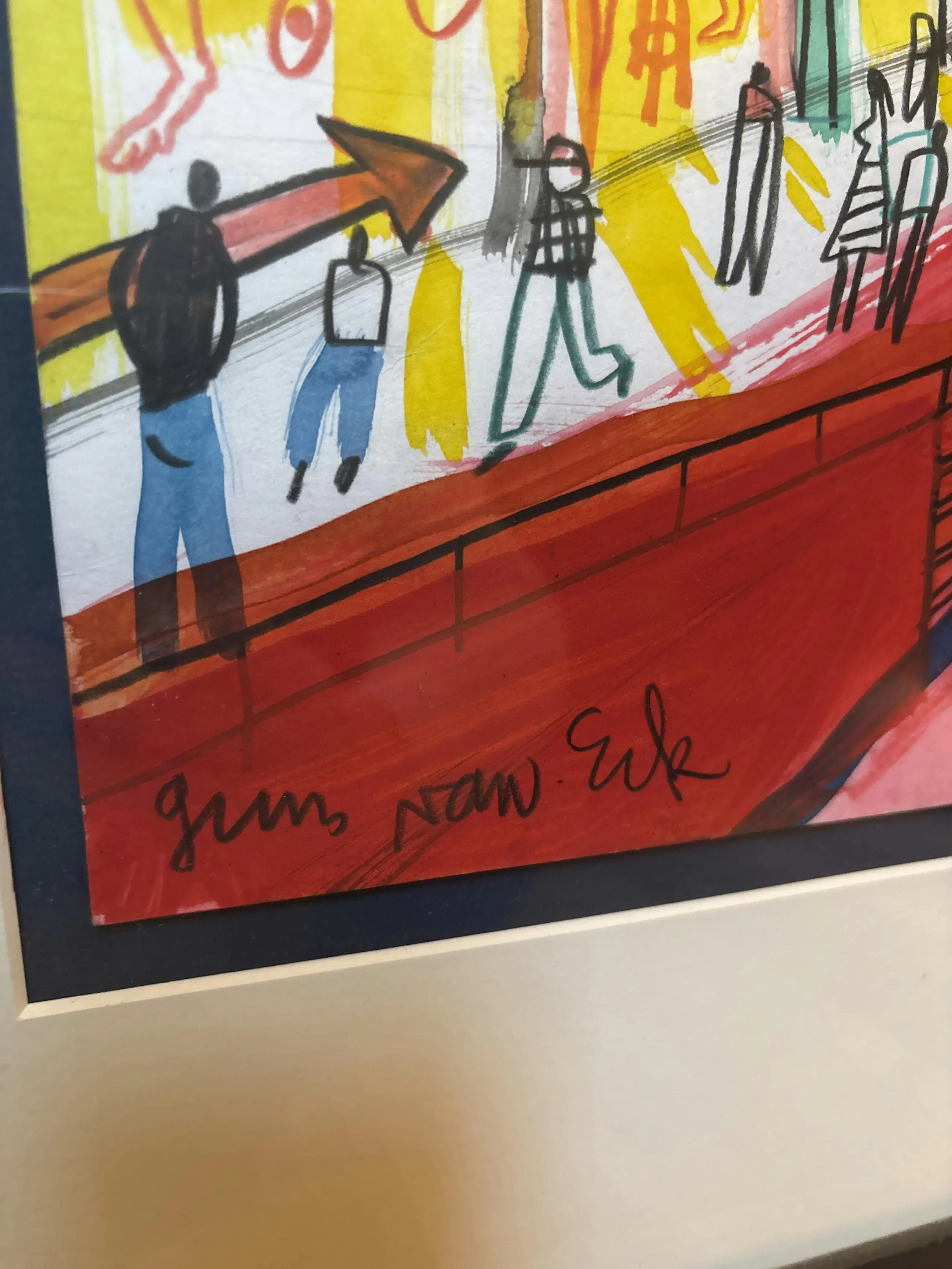 Leuk werk waar je steeds opnieuw weer een nieuw detail ontdekt als je ernaar kijkt Het hele werk incl lijst is nog in zeer goed staat