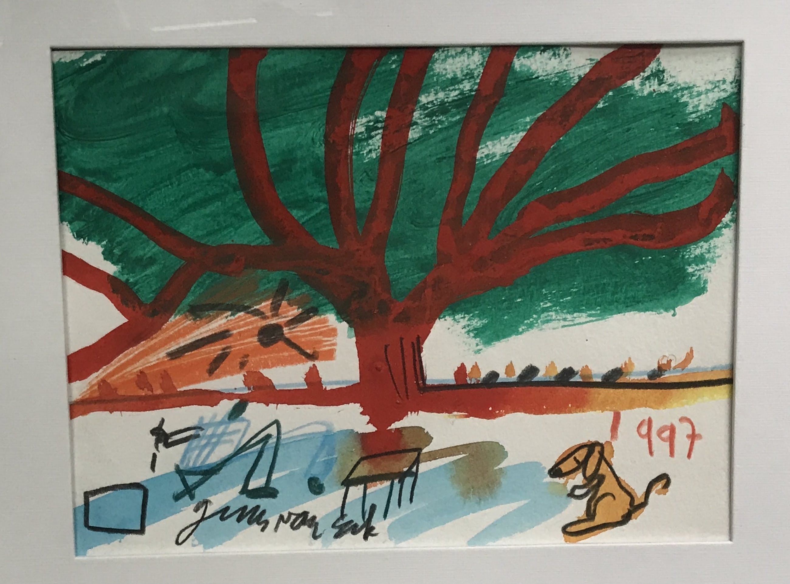 Moderne gouache; 1 van de 1300 originele werken die Guus in 1997 maakte in opdracht van Libertel.