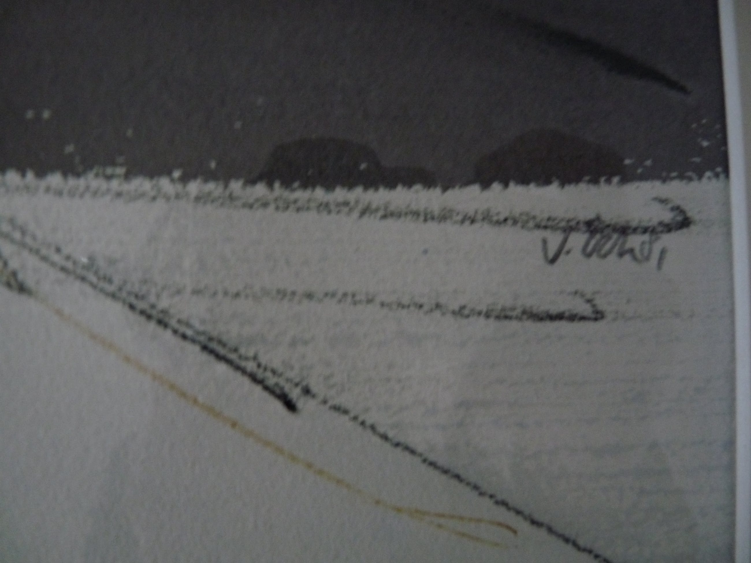 Tekening lijkt in goede staat, lijst vertoont wat gebruikssporen.