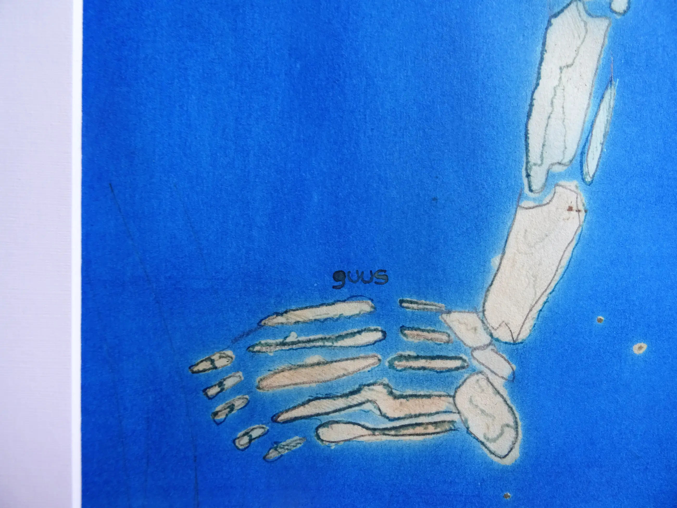 Een ingekleurde tekening, gesigneerd Guus, Guus van Eck. Verzending in overleg.