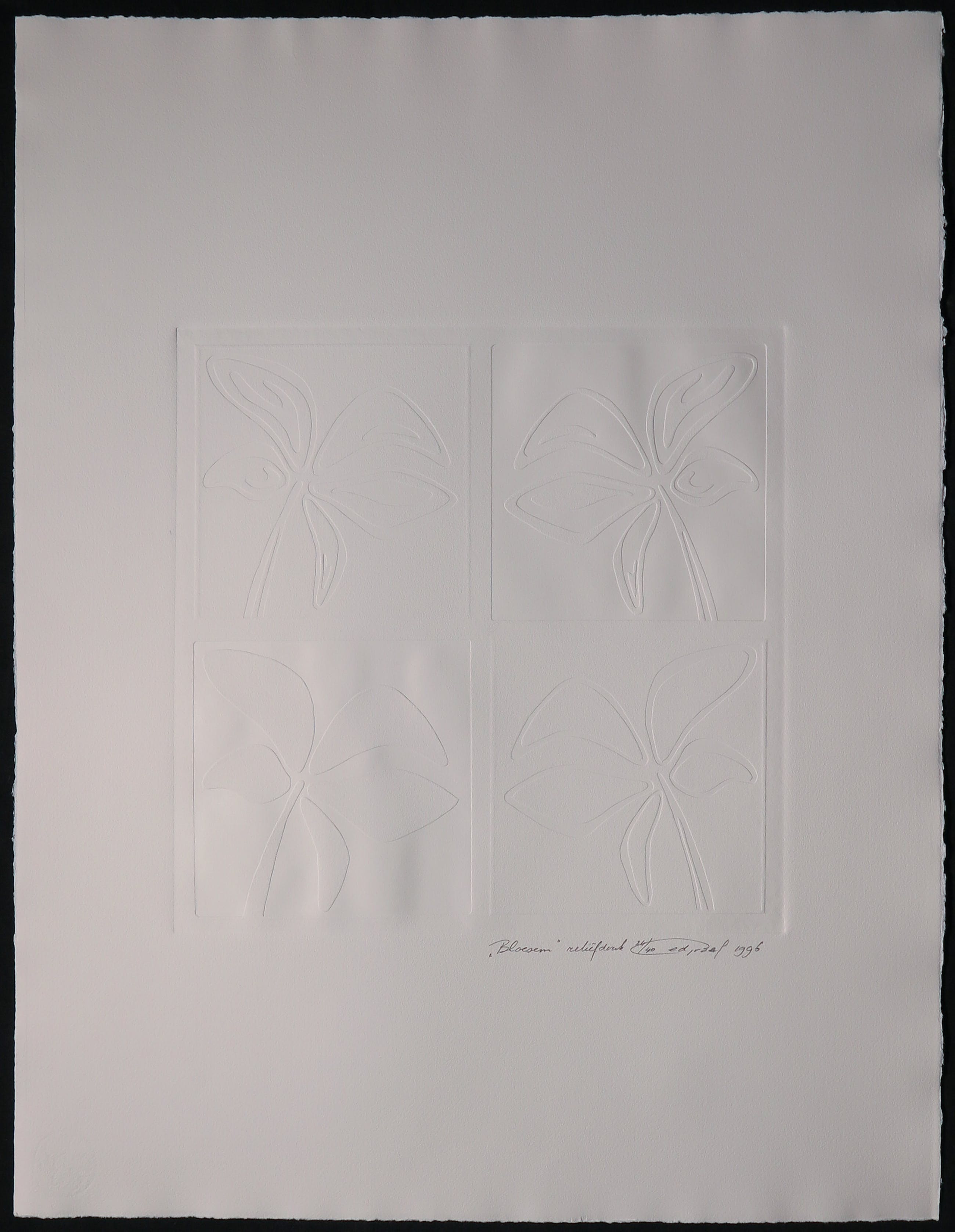 Reliëfdruk van Eef de Graaf, 1996 getiteld Bloesem