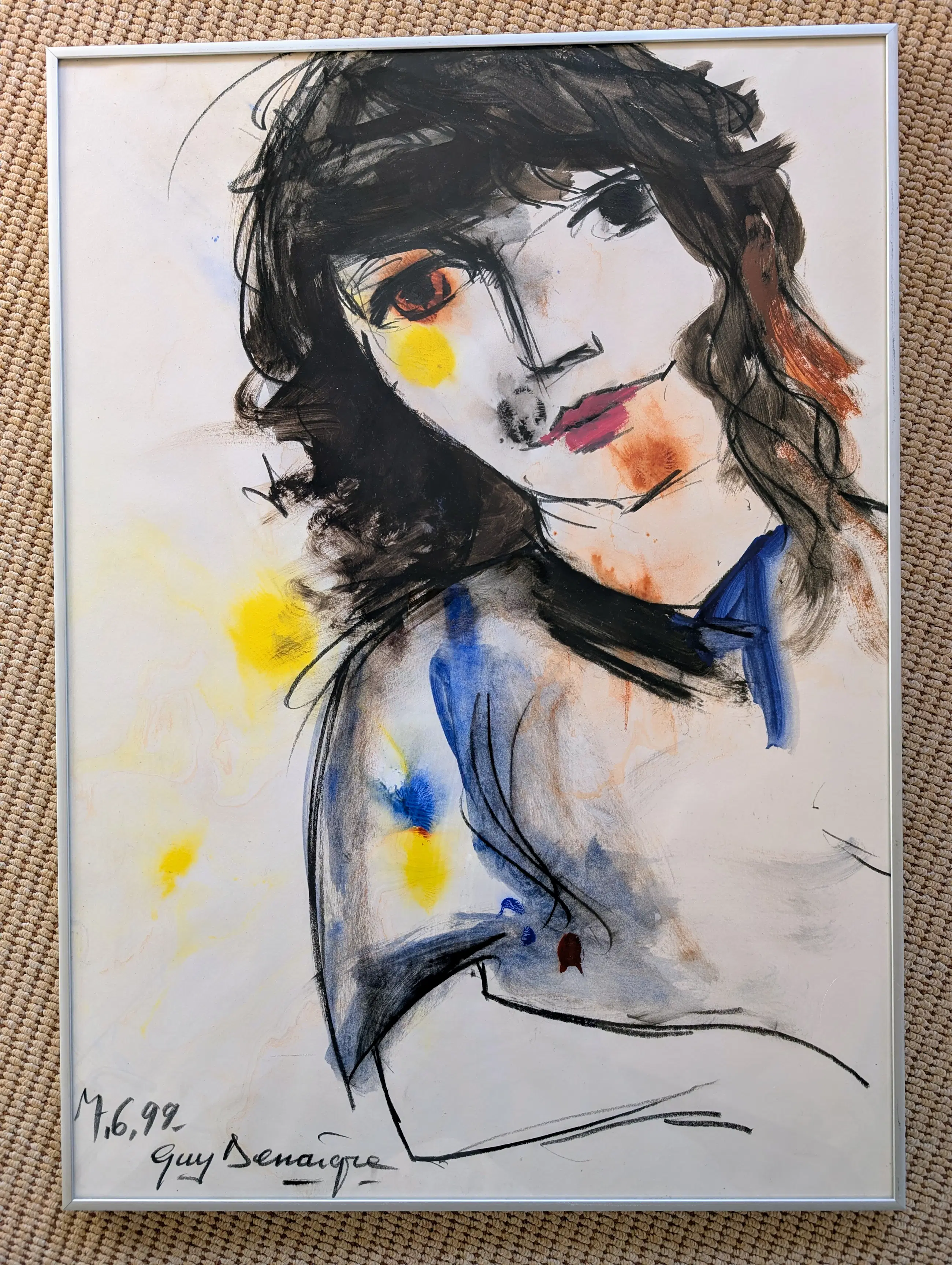 Kleurrijk en levendig is dit meisjesportret in gemengde techniek (gouache en krijt).