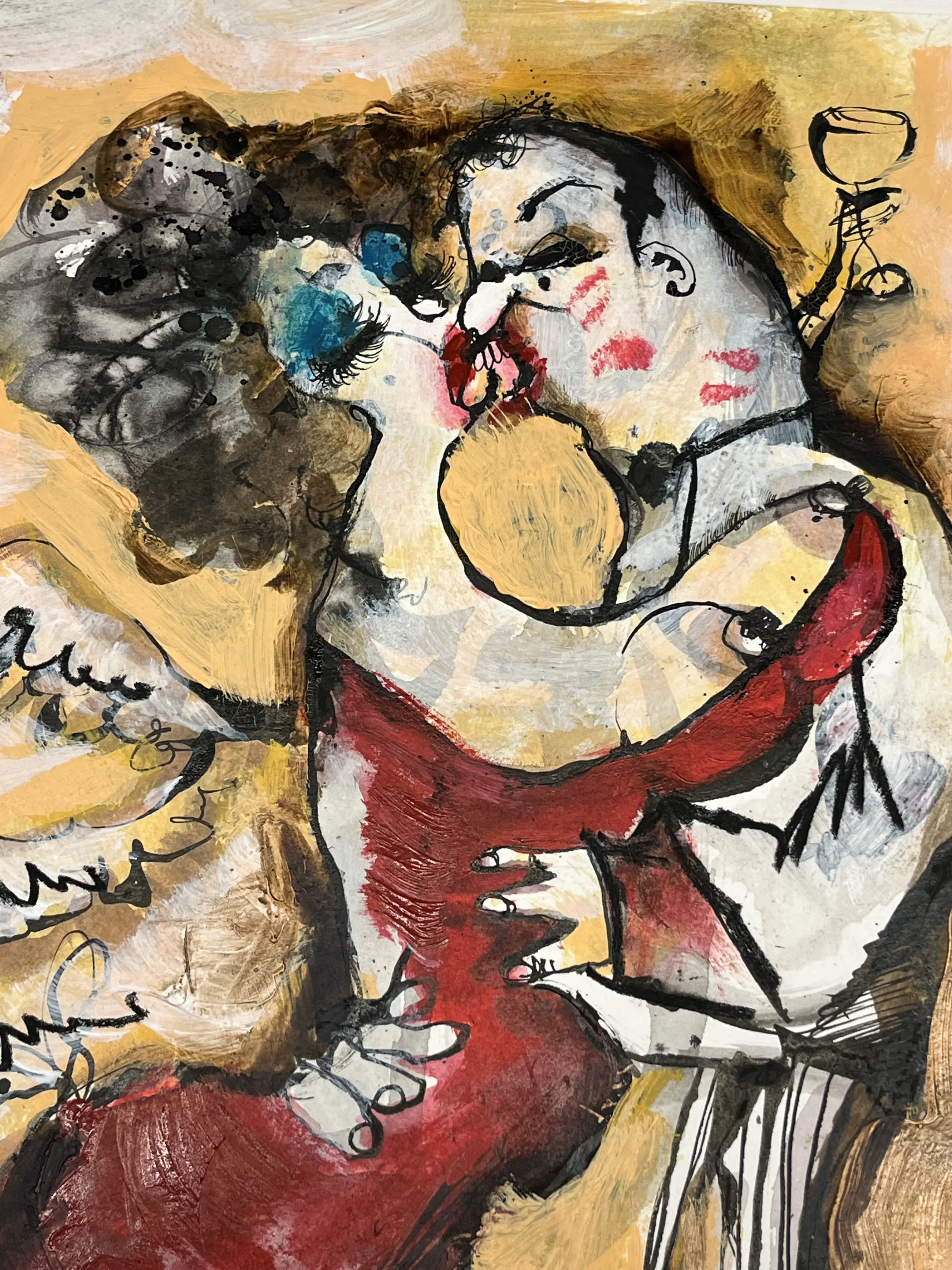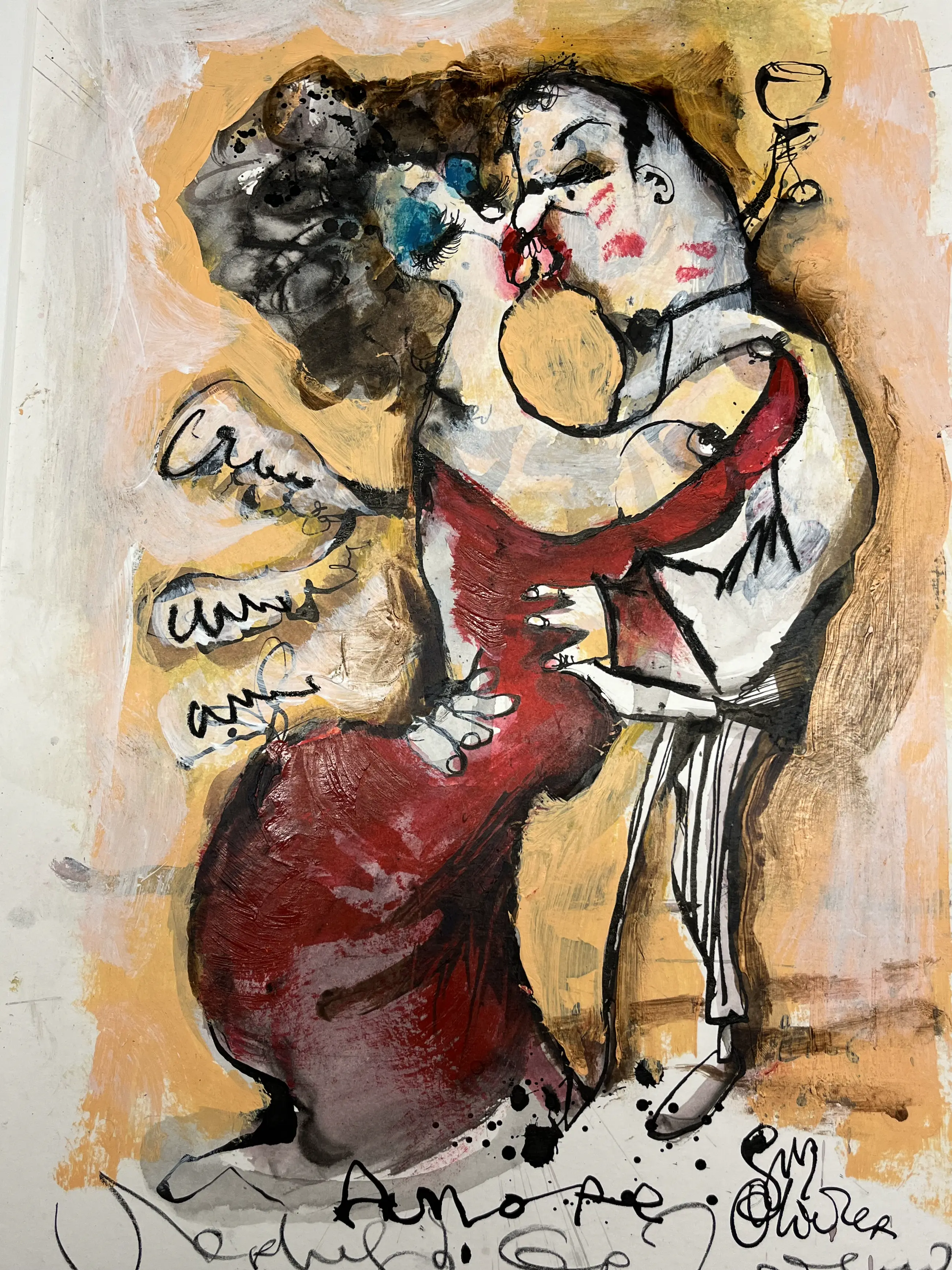 Karakteristiek tafereel in gemengde techniek op karton.. Afmeting afbeelding 40,5 x 29 cm. Inclusief passe partout 57,5 x 45 cm. Werk is gelijst geweest. Passepartout is wat smoezelig en op een hoek wat opgefrommeld.(zie detailfoto’s)