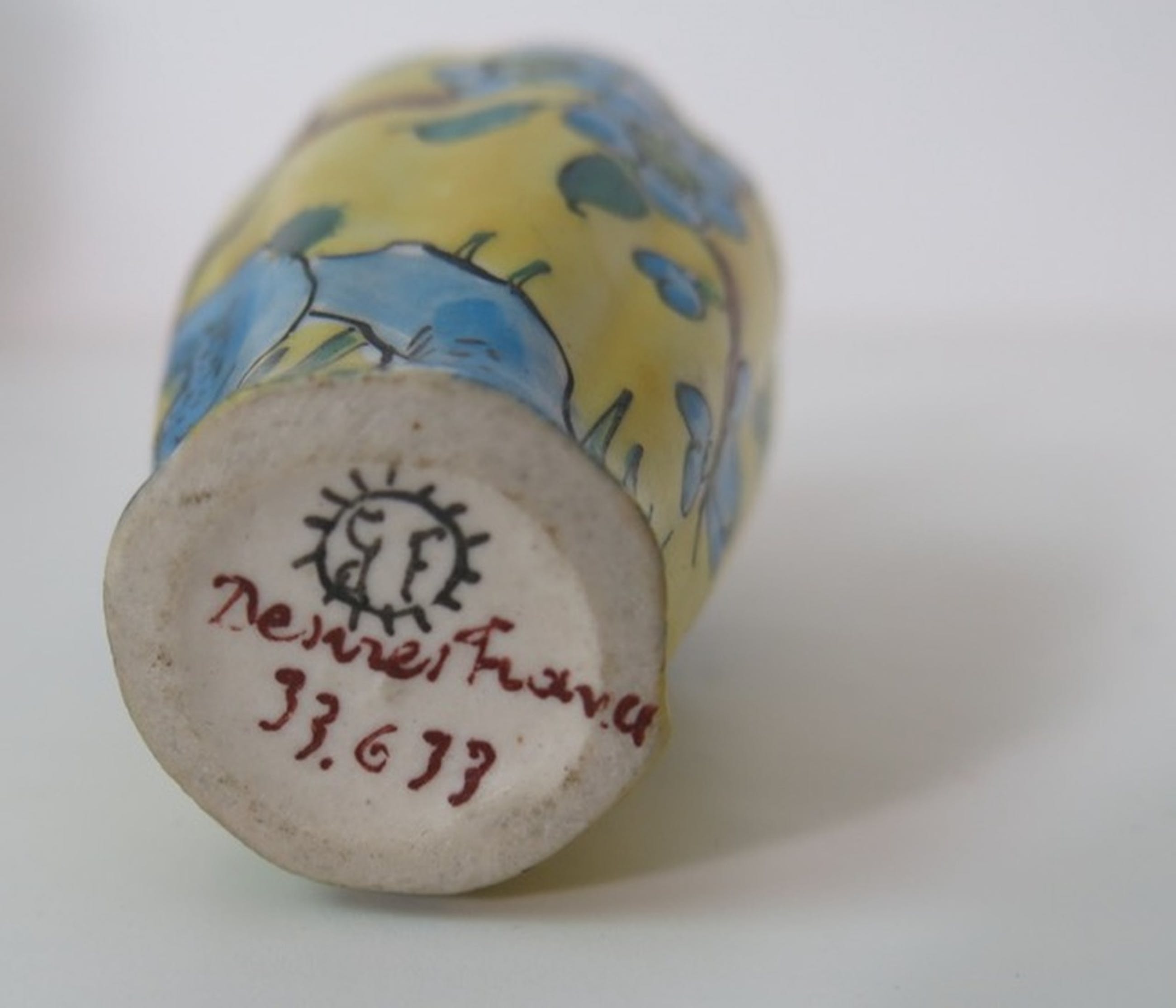 Lot met een siercoupe uit de Haagse plateelfabriek Nieuw Rozenburg, en een mini vaasje handbeschilderd met Japans kersenbloesem.