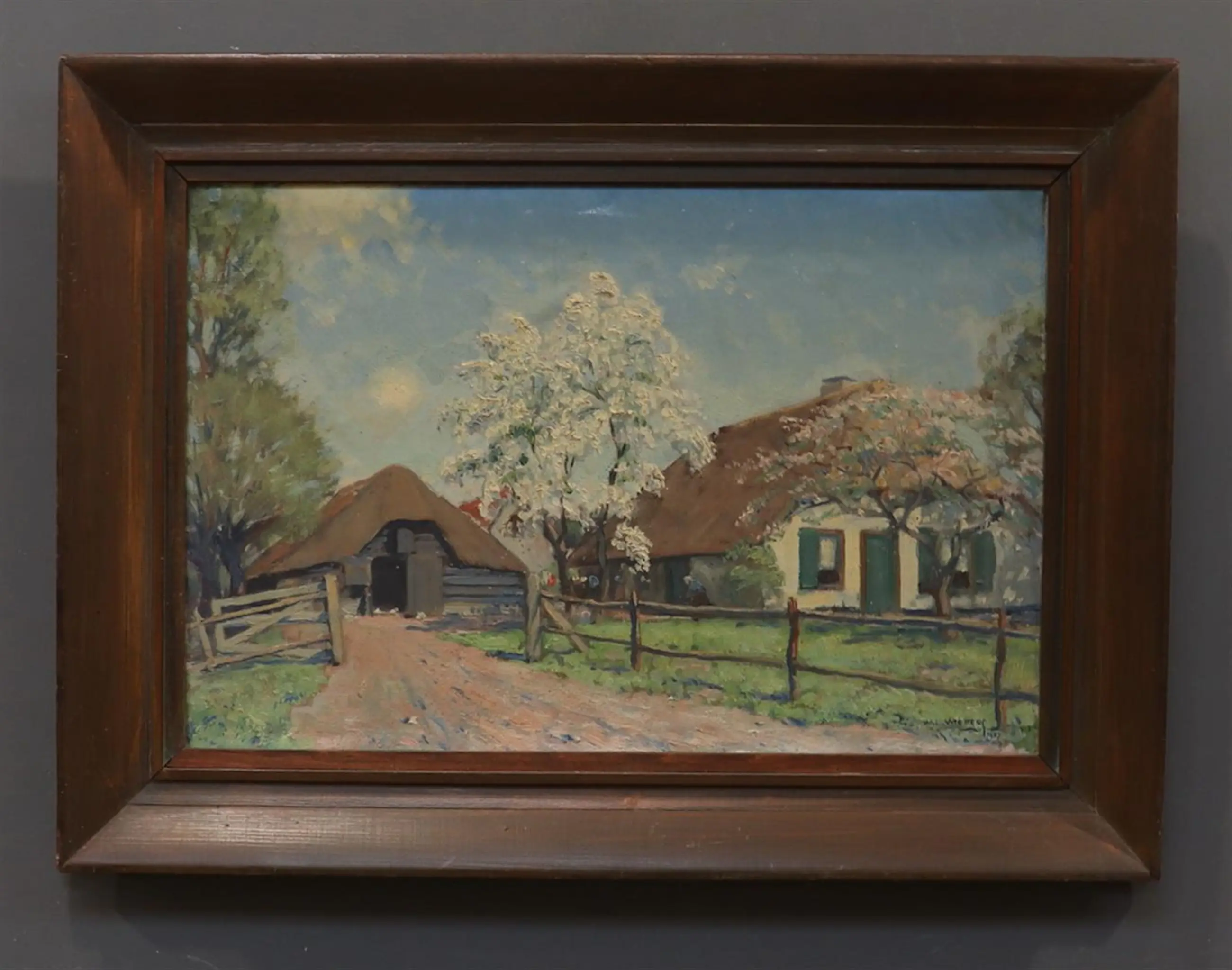Een typisch Hal Wichers schilderij met bloesem. Dit is voor zover ik weet het enige schilderij van zijn hand waar hij bloesem heeft geschilderd in Nederland. Karakteristiek voor Wichers zijn de werken die hij maakte in Indonesië met de bloeiende Flamboyant bomen.