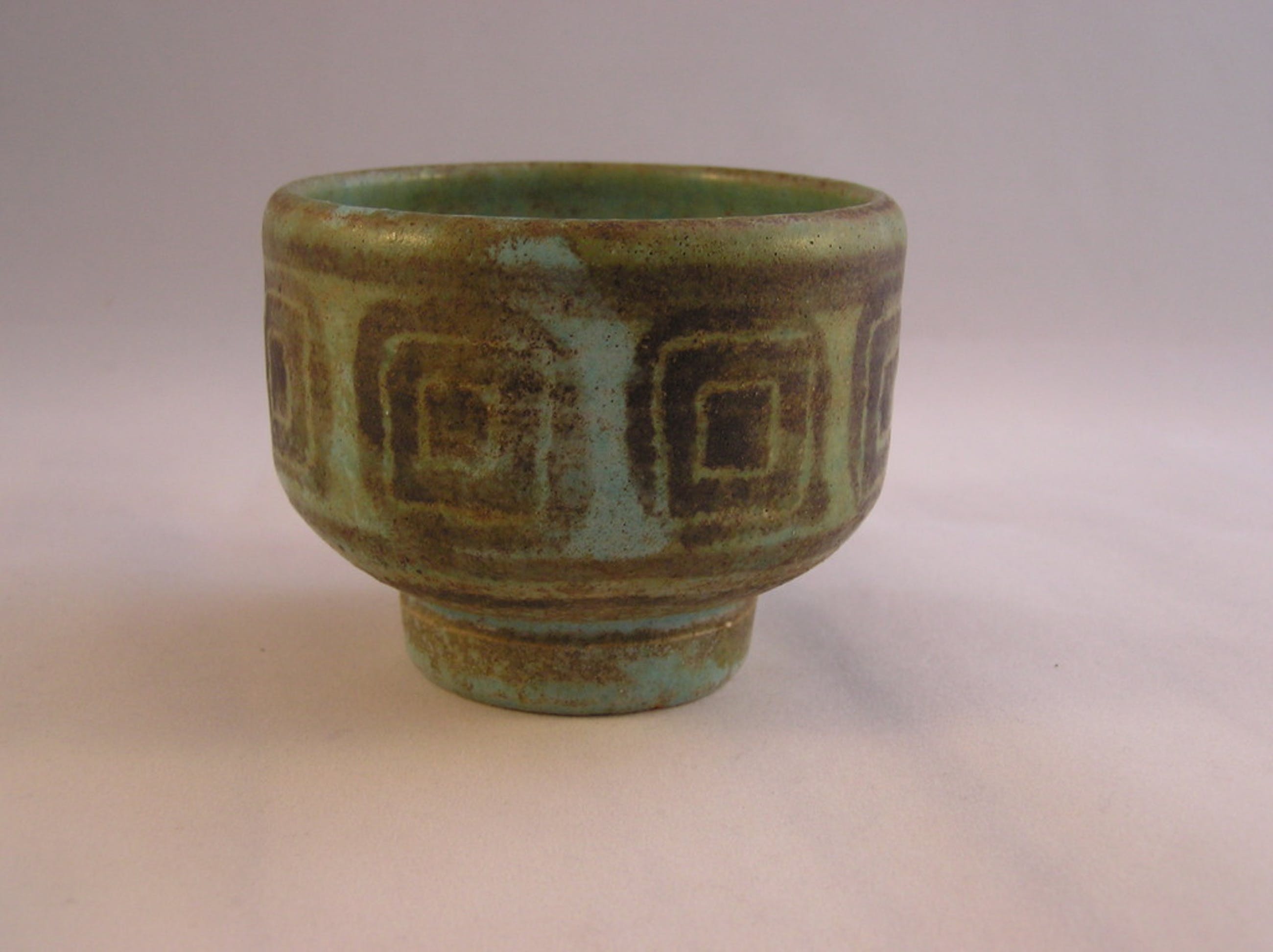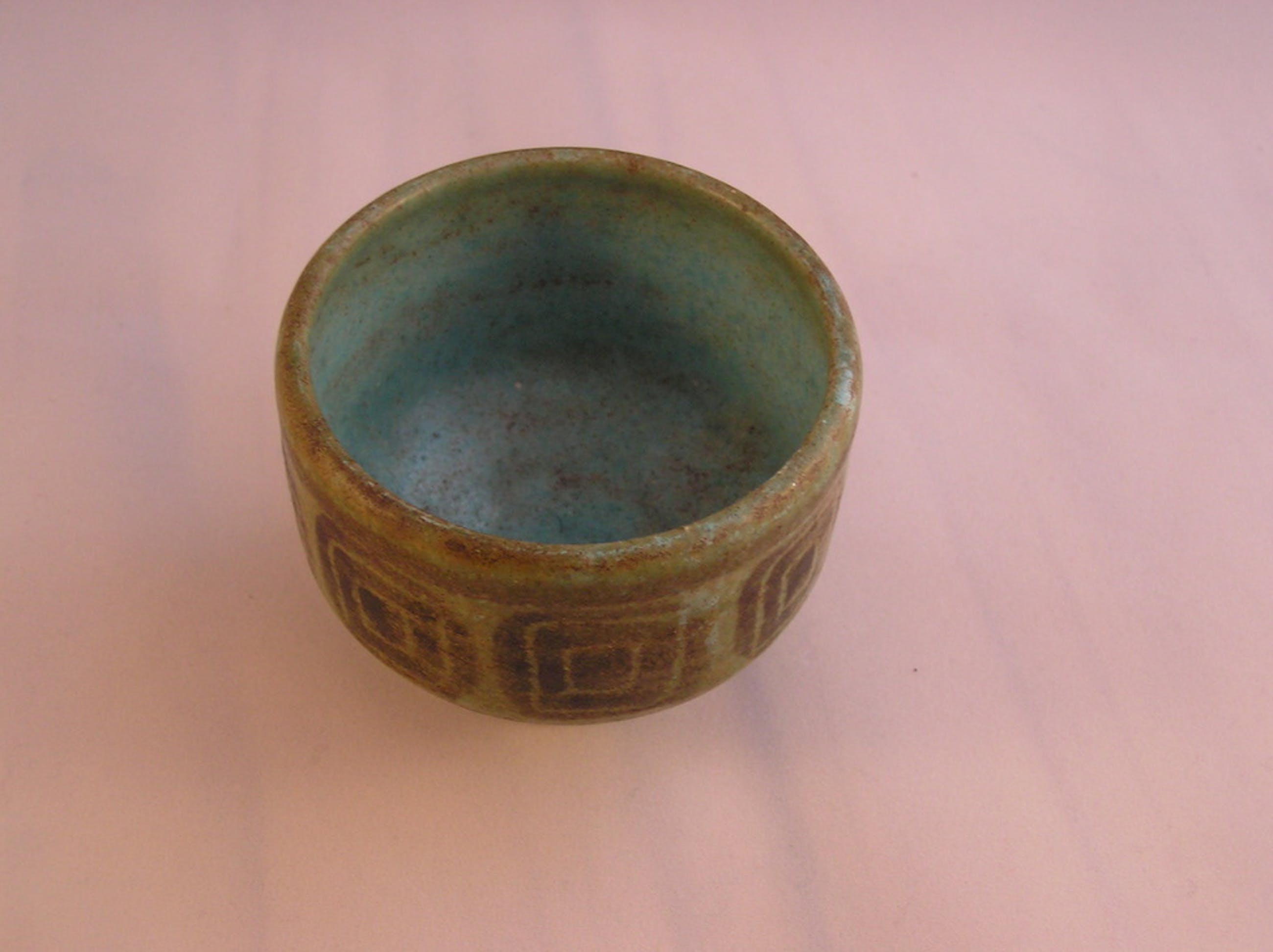 Afmetingen; 7 cm hoog en 8 cm in diameter.