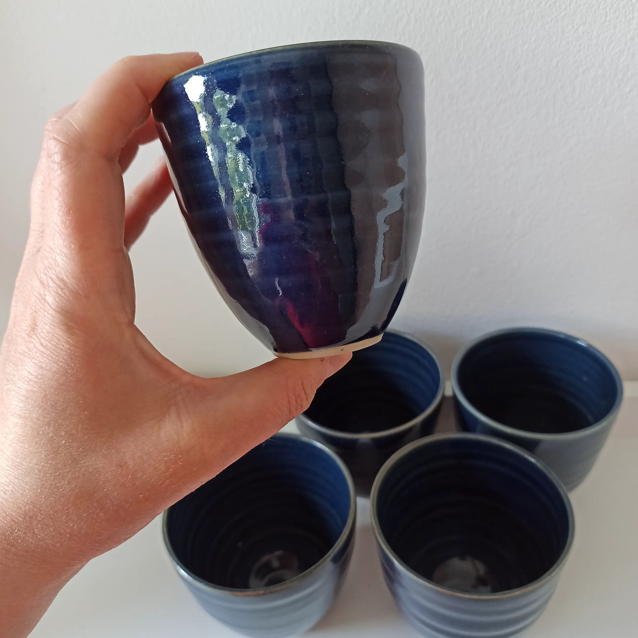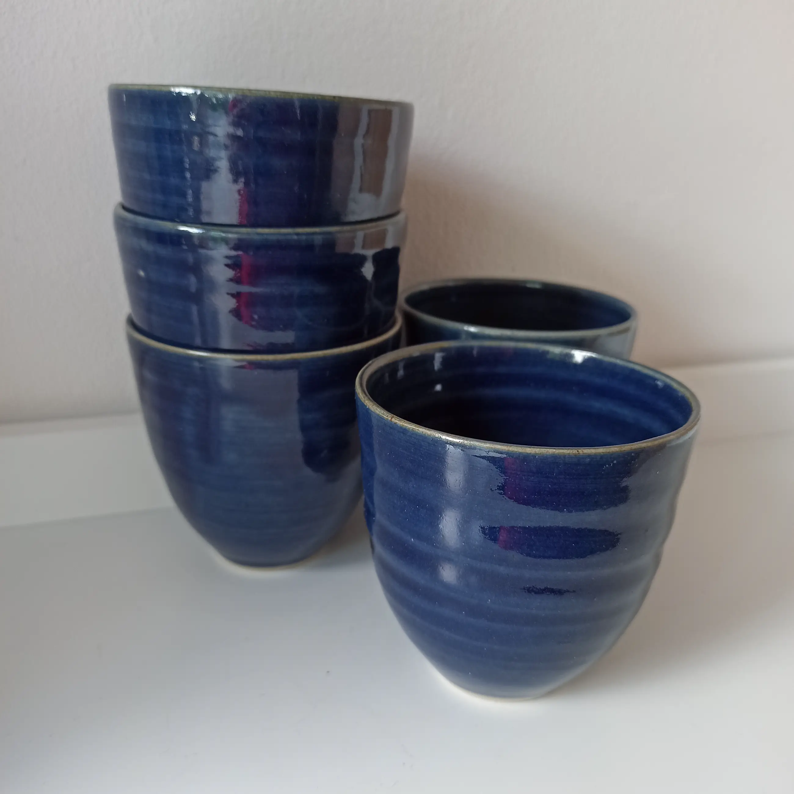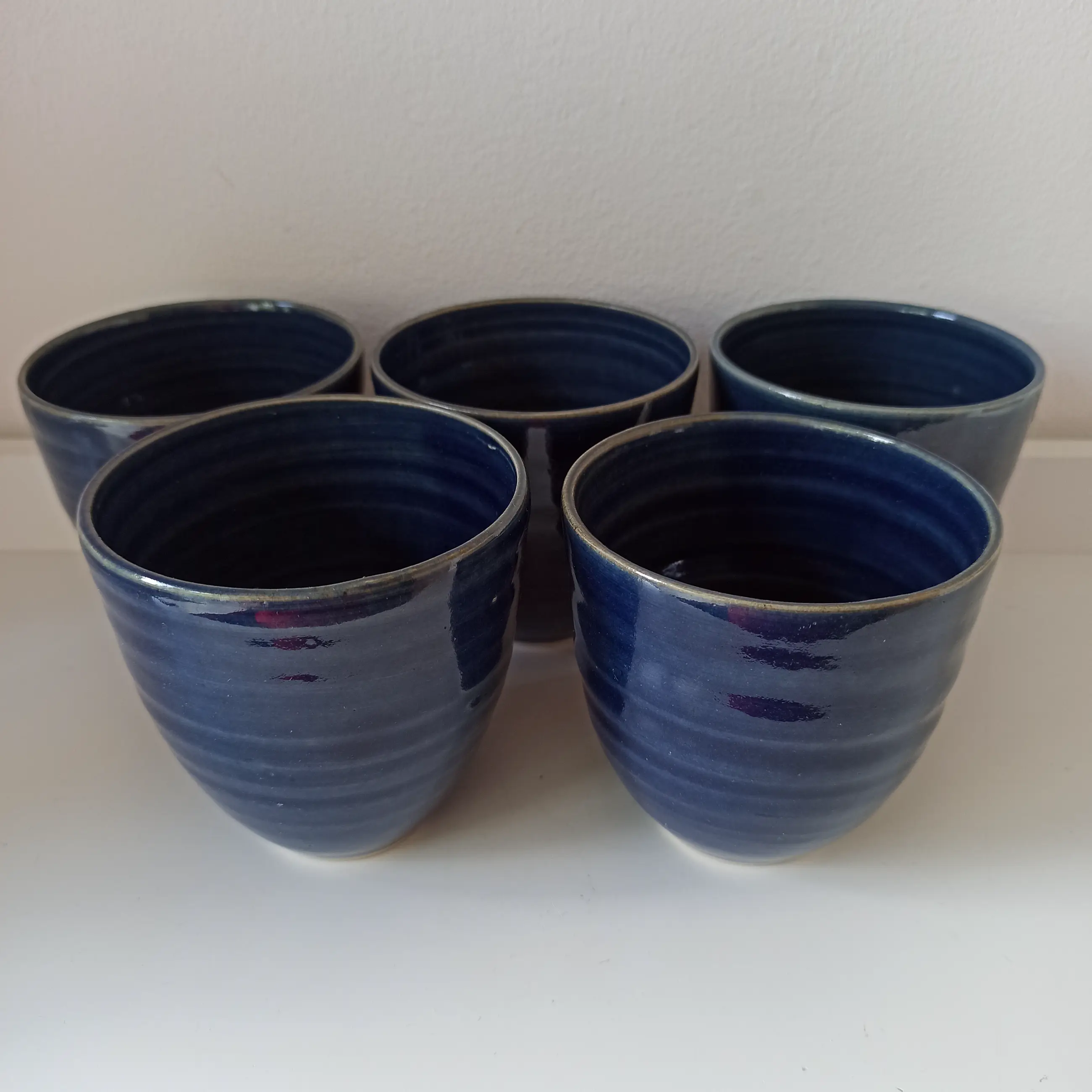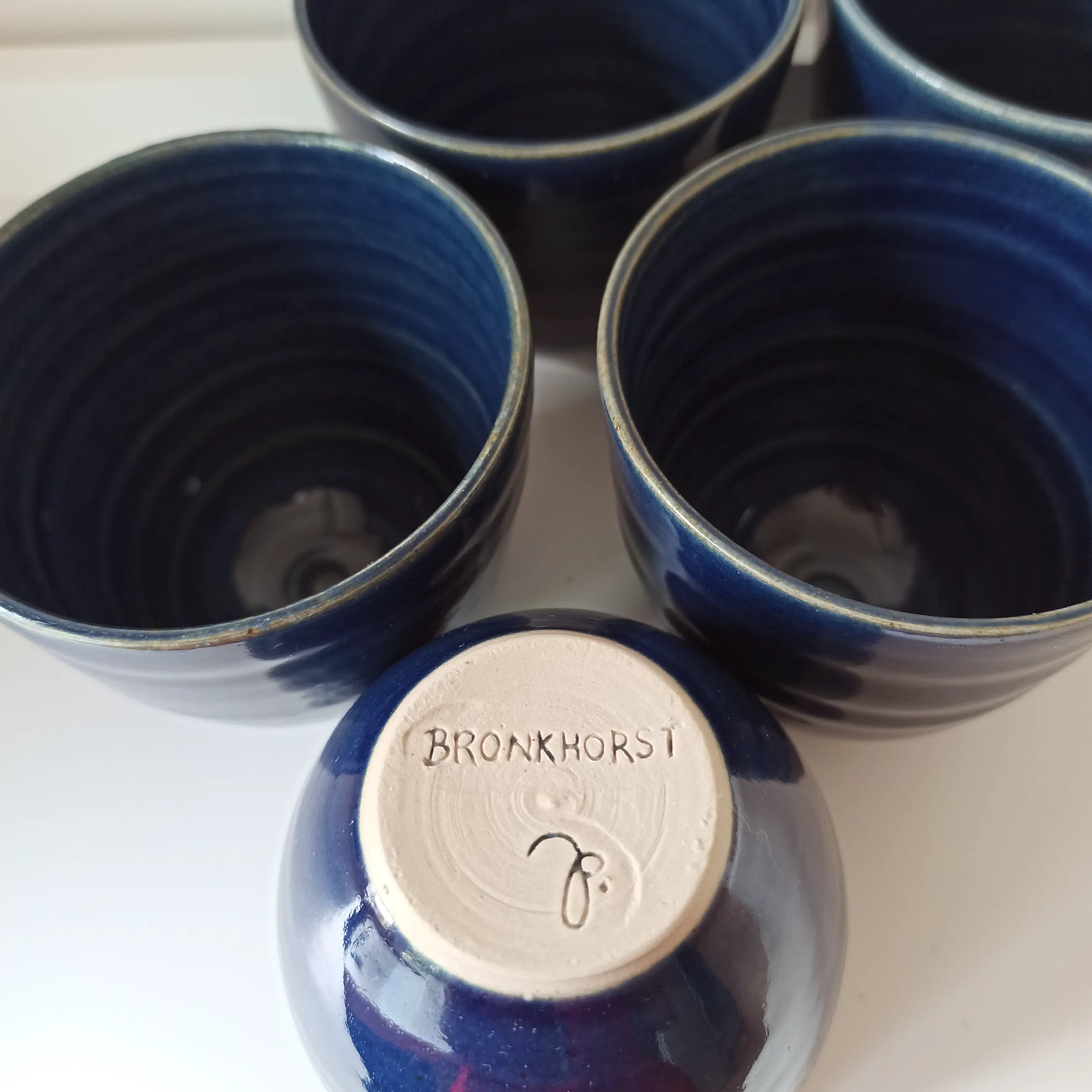 Vijf blauw geglazuurde kopjes/bloempotjes van Cornelissens voor Bronkhorst keramiek. Zijn nog in goede staat, geen chipjes, niet gebroken. Bekijk ook alle fotos voor u eigen indruk.