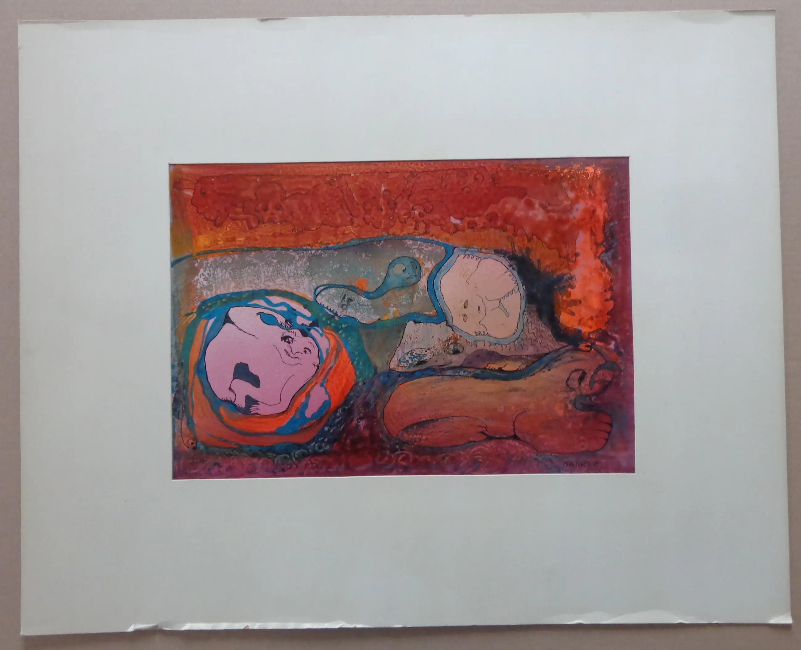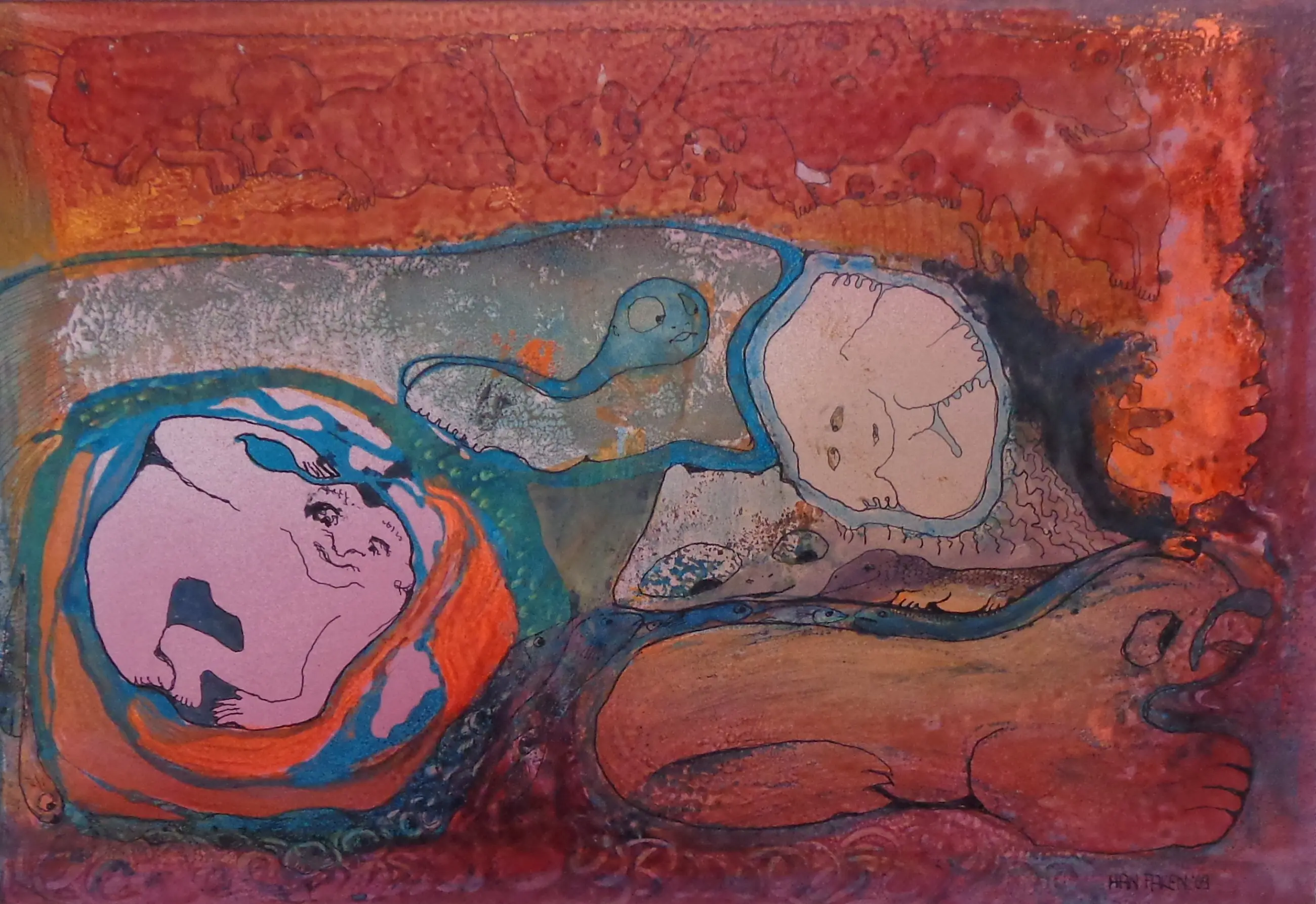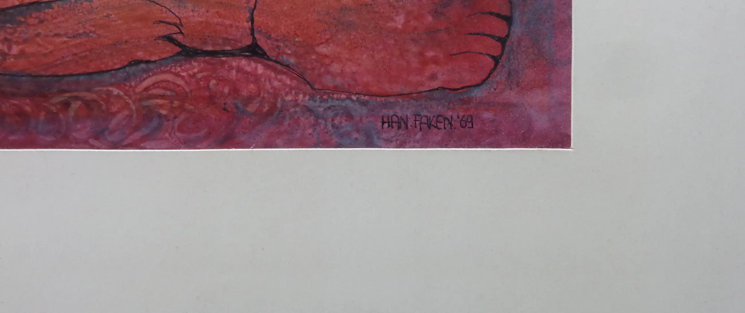 Han Faken - VREEMDE WEZENS / ORIGINEEL WERK / 50x62cm / SIG / 1969 / PASSE-PARTOUT