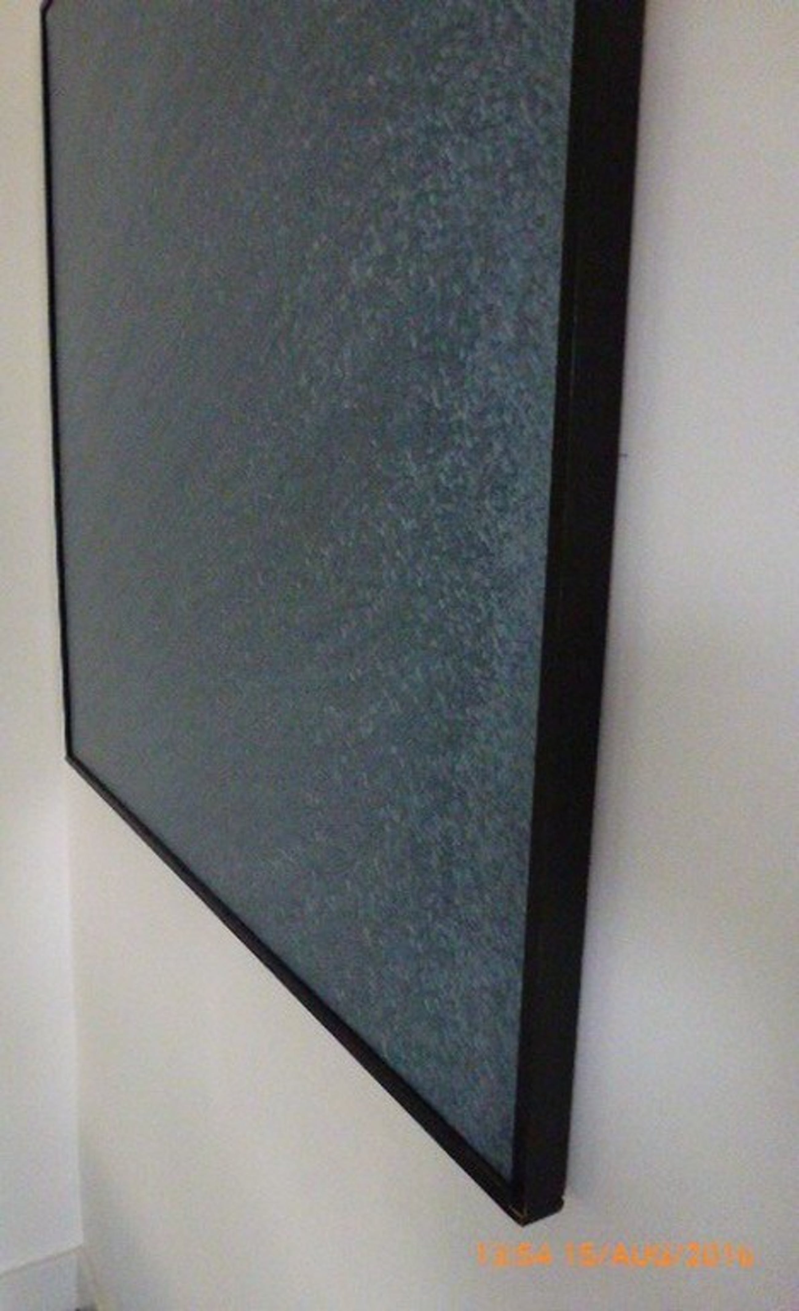 mooi ingelijst werk van Han Jansen, genaamd STROOMBEELD. olieverf op doek. afmeting 100 x 100 cm, inclusief lijst 102 x 102 cm. om geen afbreuk aan het werk te doen werd STROOMBEELD niet gesigneerd. de kleur lijkt meer naar grijs dan op de foto te zien is. zeer goede conditie.