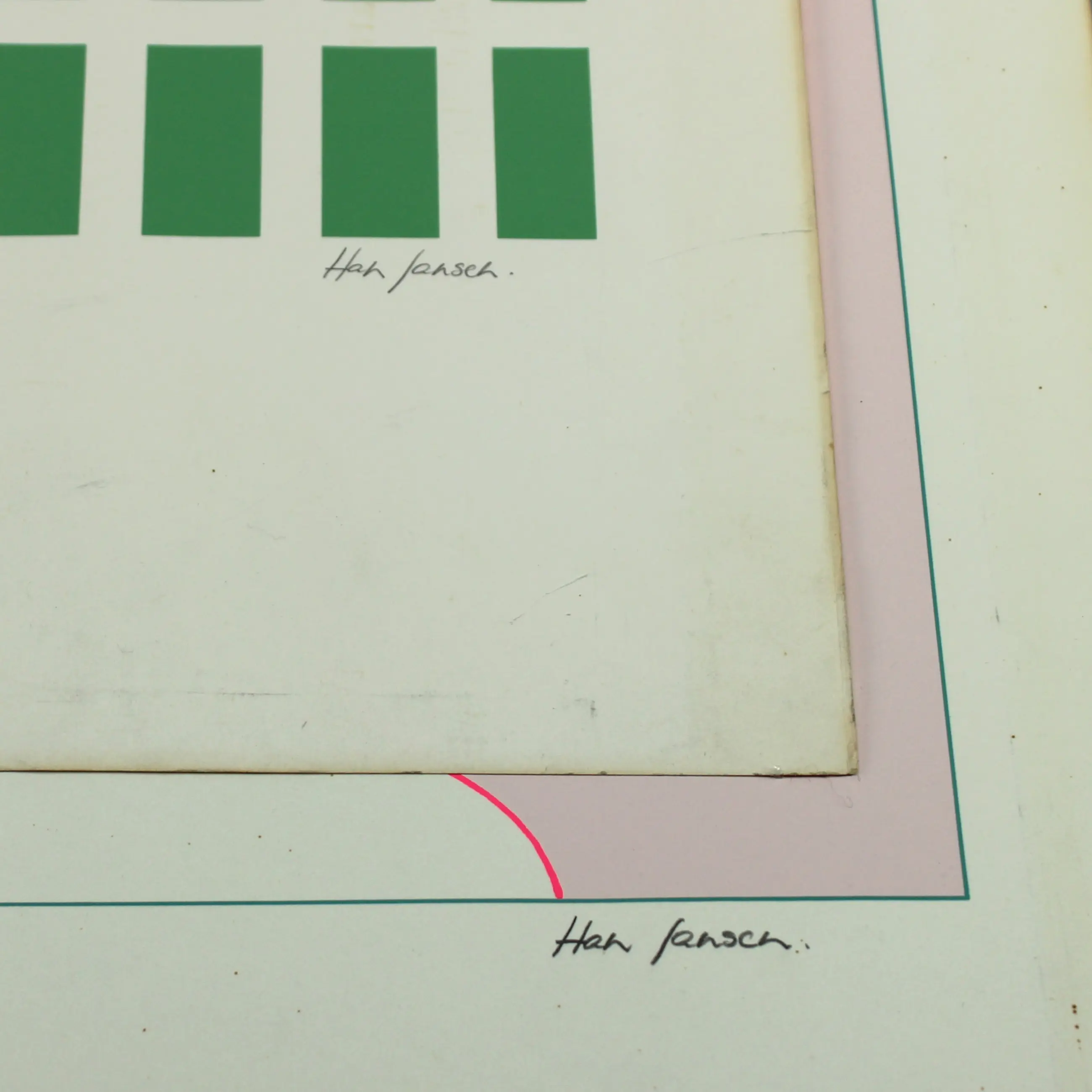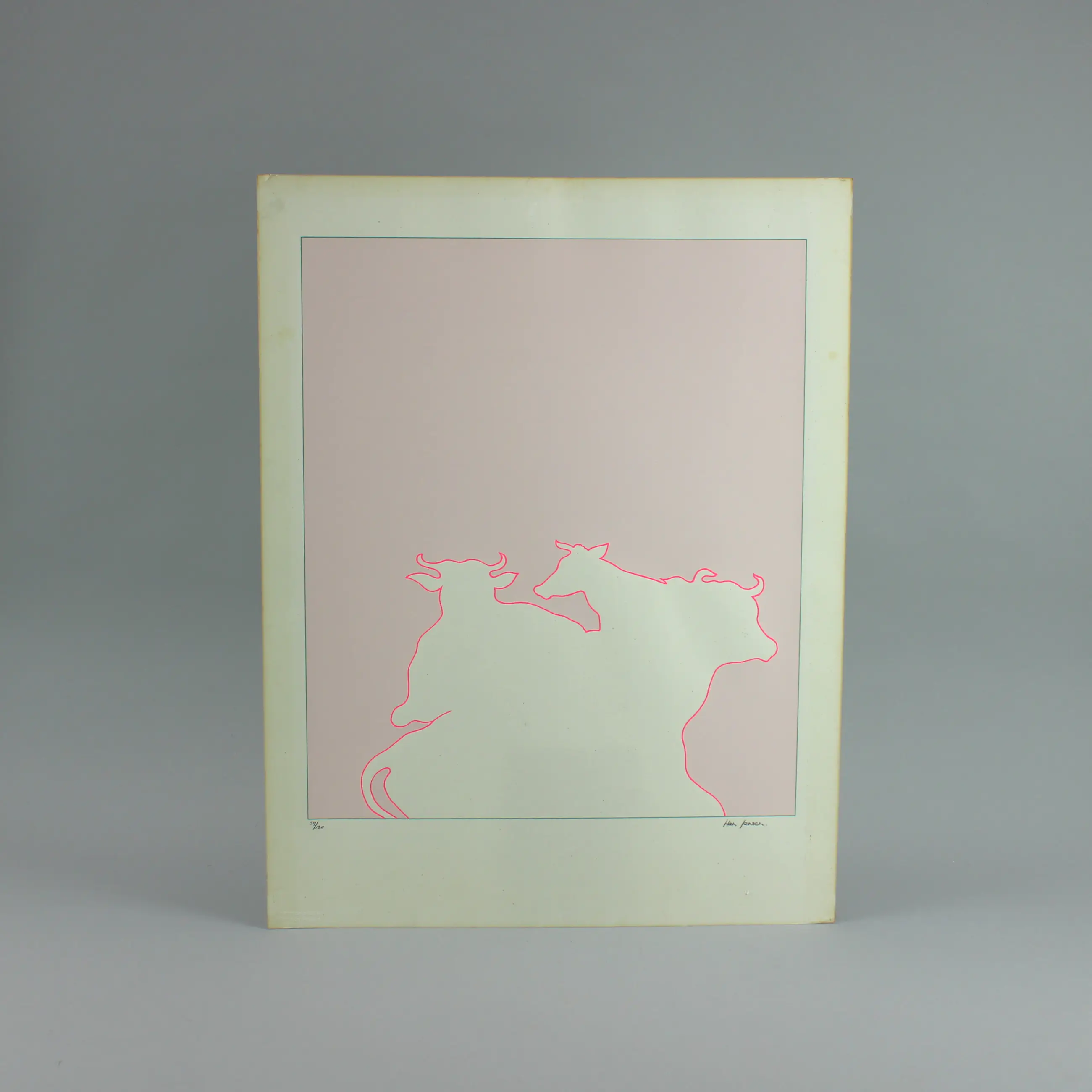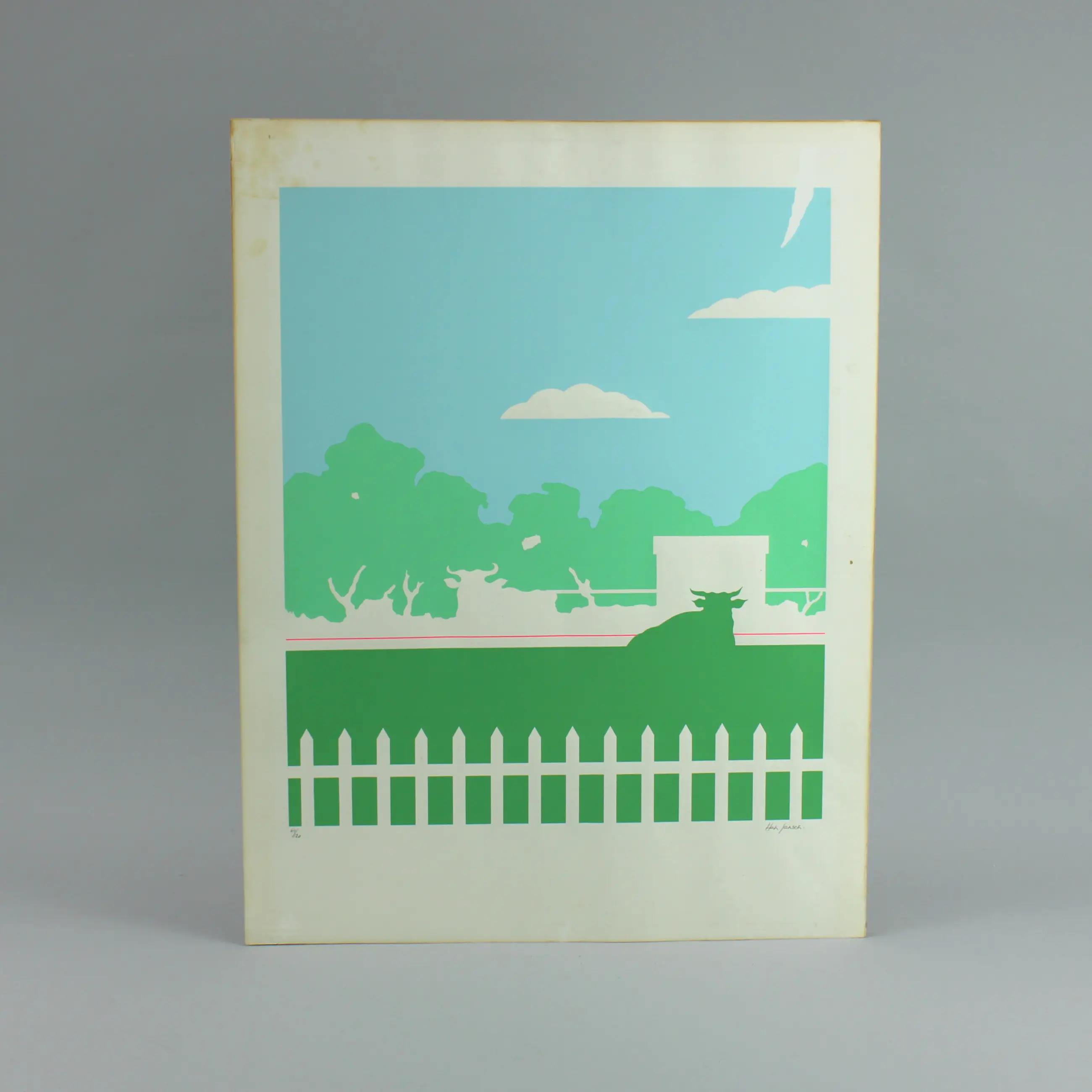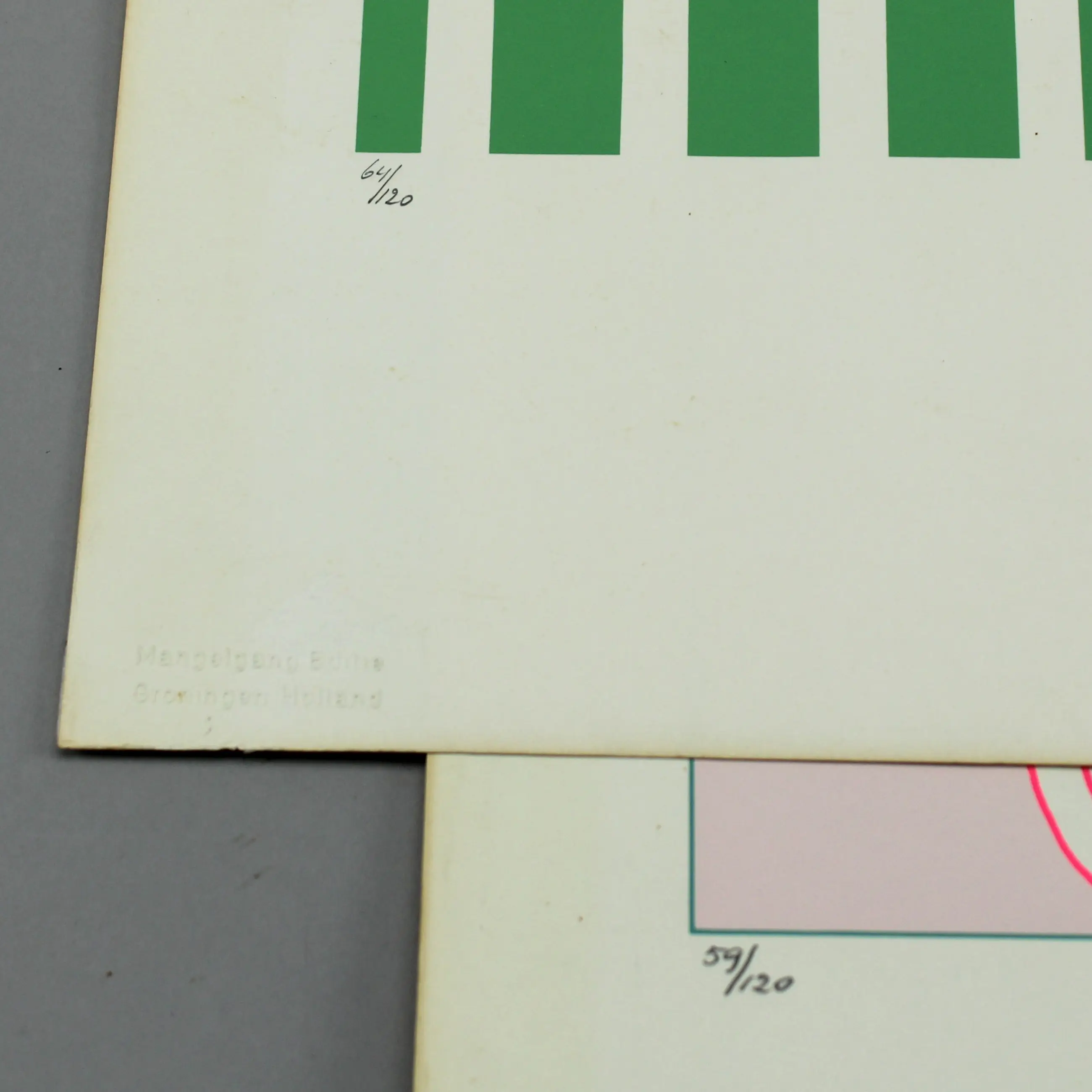 - Zeefdruk gesigneerd met potlood in de rechteronderhoek, oplage 64-120, beschadigd in de rechter bovenhoek
