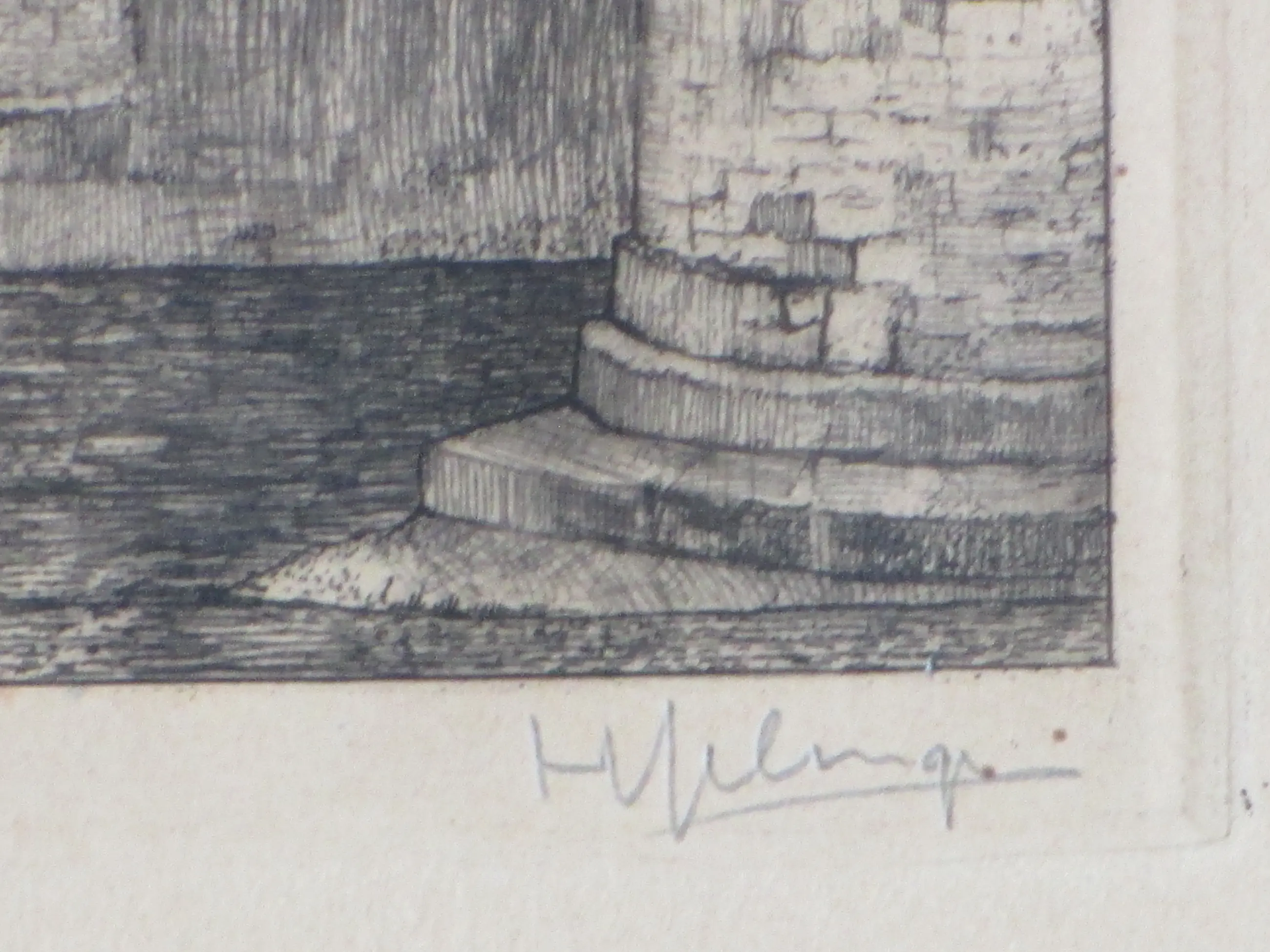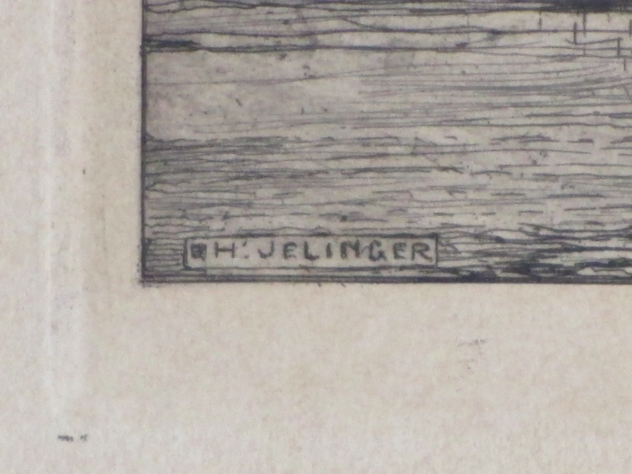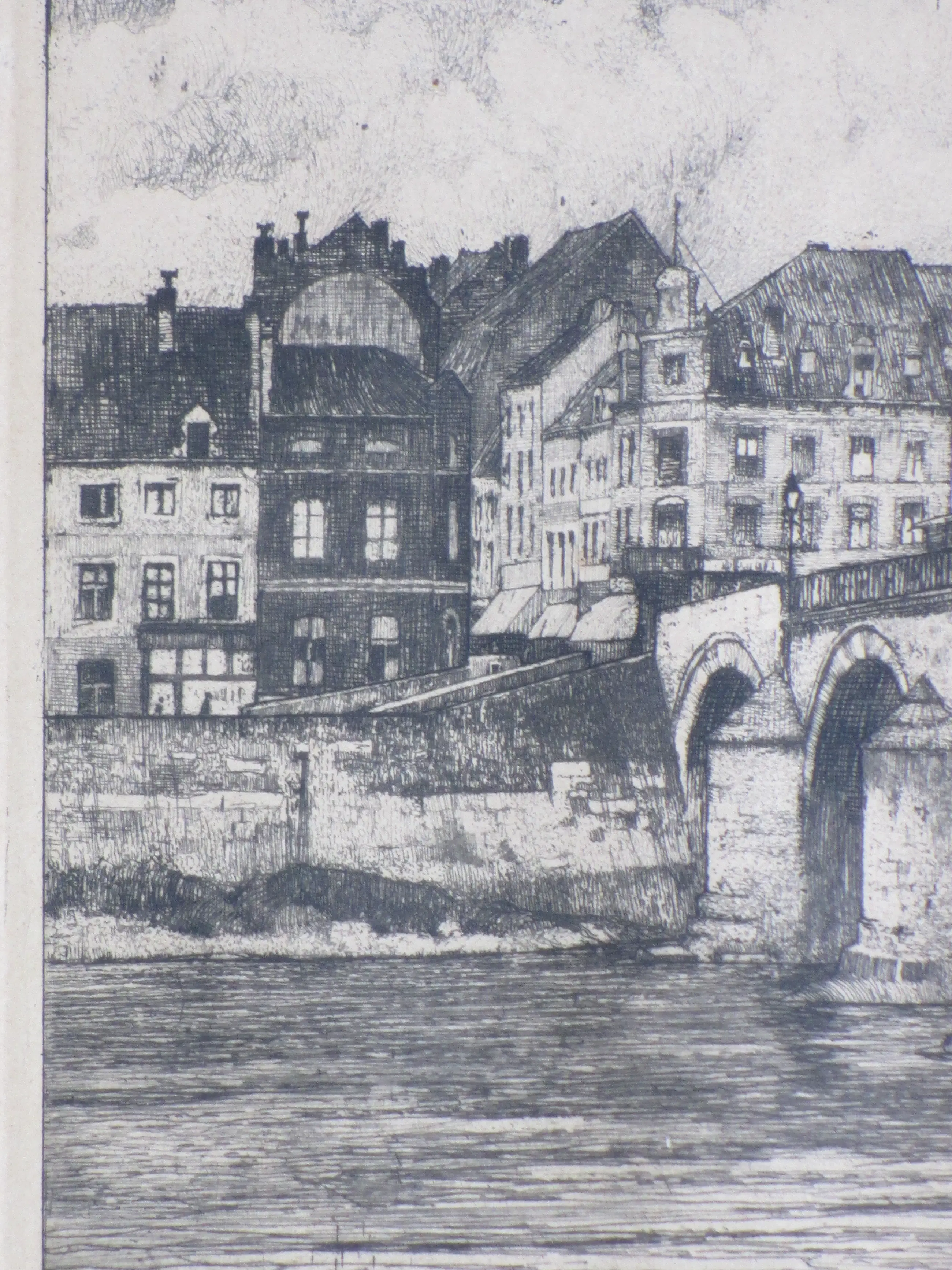 Ets door Han Jelinger Voorstelling van de Sint Servaasbrug in Maastricht Losbladig, beeldmaat 18.5x26, bladmaat 29x38 Gesigneerd in potlood r.o.: 'H Jelinger' Tevens gesigneerd in de druk l.o.: 'H. Jelinger'