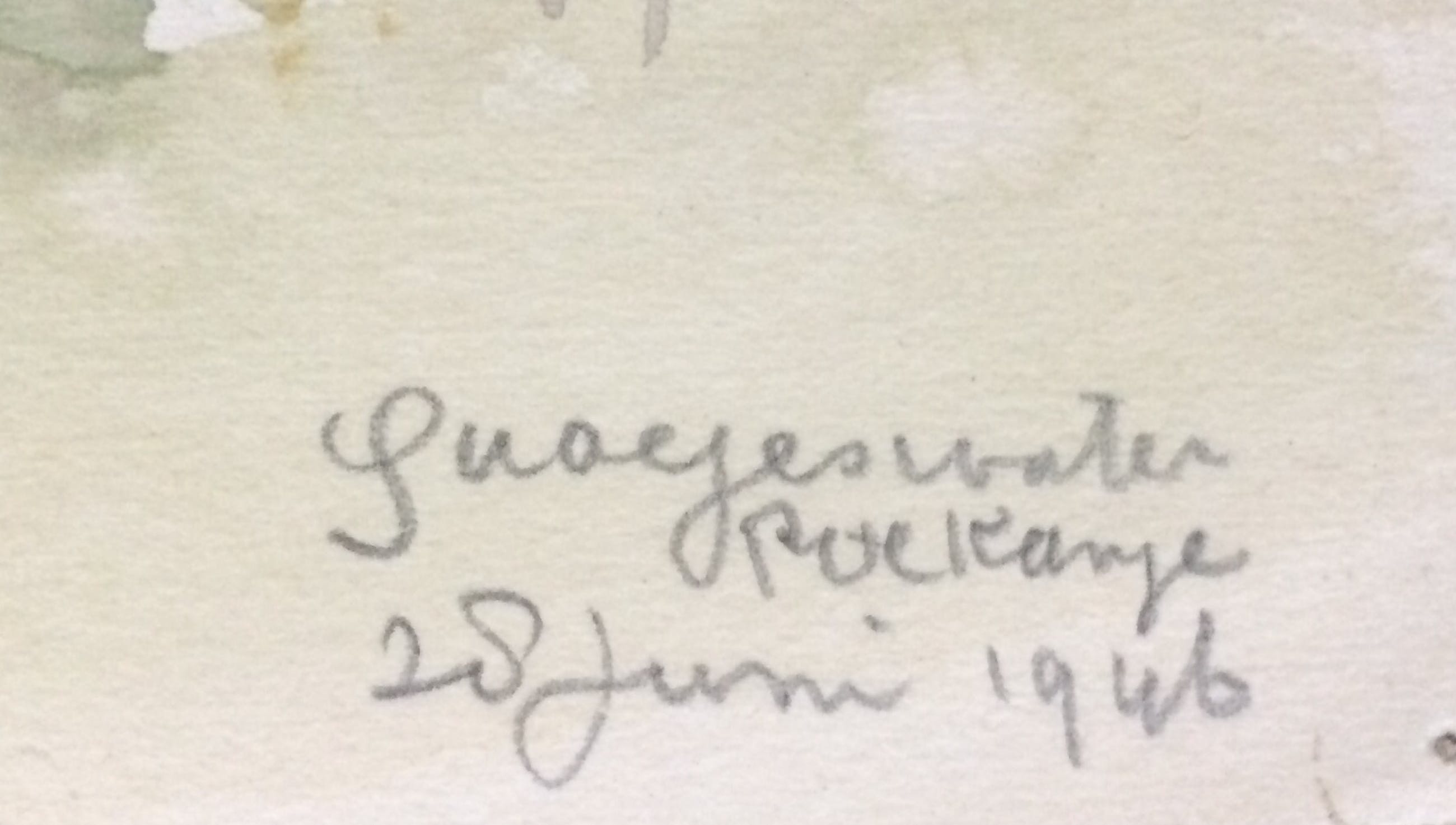 Titel: " ROCKANJE QUACKJESWATER " Jaartal: 28 juni 1946 Gesigneerd: Ja l.o. + titel