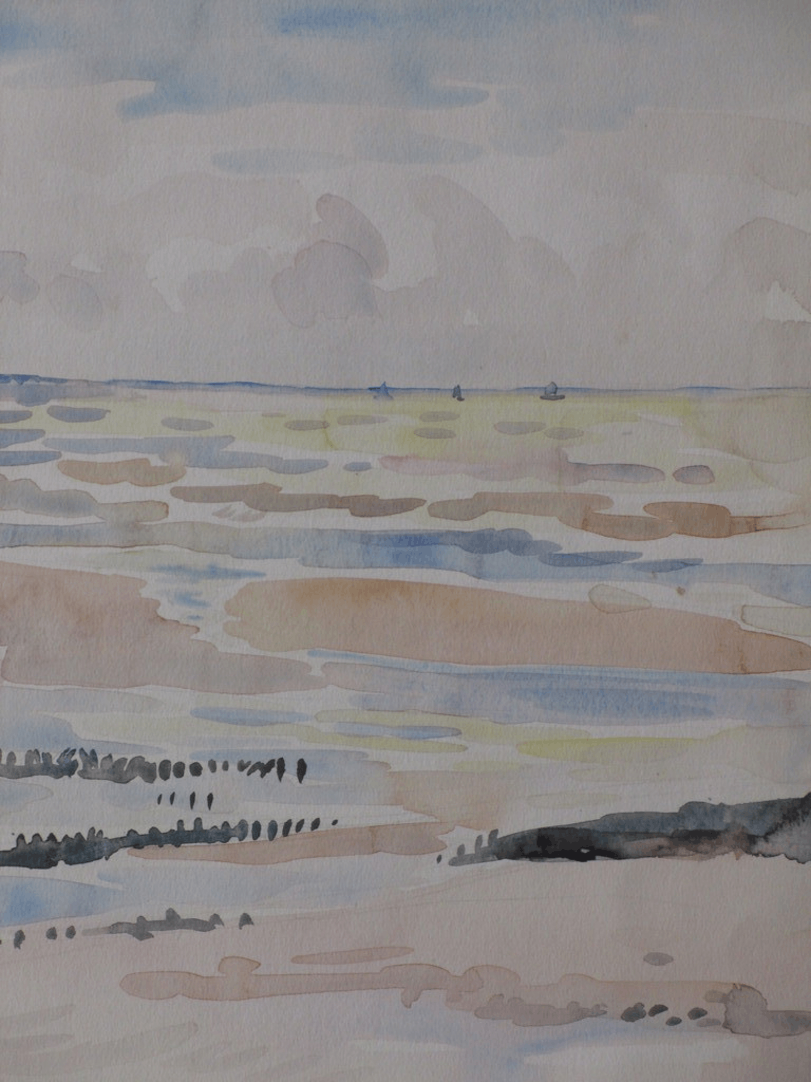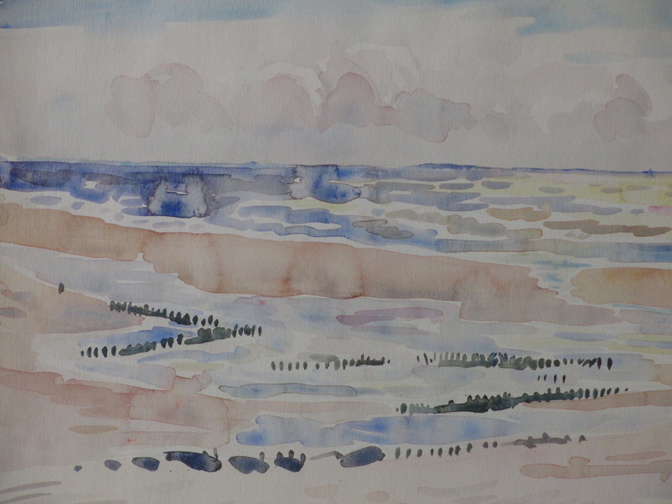 Voorstelling van een gezicht op Walcheren vanaf het strand bij Haamstede
