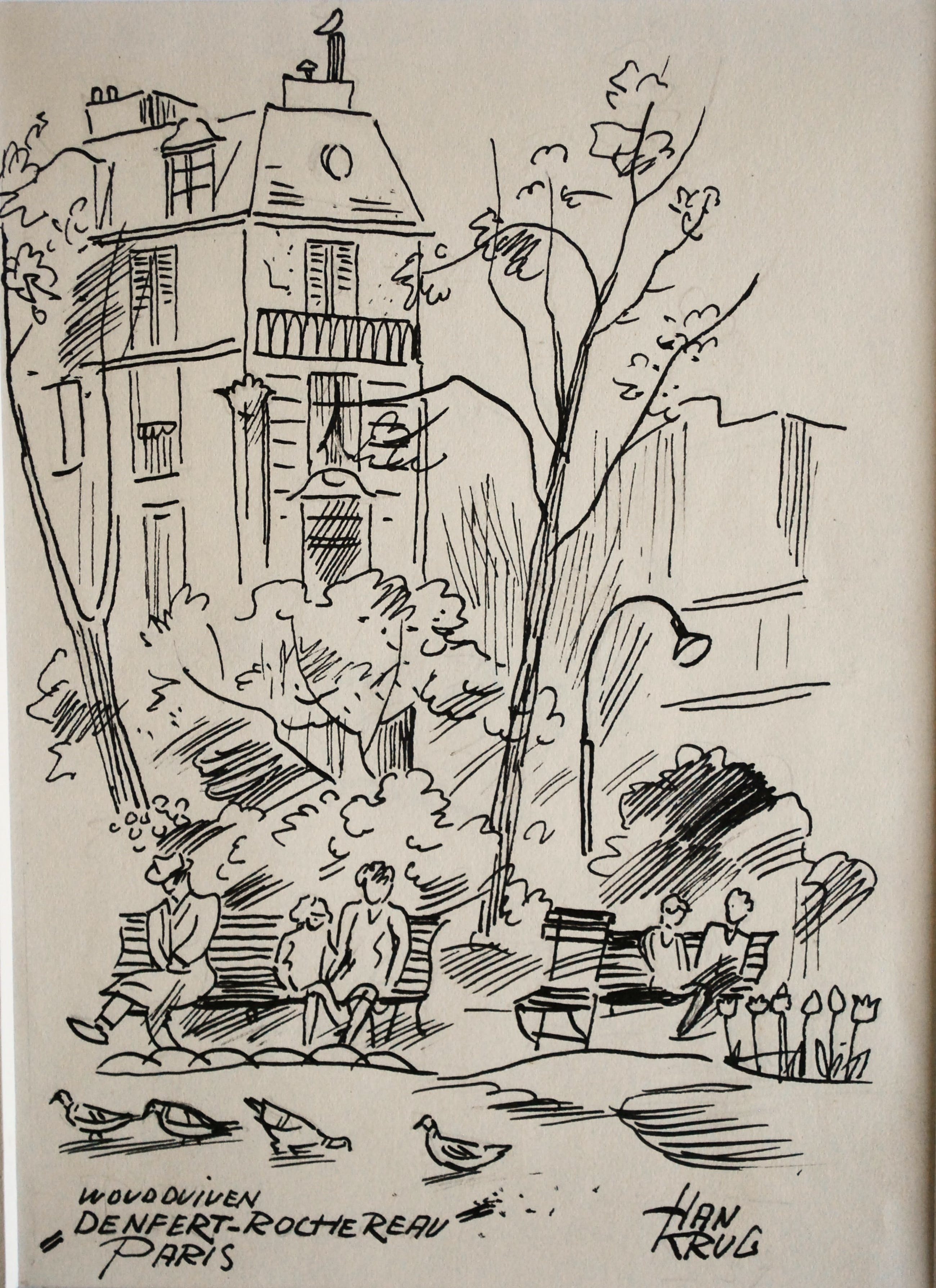 Woudduiven op het Place Denfert-Rochereau in Parijs.