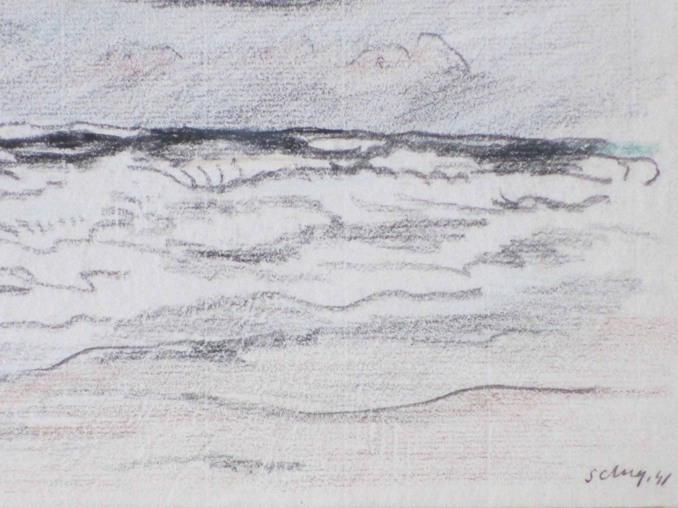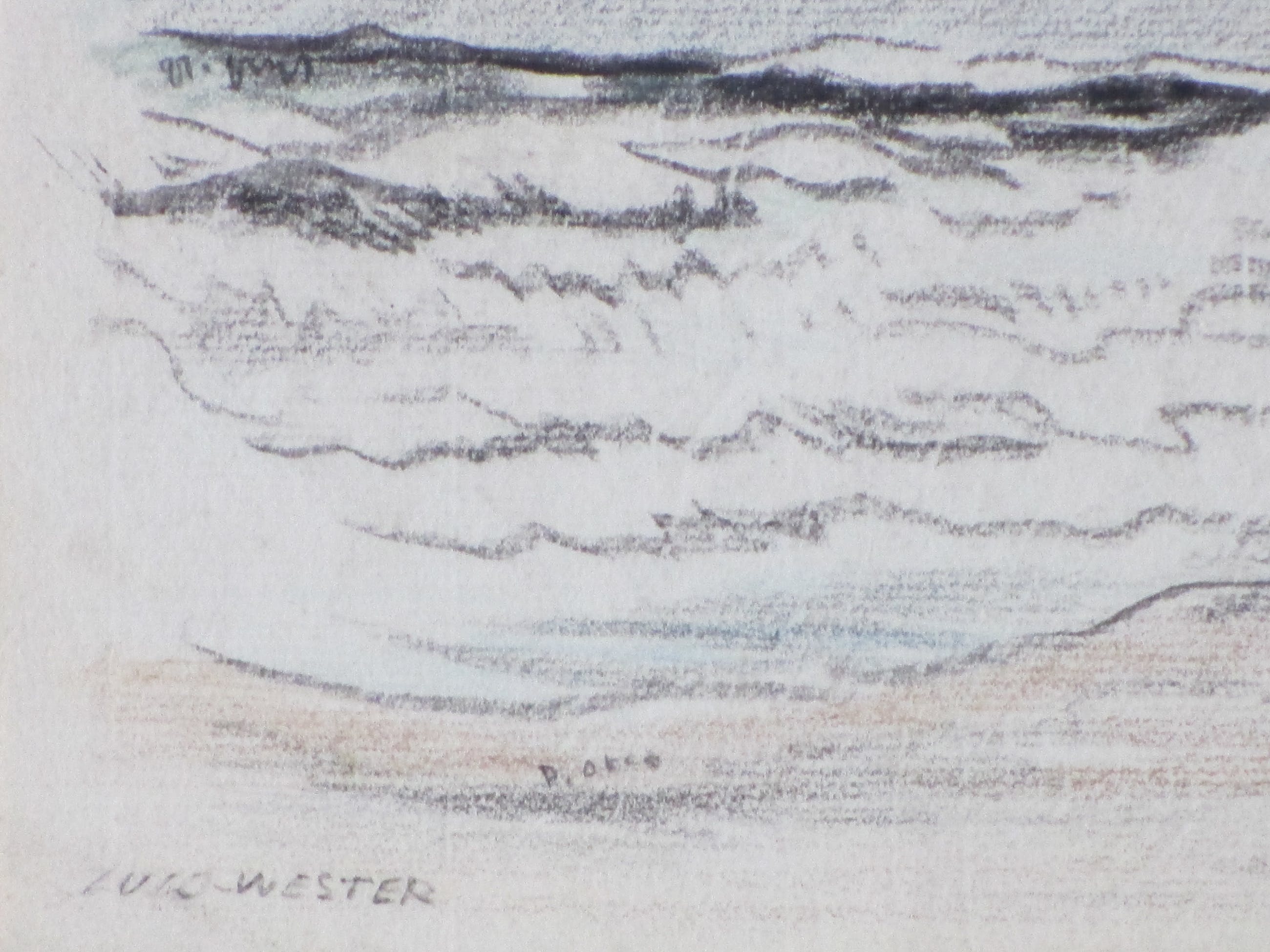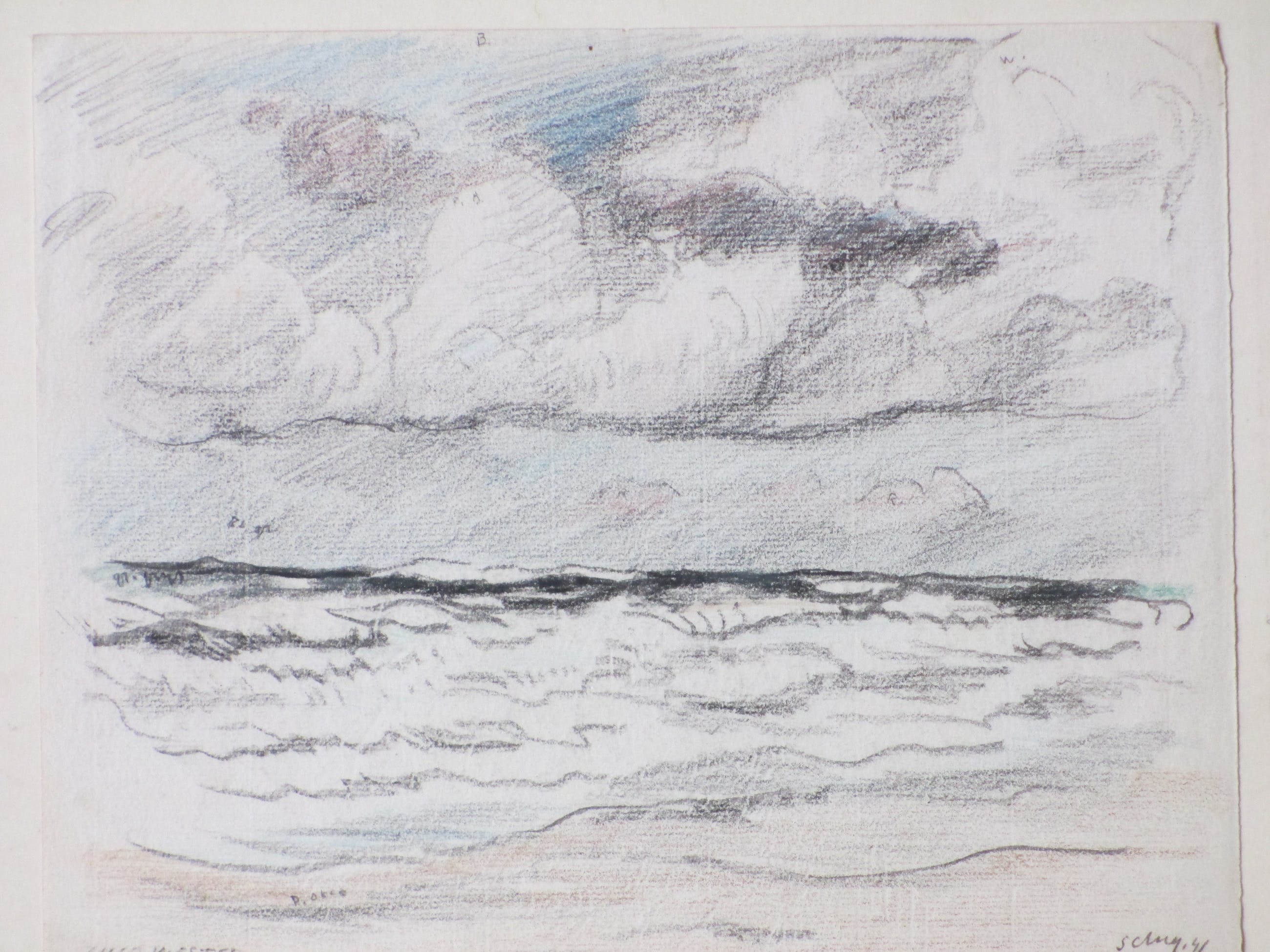 Tekening door Han KrugVoorstelling van een Zuid-Wester StormLosbladig, beeldmaat 16x20Annotatie en datering r.o. ' Schng 41' (Scheveningen)Getiteld l.o. ' Zuid-Wester' Authenticiteit volledig gegarandeerd