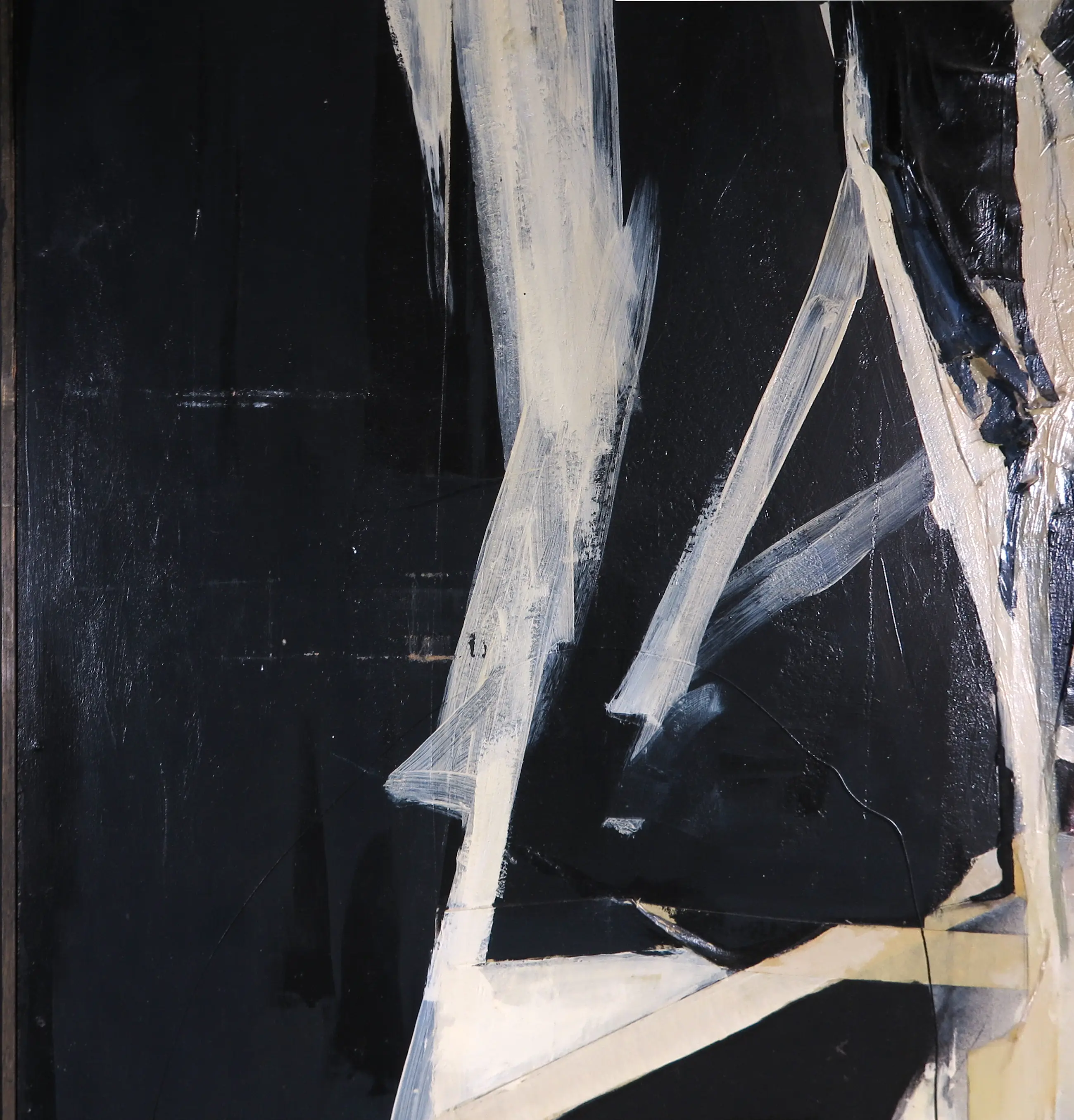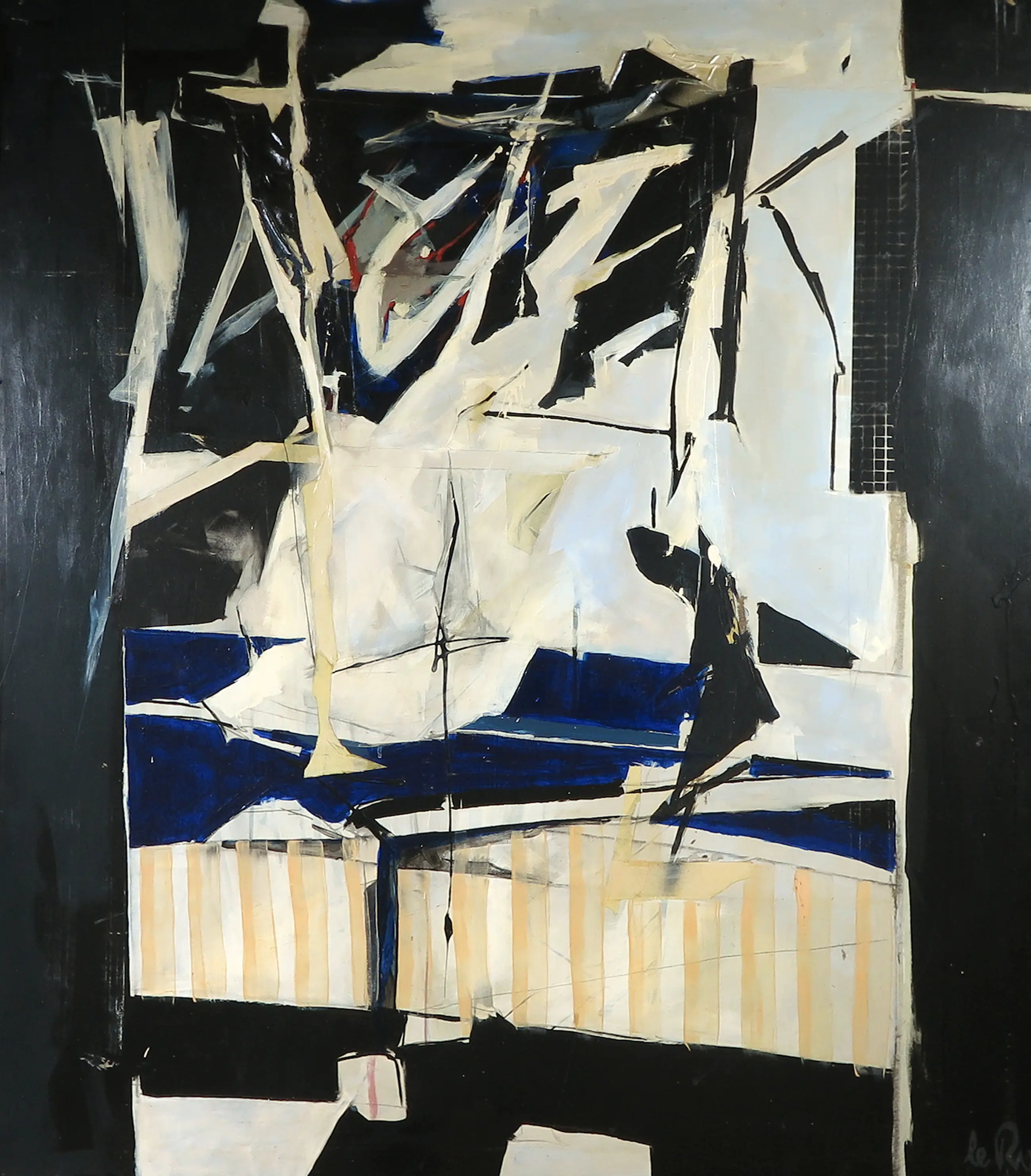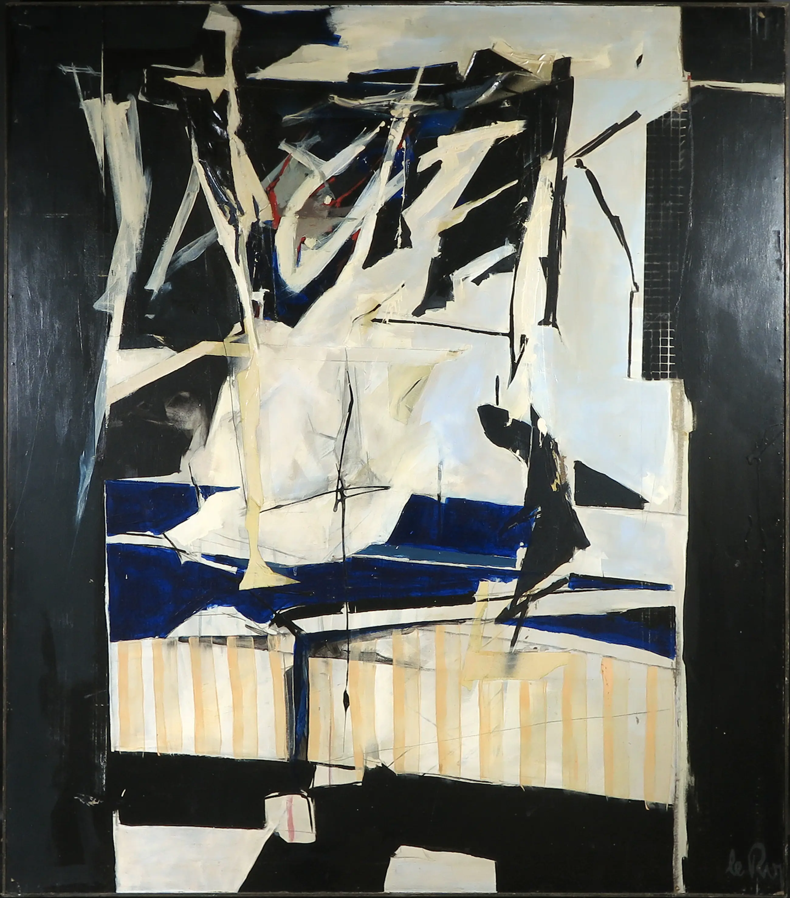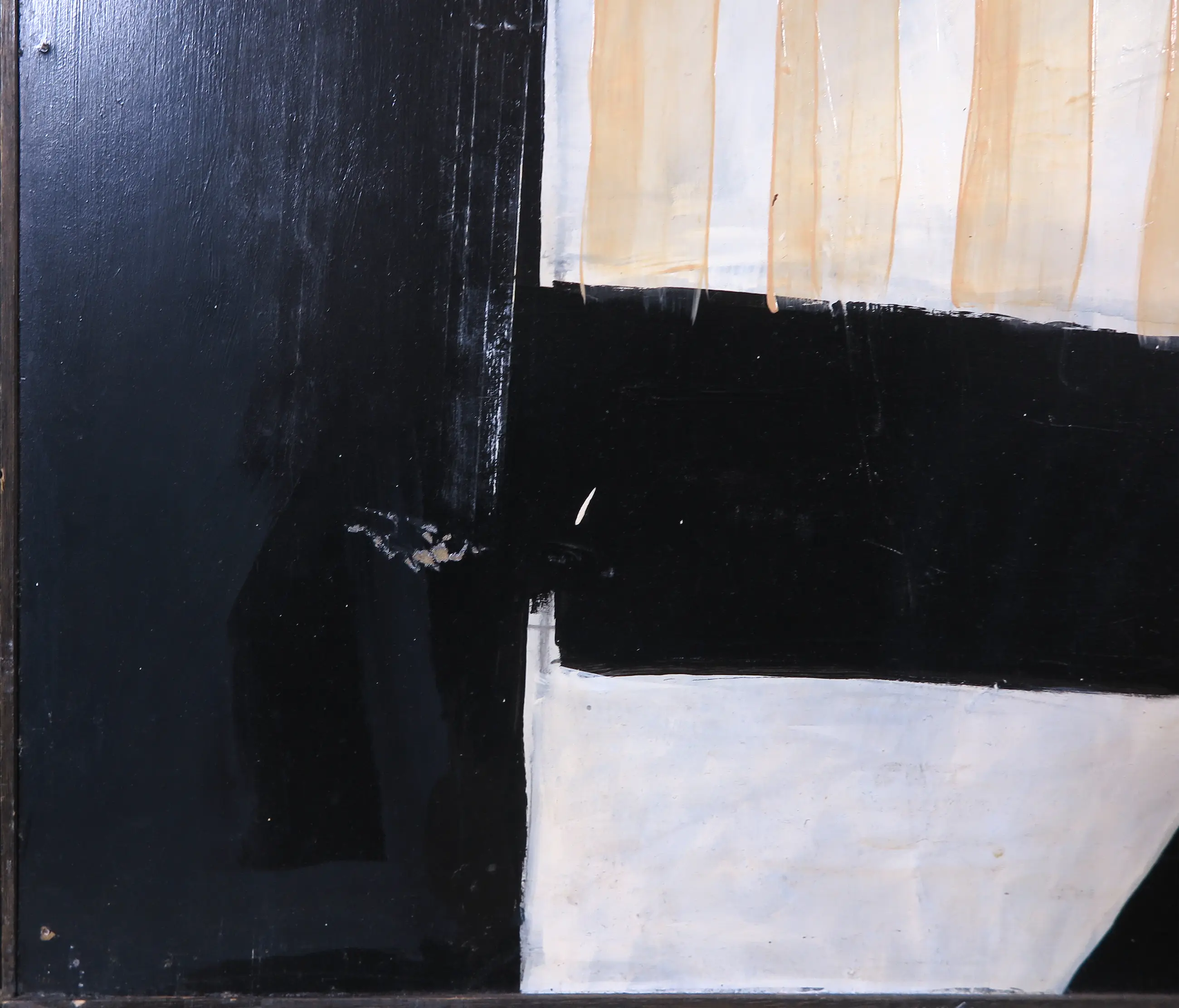 | Het paneel heeft op verschillende plekken krassen, verfschade en deukjes opgelopen. De lijst is bovendien aan vervanging toe: de latten zitten grotendeels los. | |