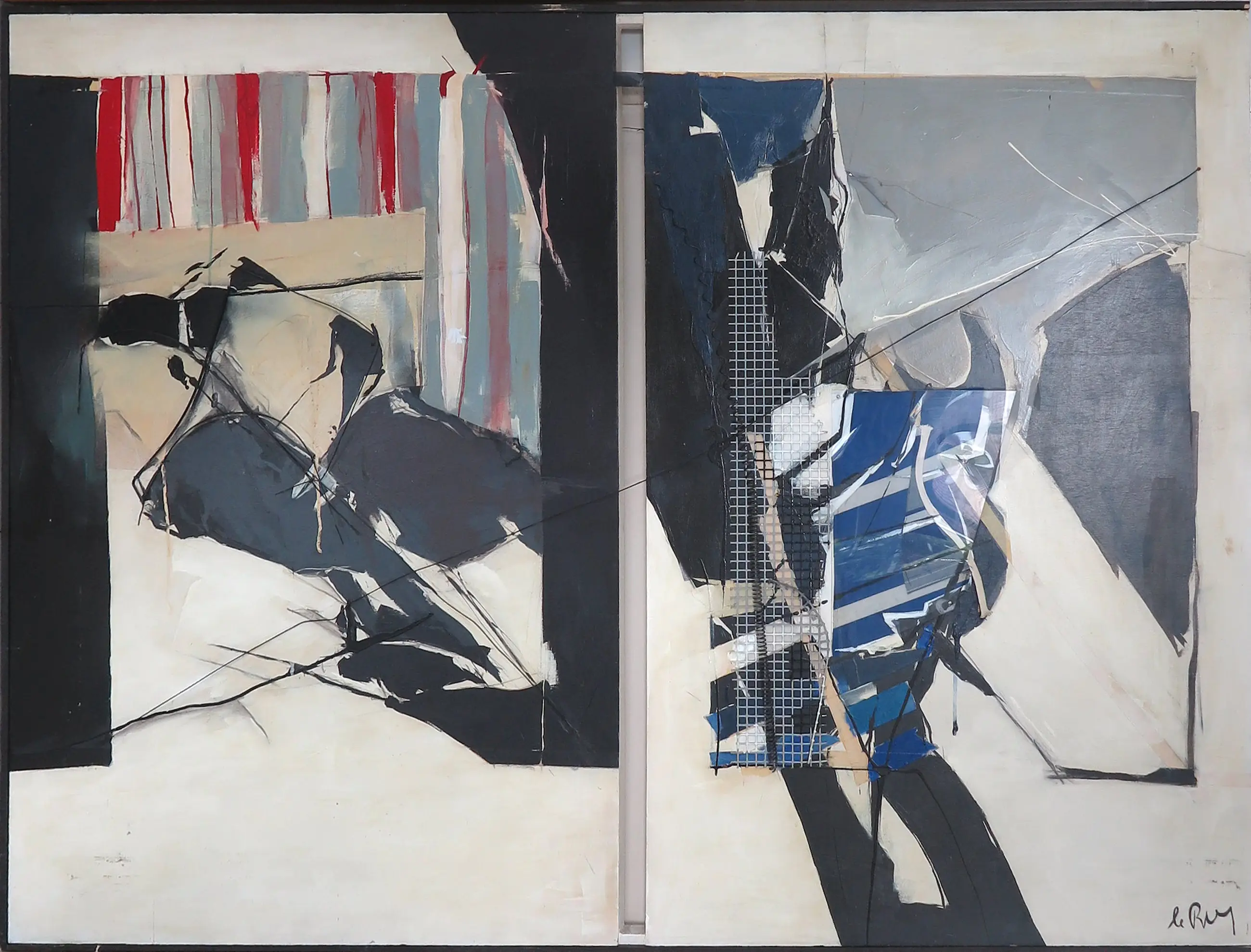 Het werk is wat vuil en kent hier en daar krasjes en verfschade. Zie ook de detailfoto's. Aan de rechterzijde mist een lat van de lijst. | |