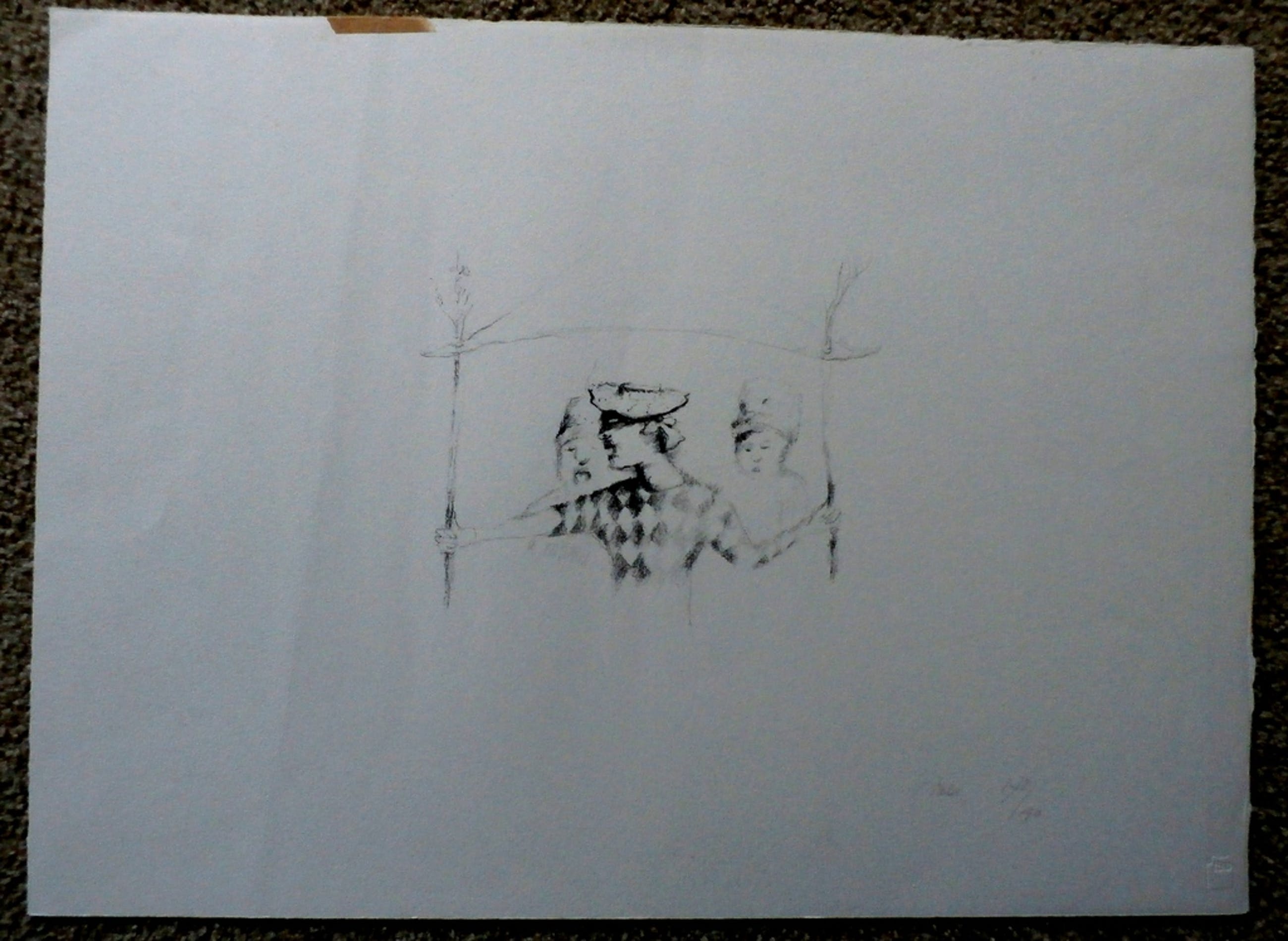 Conditie: Aan de linkerzijde zit een vouw door het witte gedeelte van het blad (niet door beeld, zie foto 3) en aan de bovenzijde zit een stukje tape van een vorige inlijsting. Dit valt bij inlijsting volledig onder de passe-partout.
