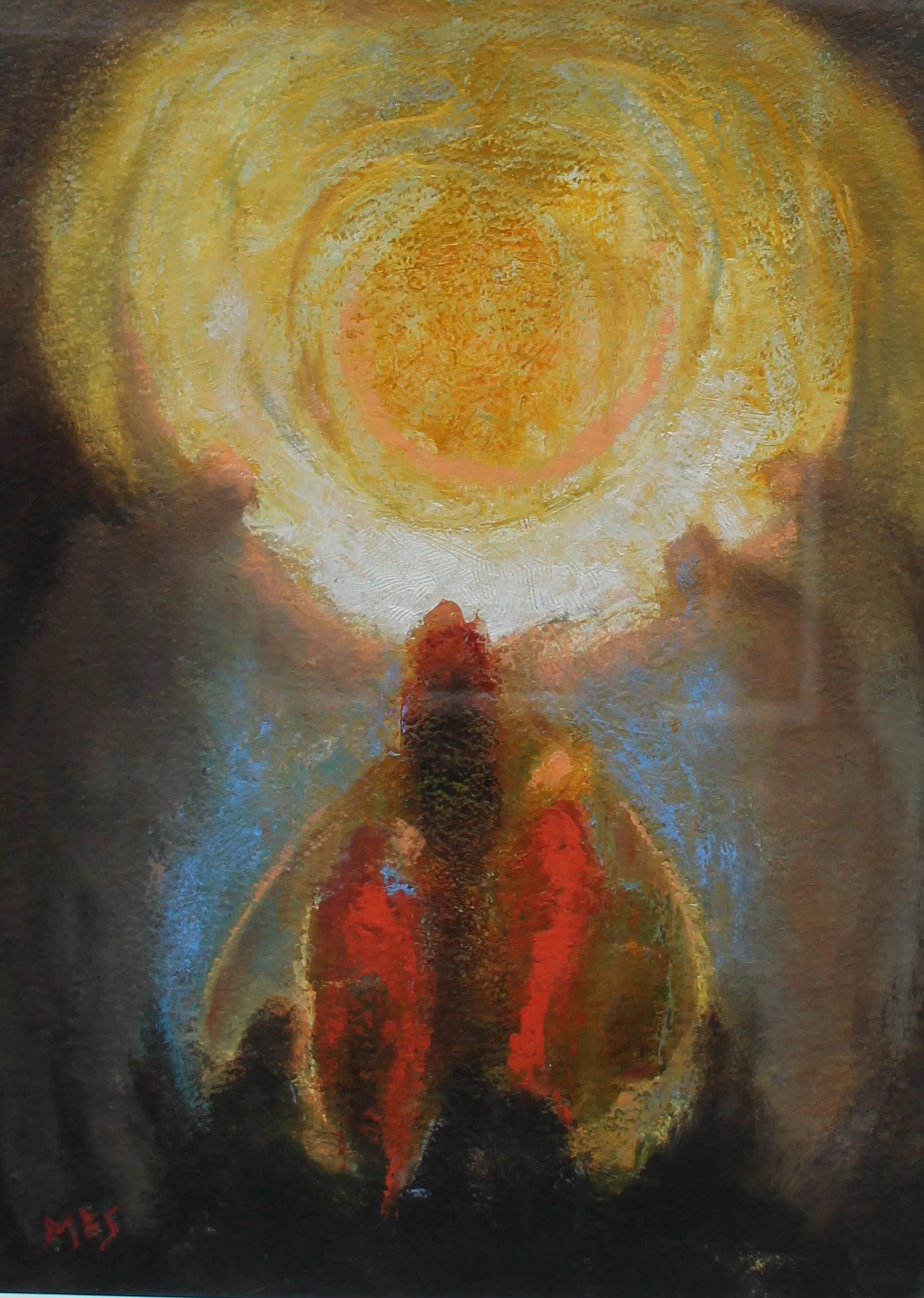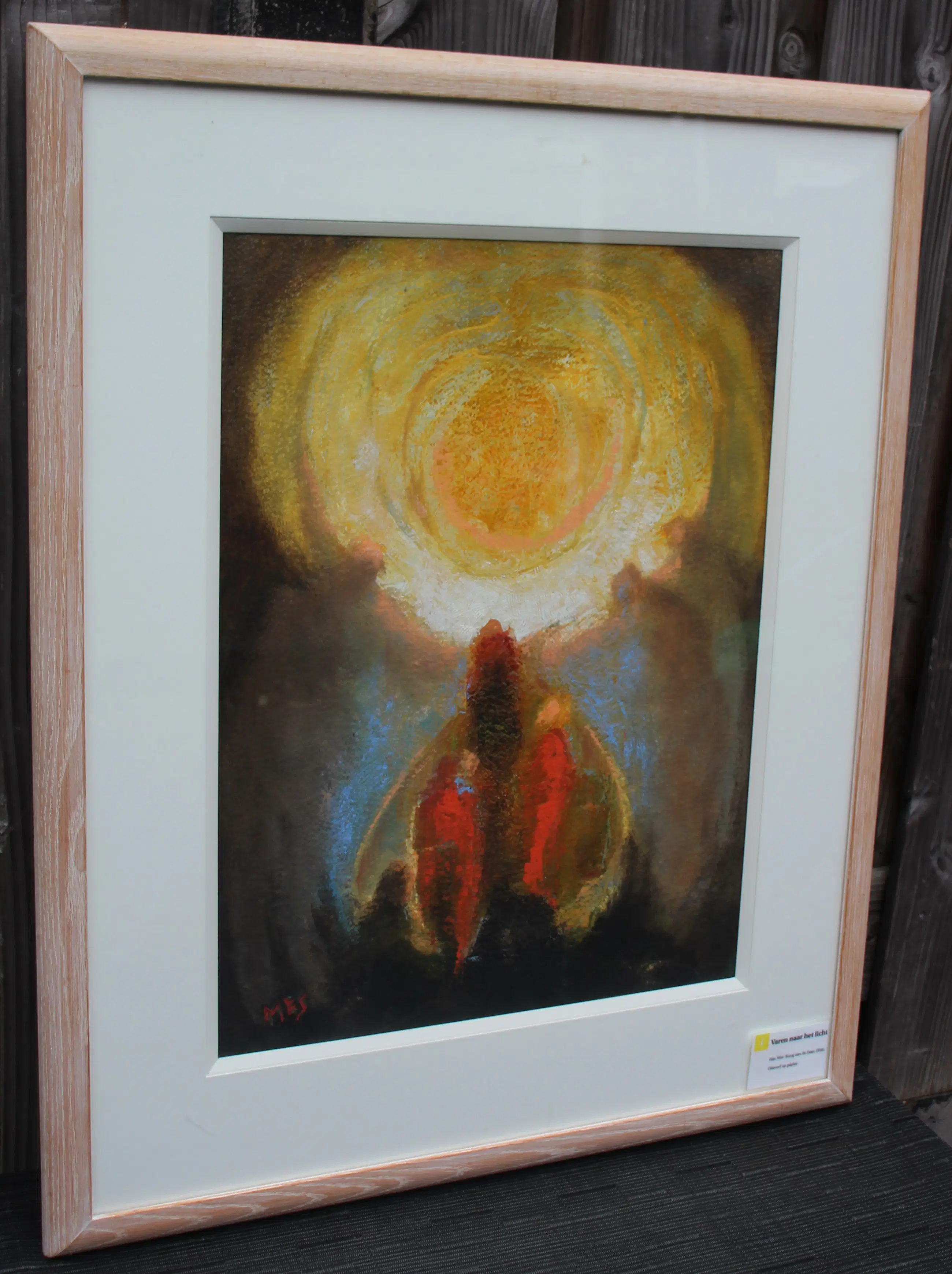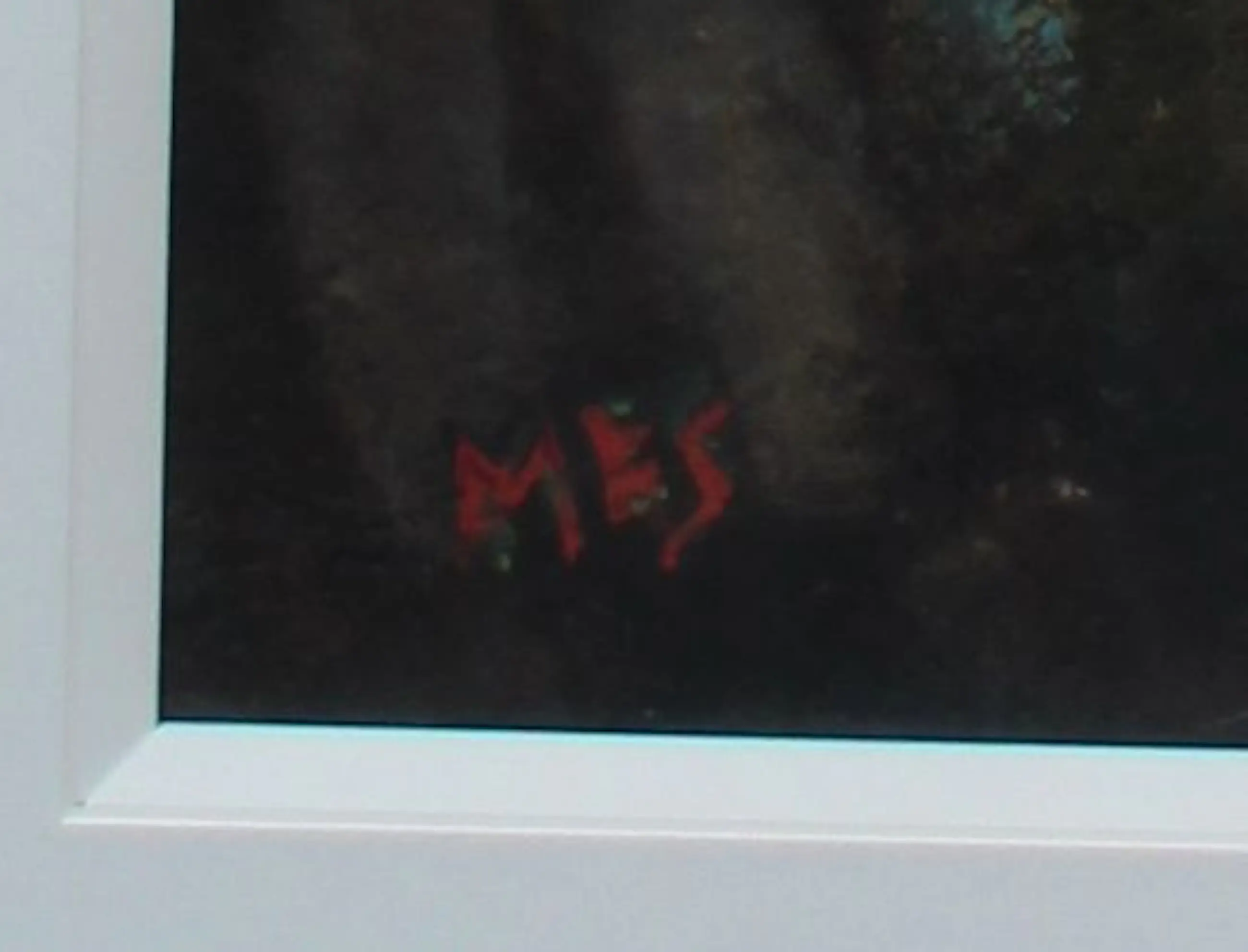 Ingelijste olieverf op papier, van Han Mes. Titel: Varen naar het licht. Afmetingen incl lijst: H88 x b88cm. Afmetingen voorstelling: H80 x b80cm. Het werk is links onderaan, gesigneerd("Mes") door de kunstenaar. De authenticiteit van dit werk wordt volledig gegarandeerd. Een certificaat van echtheid kan, op aanvraag, na aankoop en betaling van het werk worden gemaild.