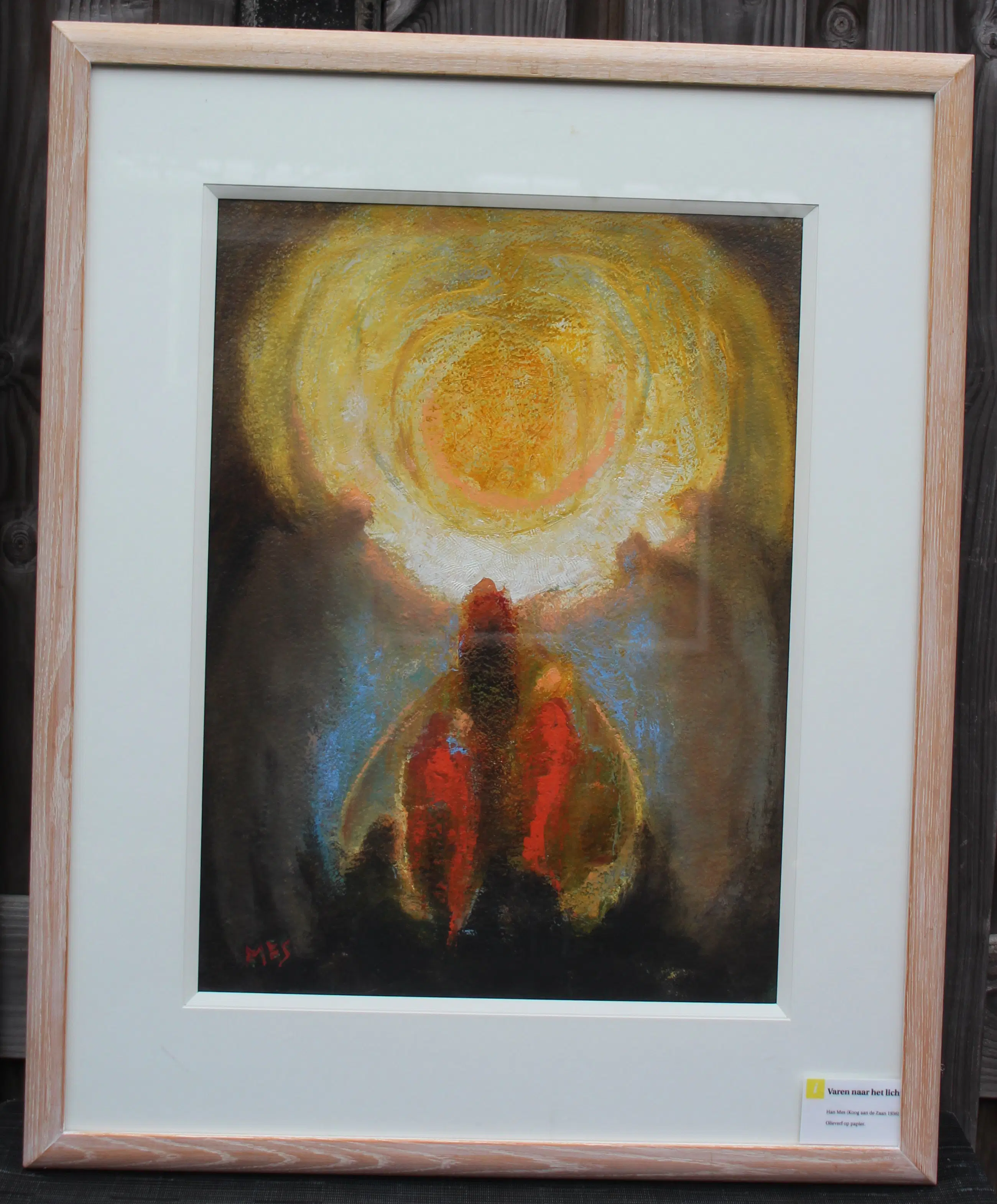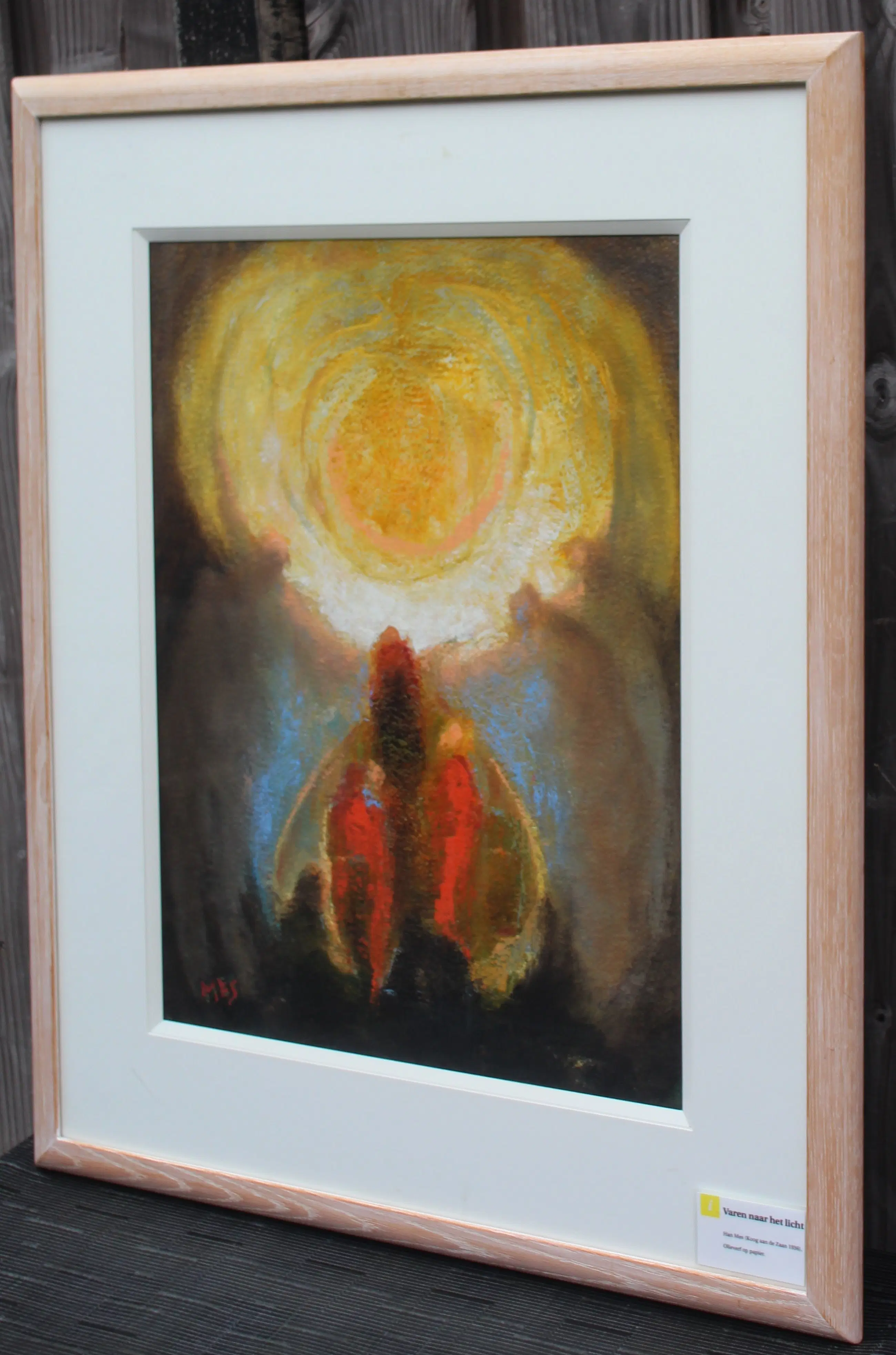 Han Mes - Ingelijste olieverf op papier: Varen naar het licht