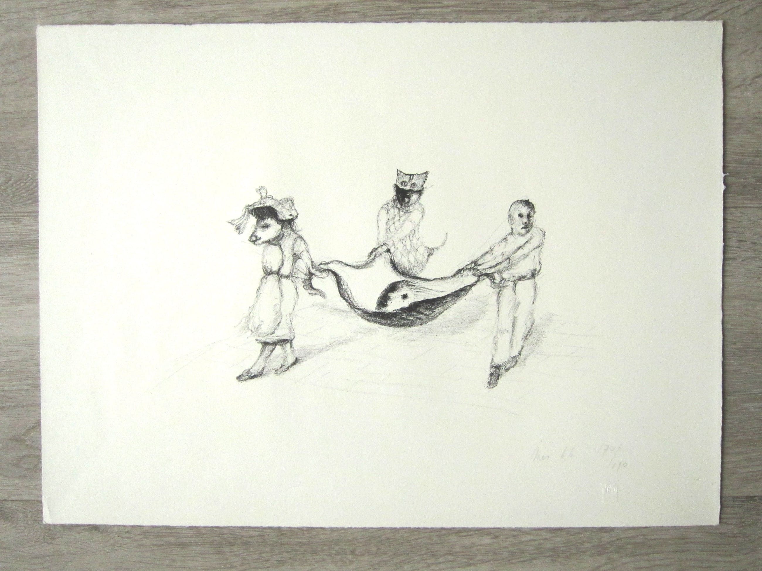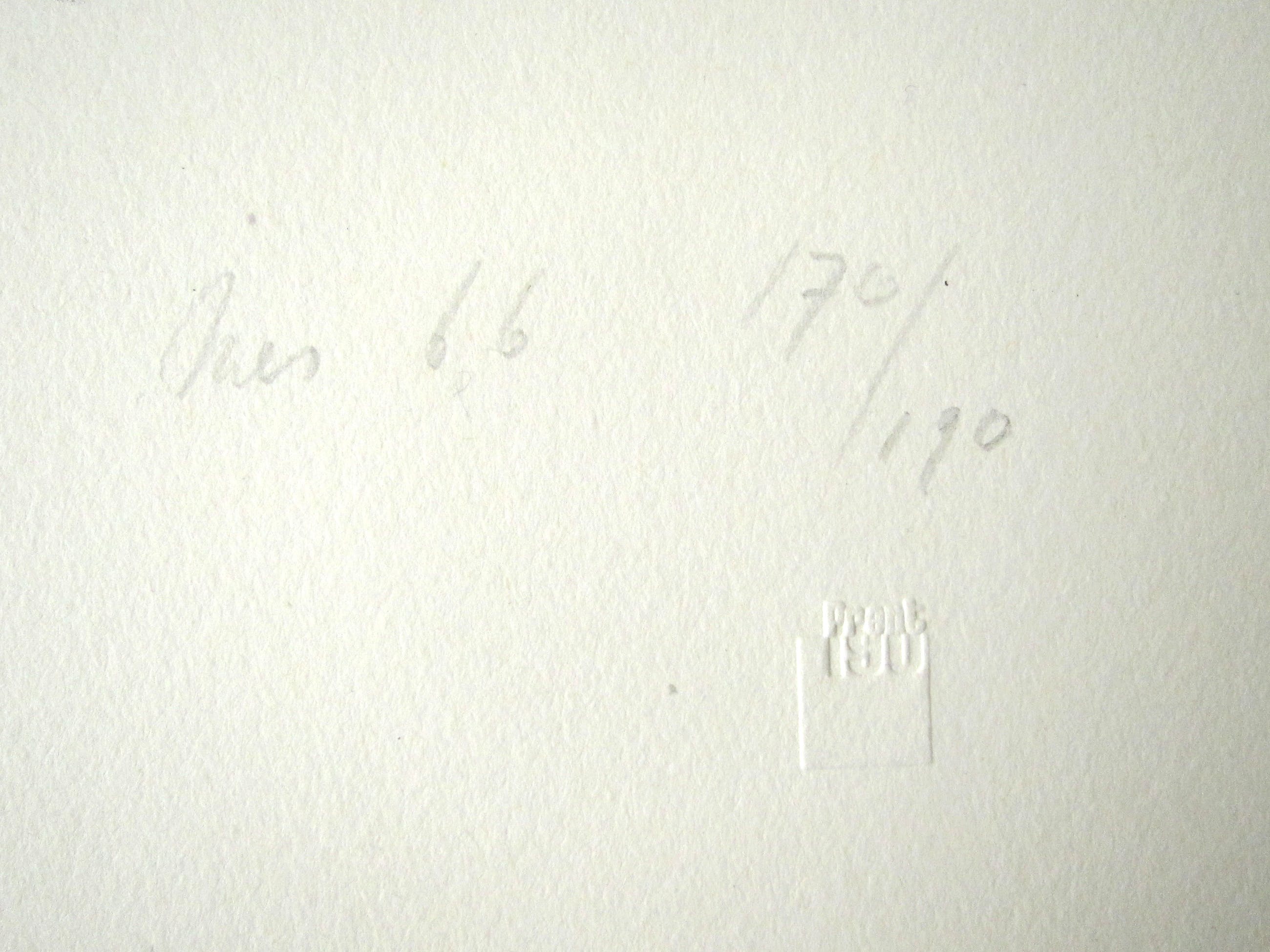 Aparte litho van Han Mes uit 1966, gemaakt voor prent 190. Gesigneerd en genummerd 170/190. Met preegdruk Prent 190 rechts onder. In prima conditie, verso schoon.