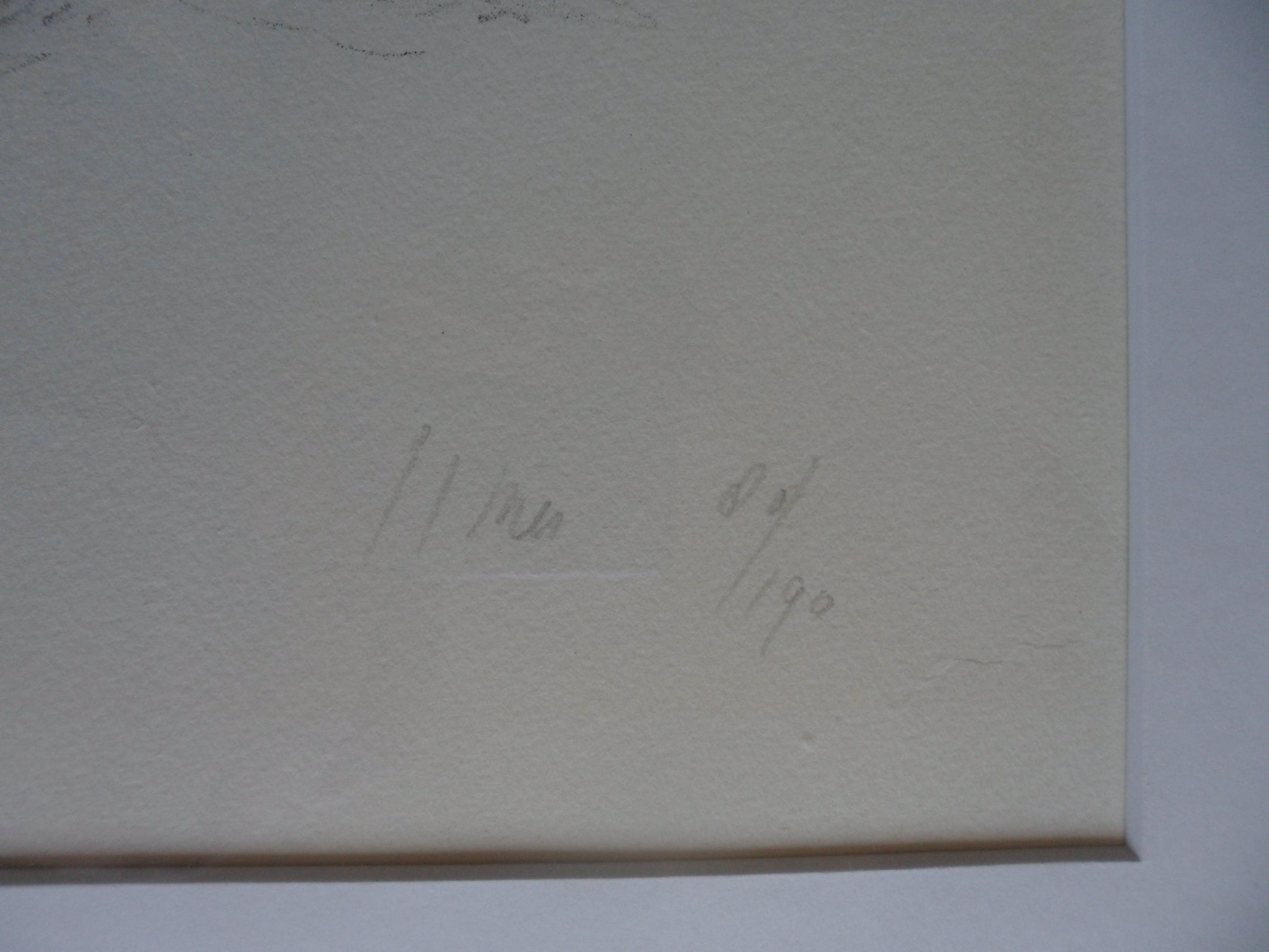 Hand gesigneerd en -genummerd met potlood. Gemaakt in een oplage van 190 exemplaren. Dit is nr 80/190. Afmetingen Lijst: 58 x 71 cm.