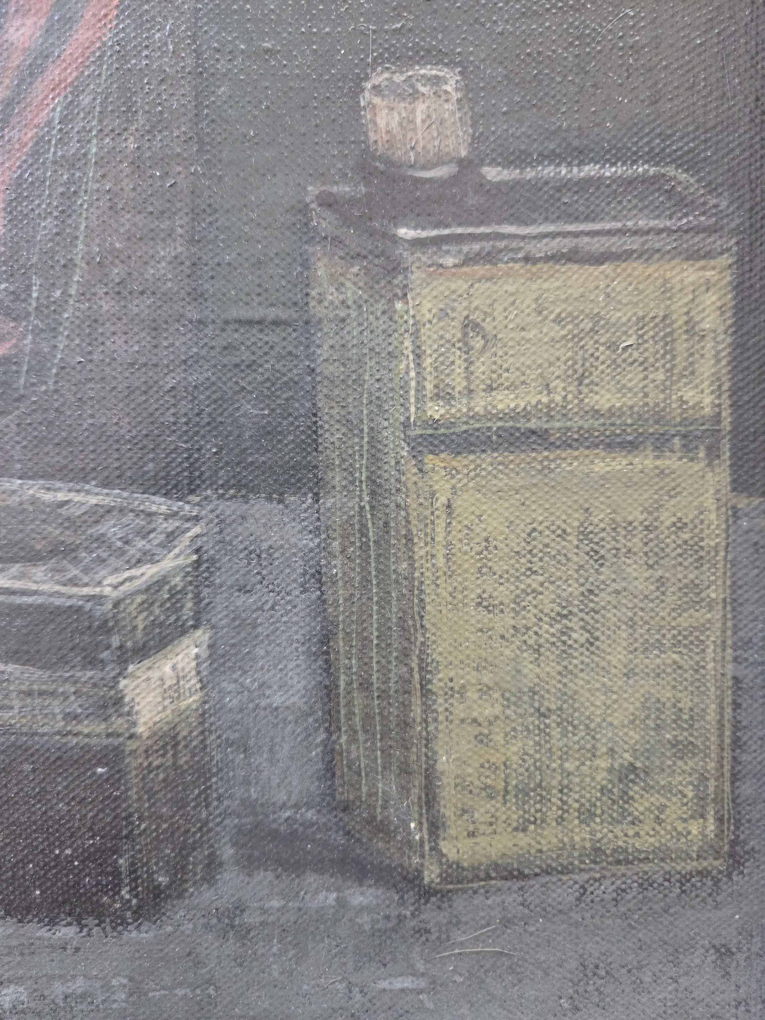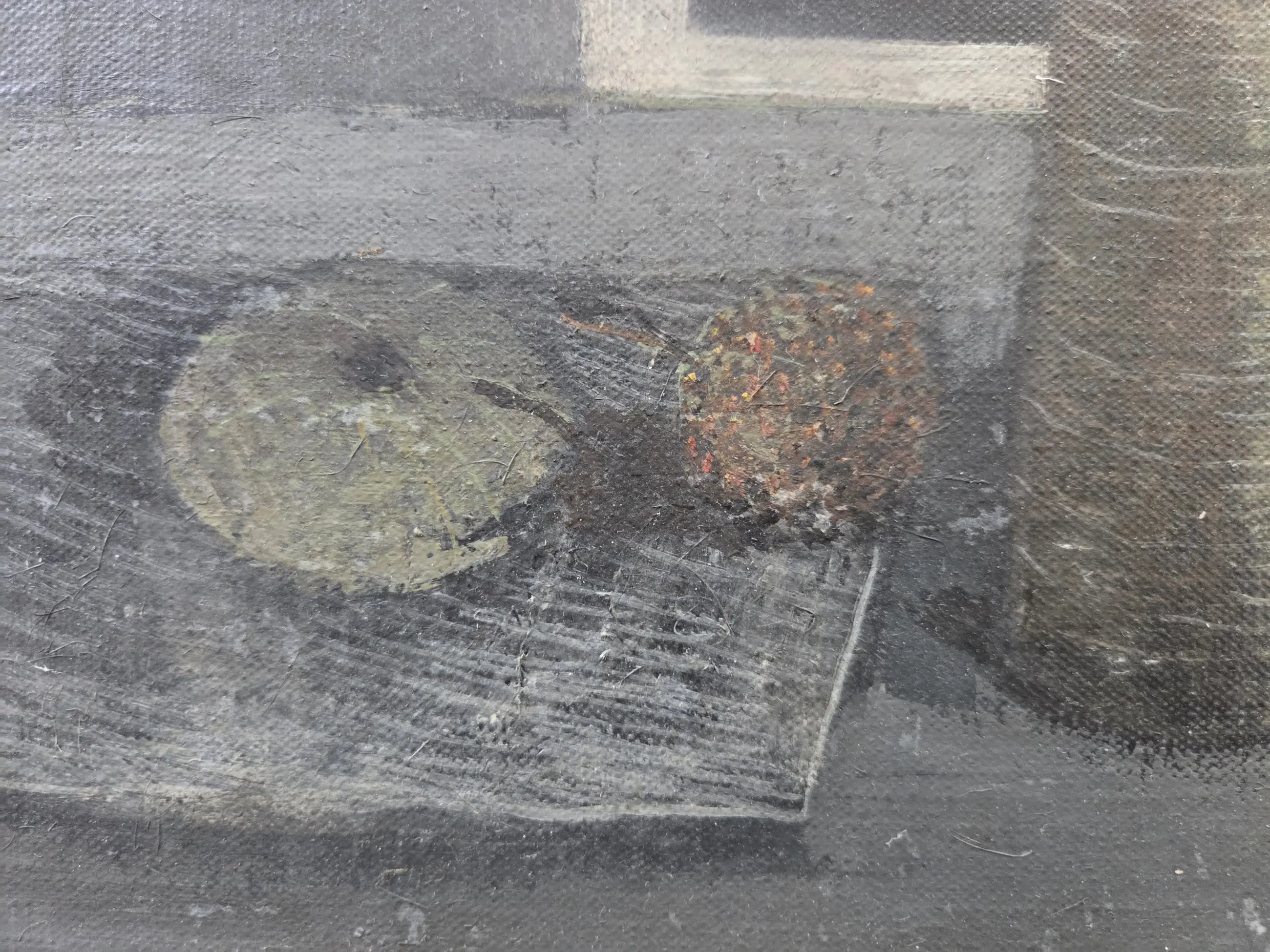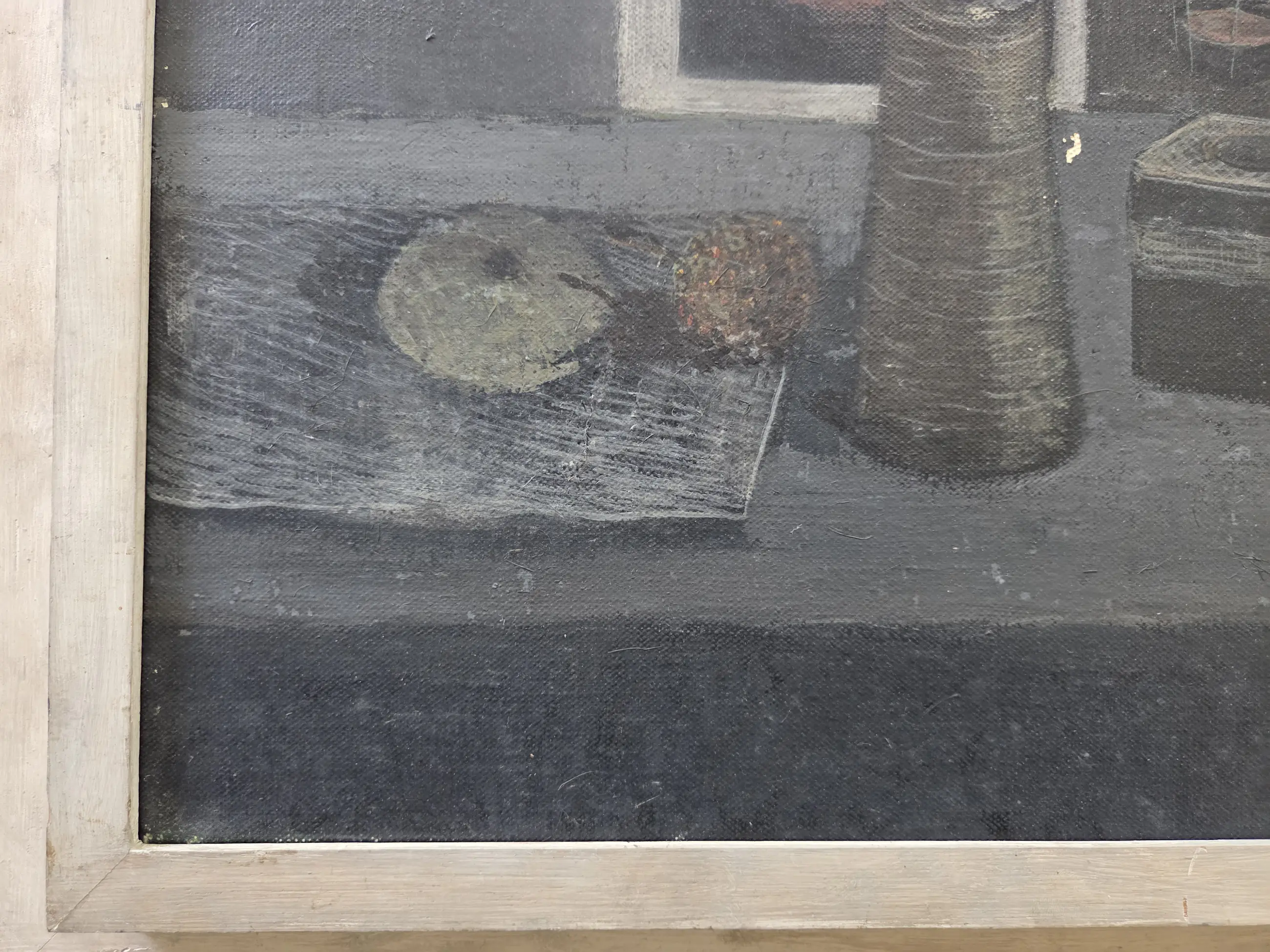 Vroeg werk. Intrigerende voorstelling. Gesigneerd en gedateerd. Algemeen goede staat met een paar plekjes verfverlies. Zie foto's voor eigen oordeel kwaliteit.