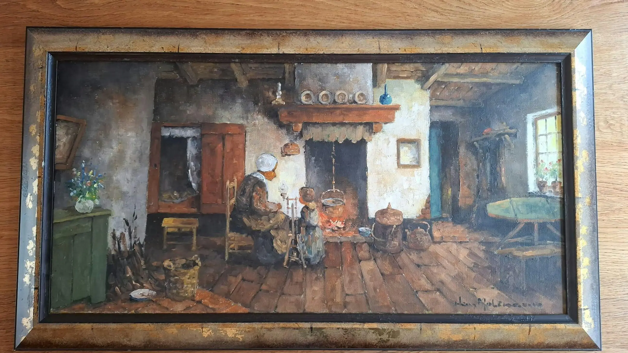 Prachtig en sfeervol schilderij van de Nederlandse kunstenaar Han Molenaar, bekend om zijn warme en nostalgische taferelen.