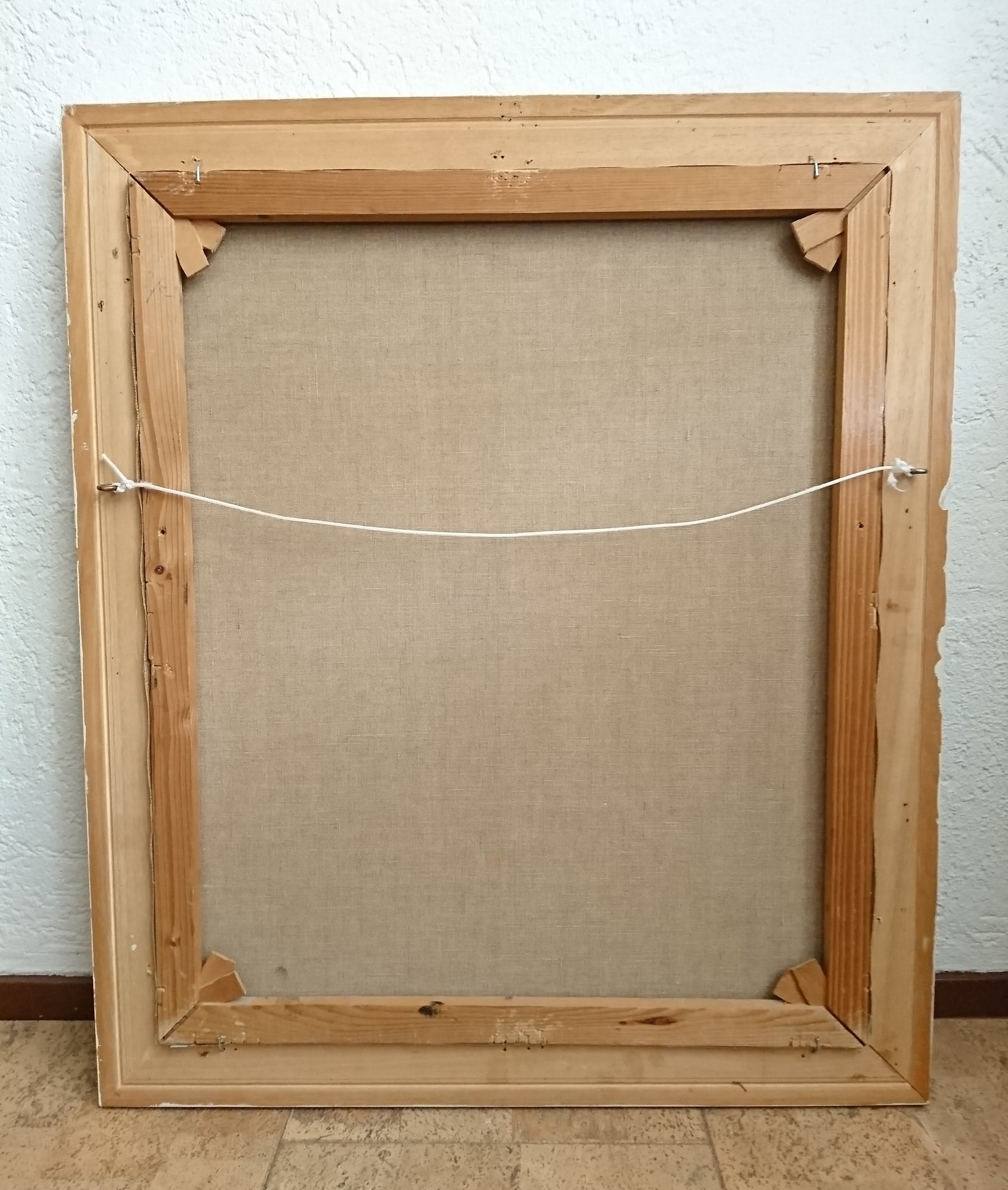 Gekaderd in een bijpassende eenvoudige lijst deze heeft wat lichte reparatiesporen.