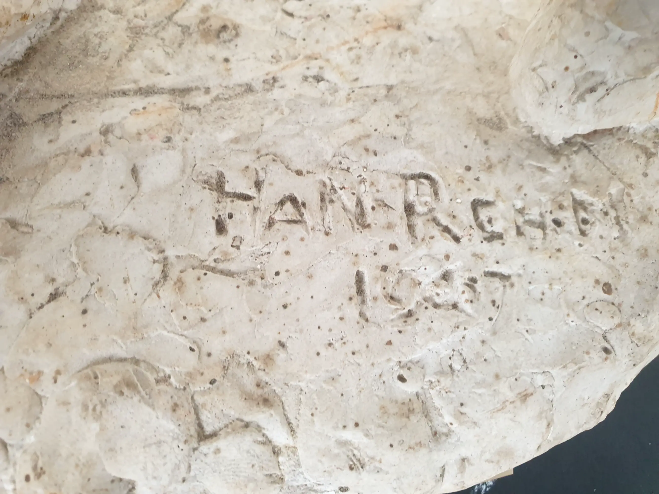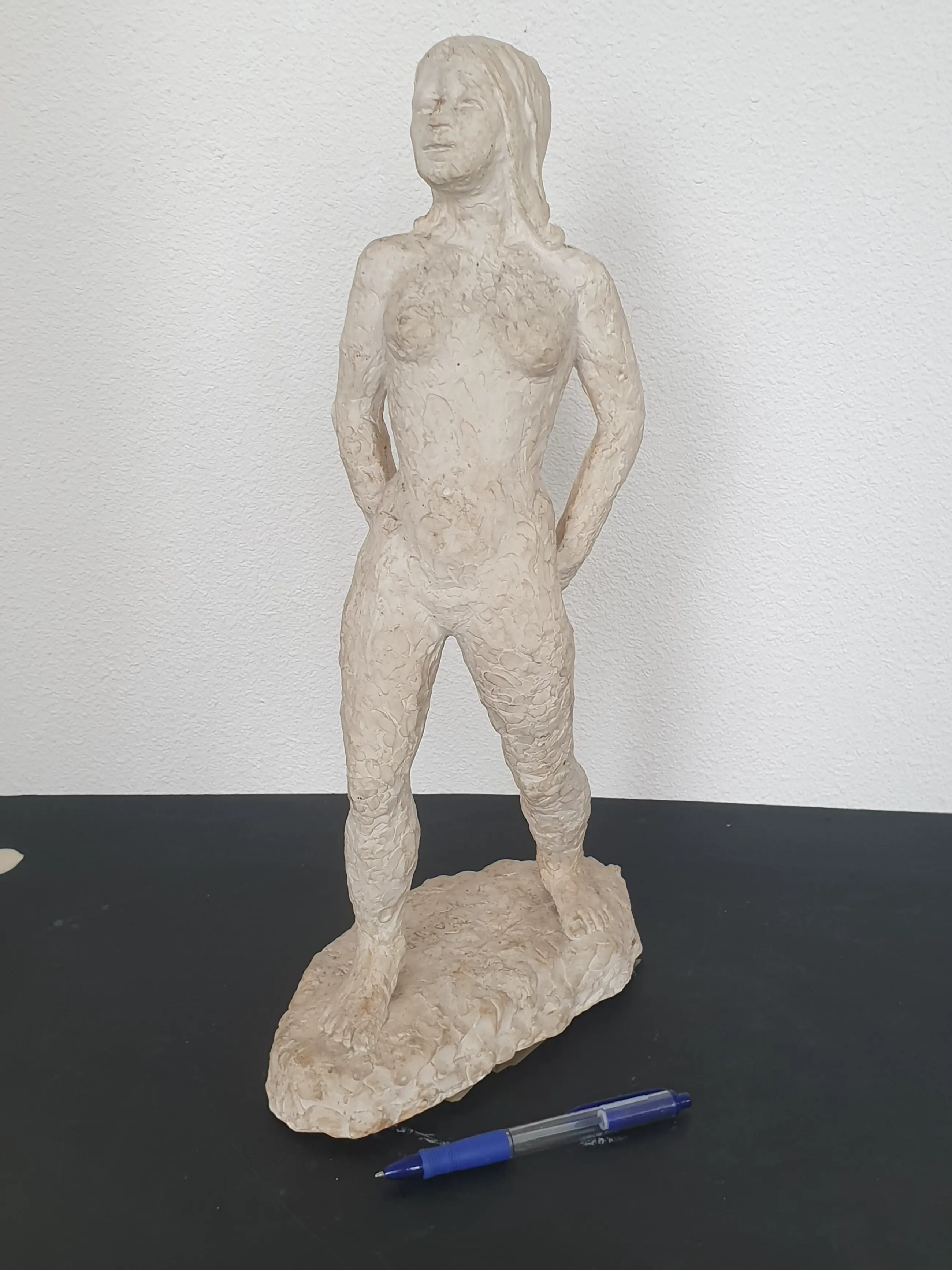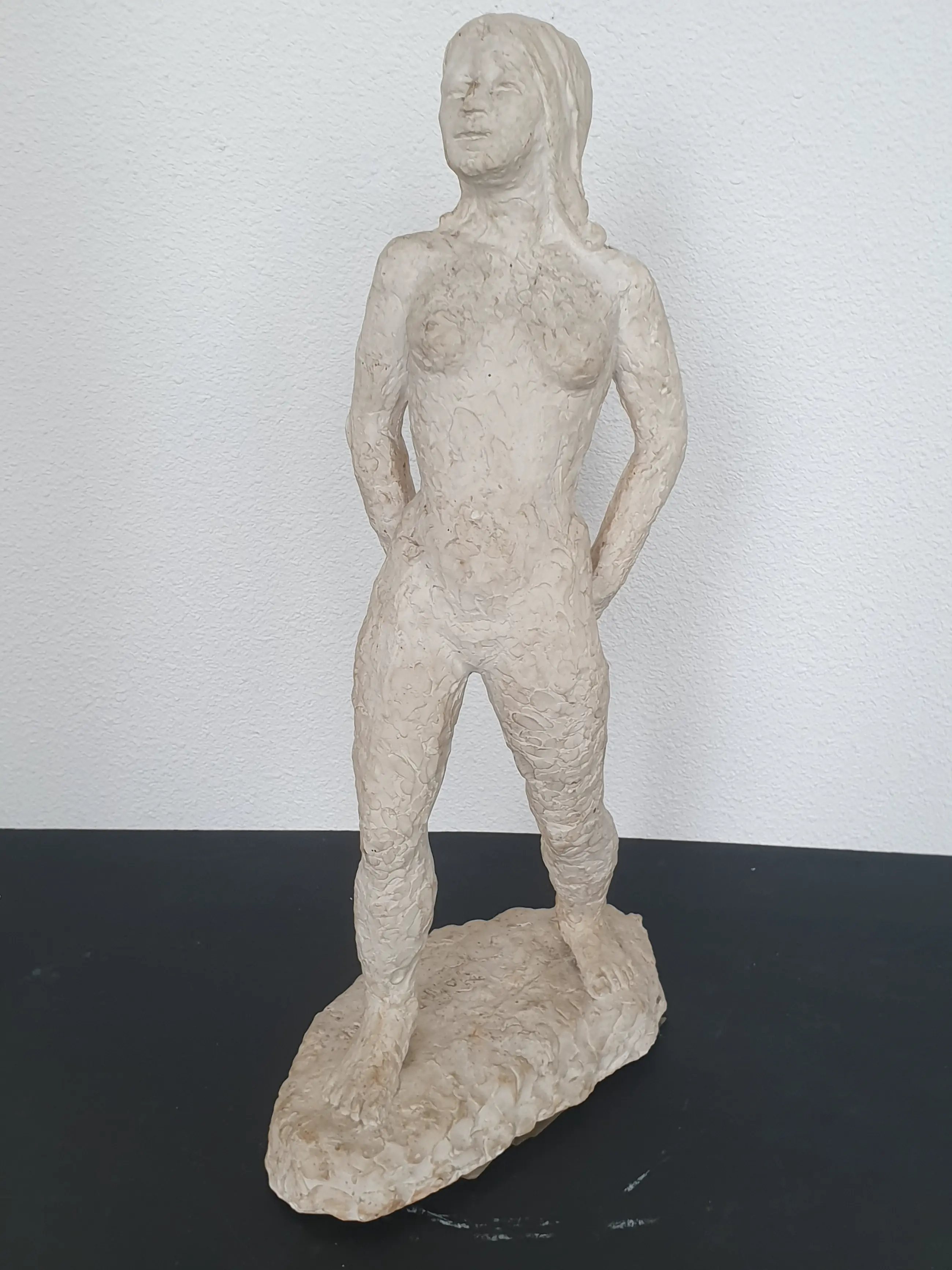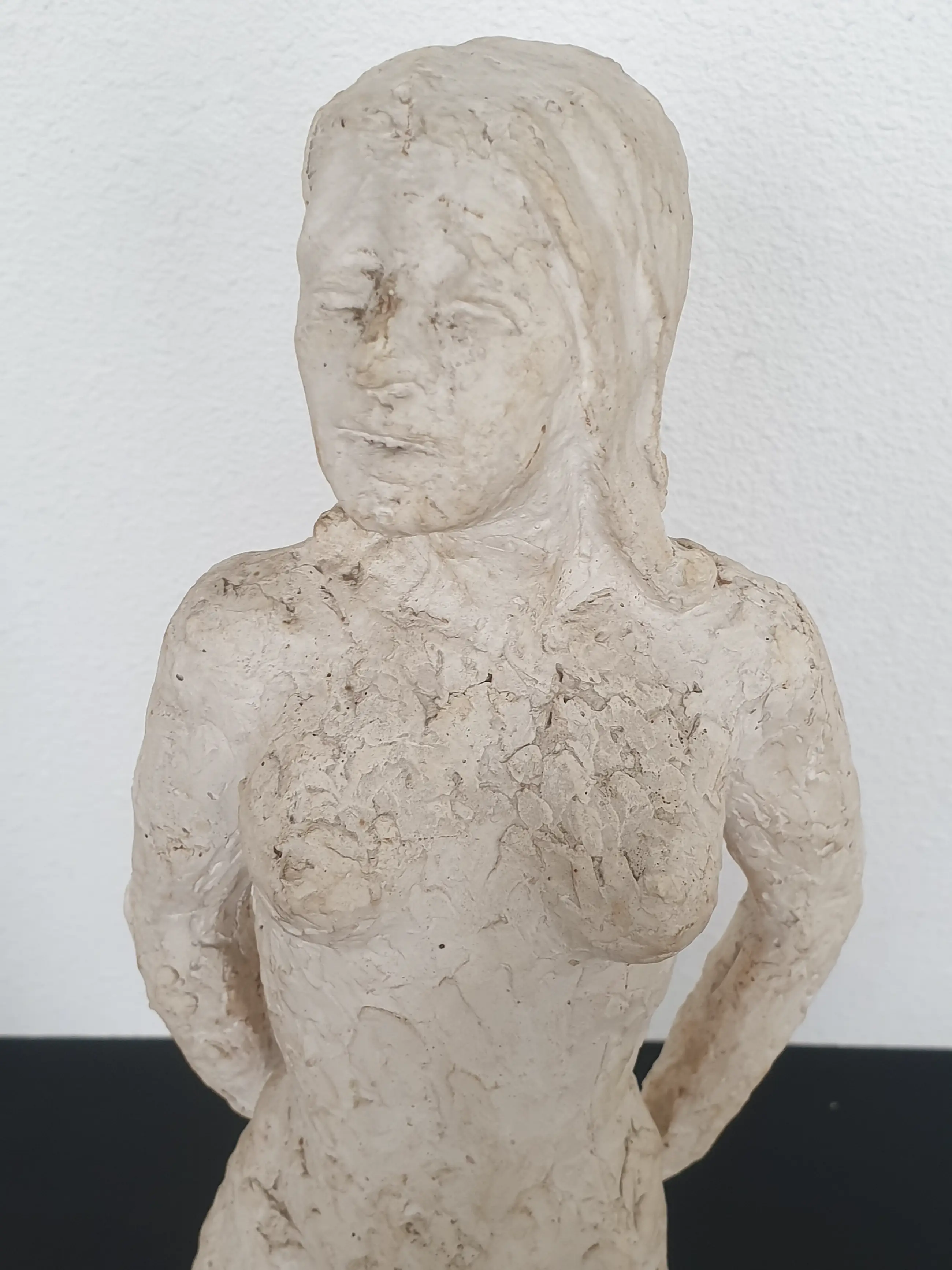 Gipsen studie van een naakte vrouw, Gesigneerd ‘Han Rehm' en met datering 1957 ? aan de achterzijde.