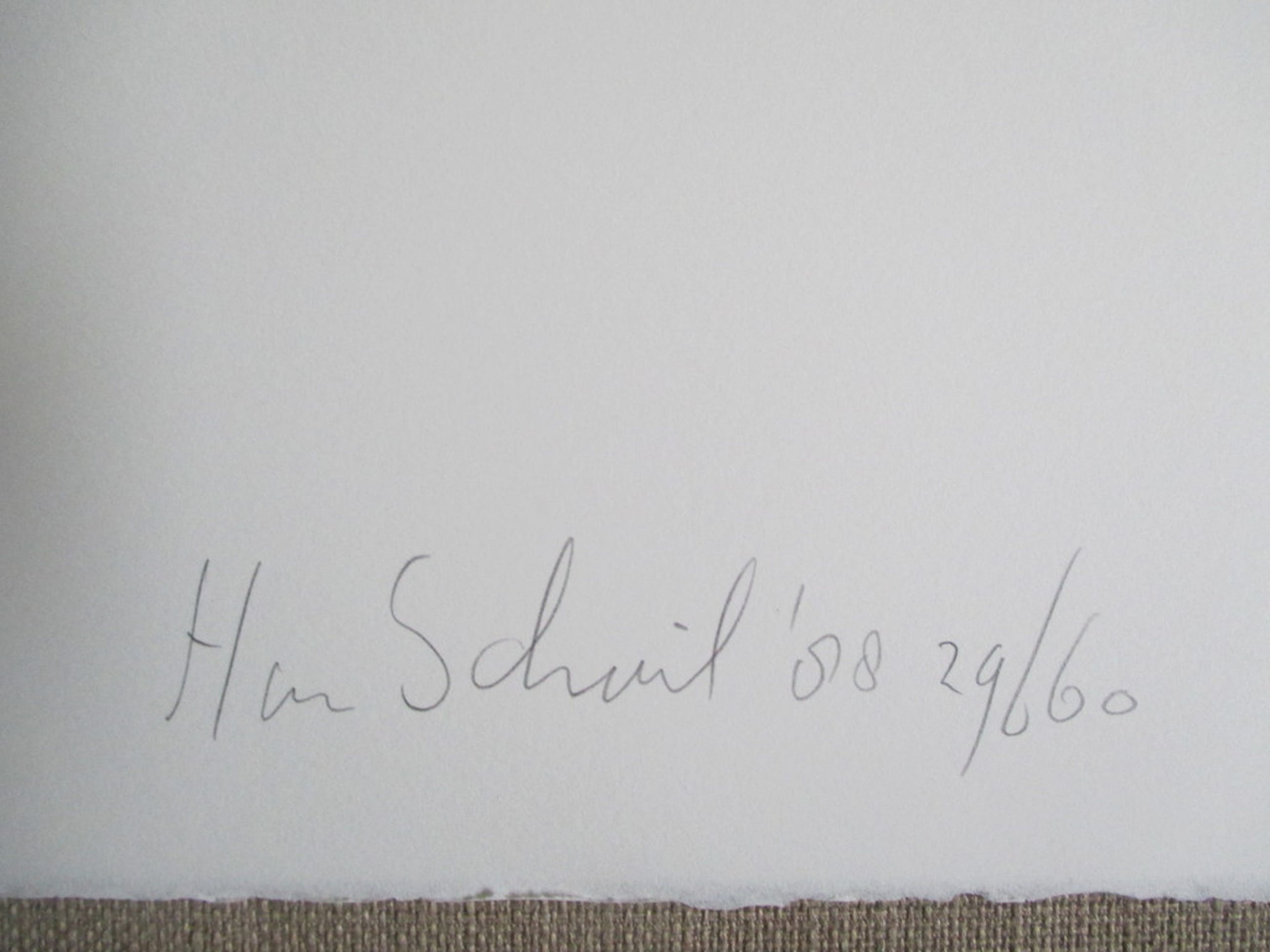Drie-kleuren litho van Han Schuil op 250 grams BFK Rives papier. Genummerd 29/60, gedateerd en gesigneerd in potlood. Afm. blad 40x55 cm. In perfecte staat, nooit ingelijst geweest.