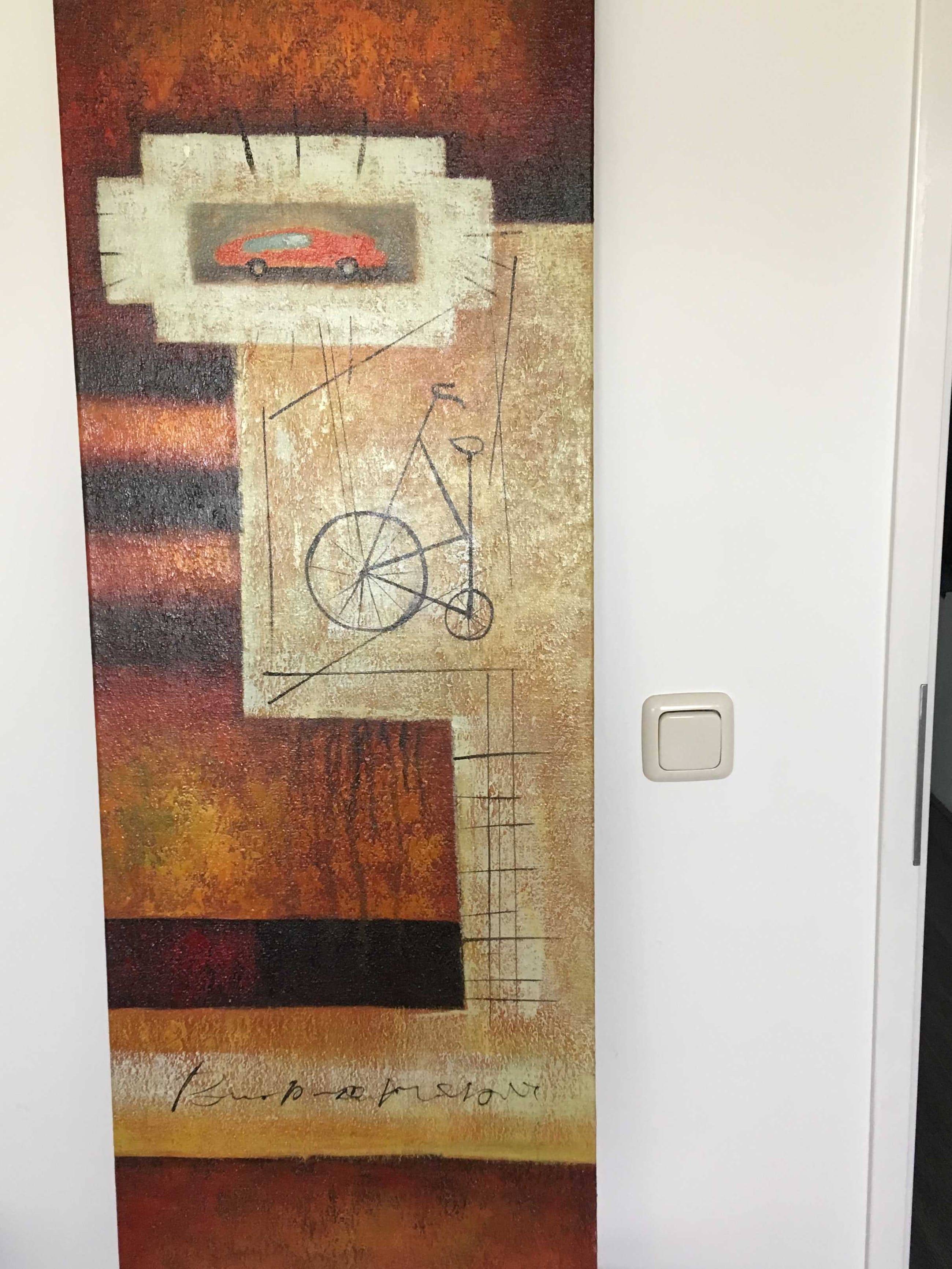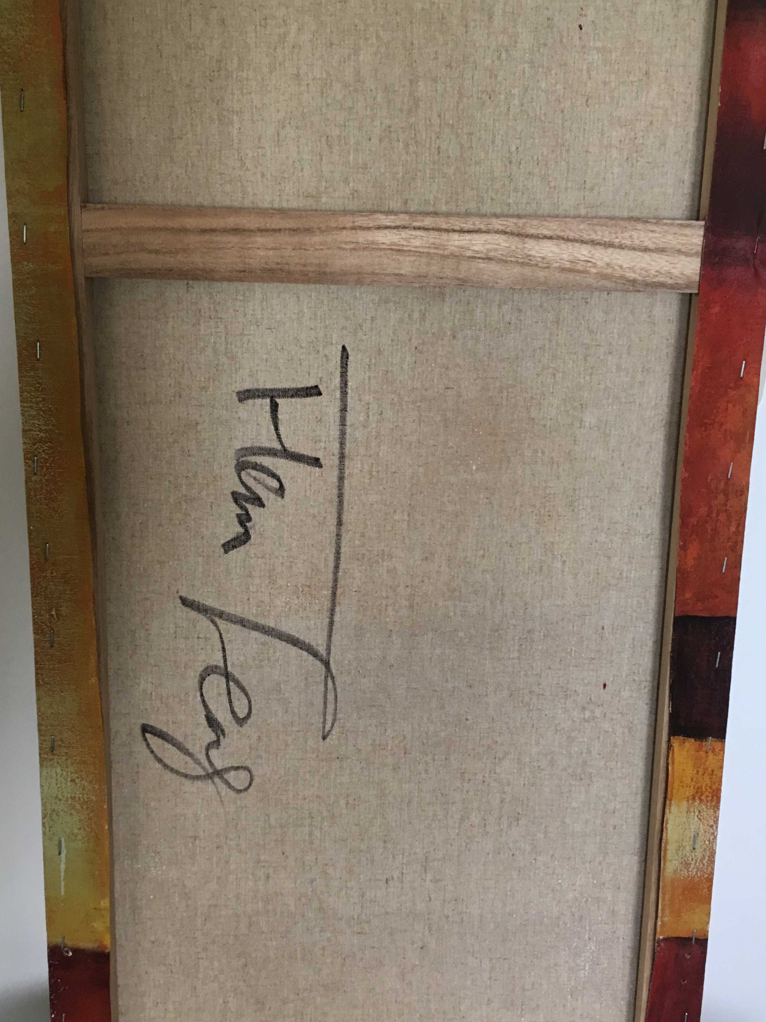 Fraai schilderij van Han Teng op gespannen doek, dus randen meegeschilderd. Het doek is handgesigneerd op de achterkant. Gezien formaat en kleurgebruik een schitterende aanwinst voor een wand met ruimte. Han Teng staat bekend om een zorgvuldig kleurgebruik waarmee zijn kunst nooit te schreeuwerig wordt, maar er subtiel uitspringt in een passende omgeving.