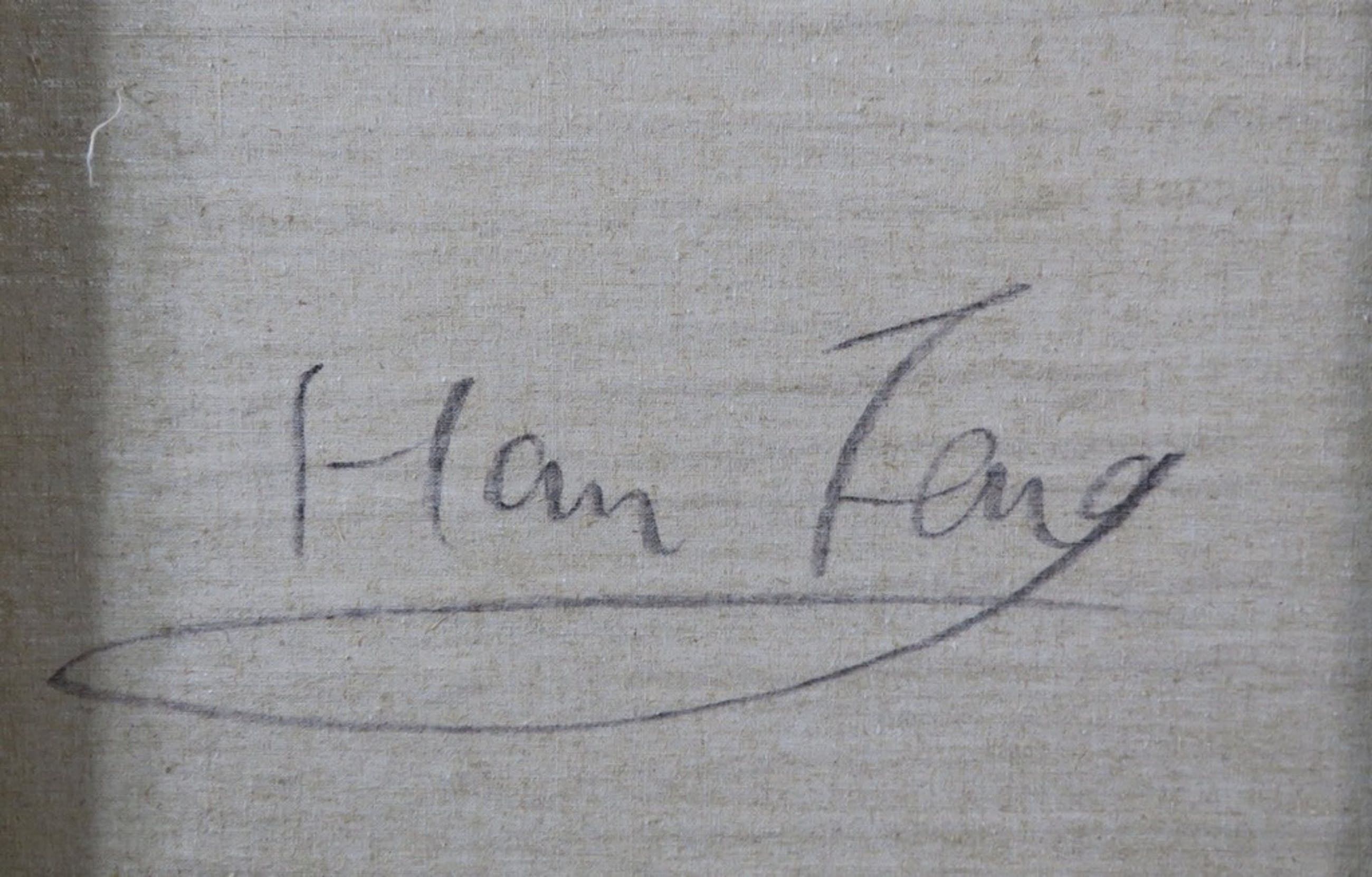 Ingelijst: Nee, maar bevestigd op spieraam met ophangsysteem