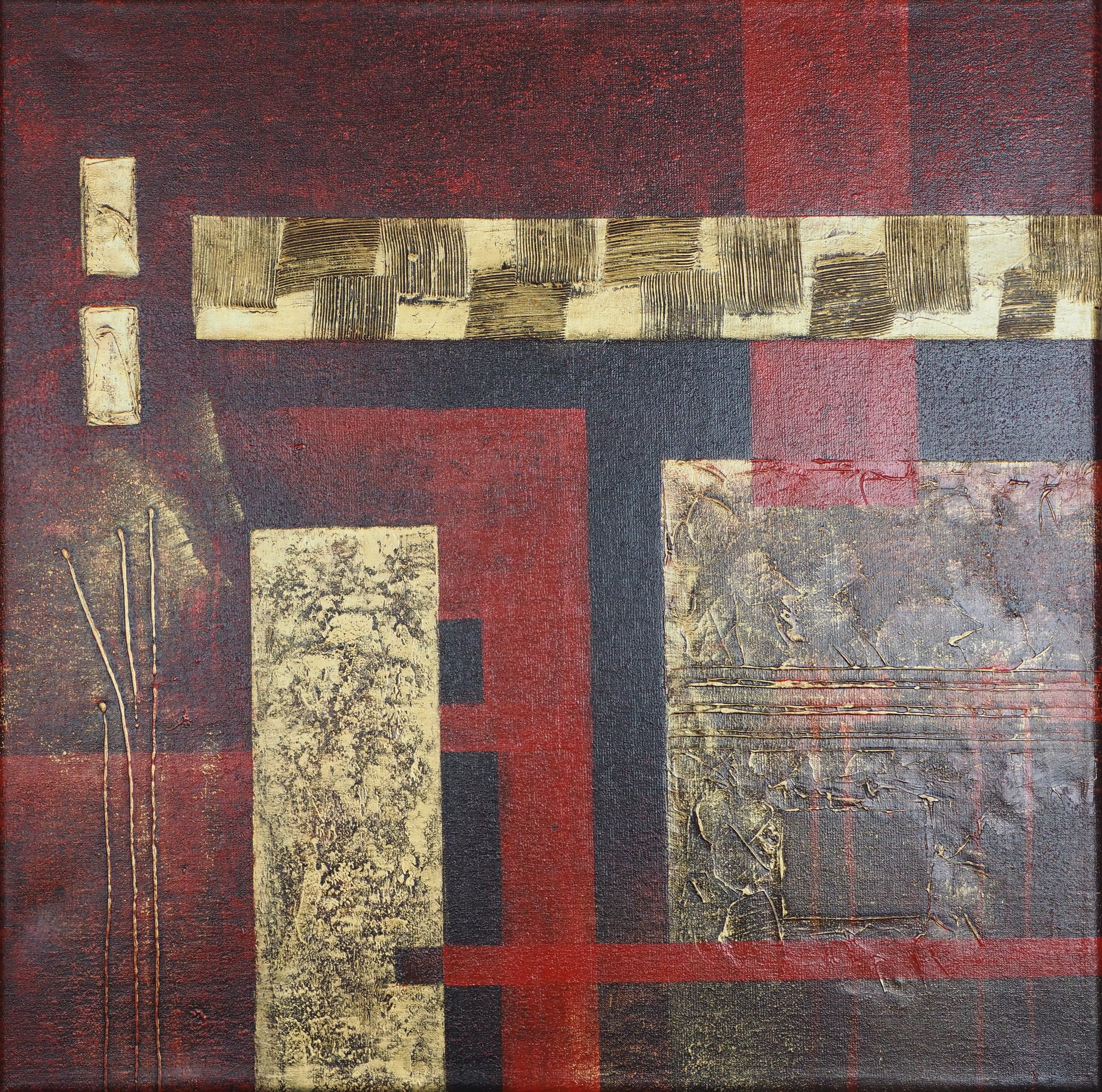 Abstract schilderij in warme kleuren. Op 2 cm dik spieraam.