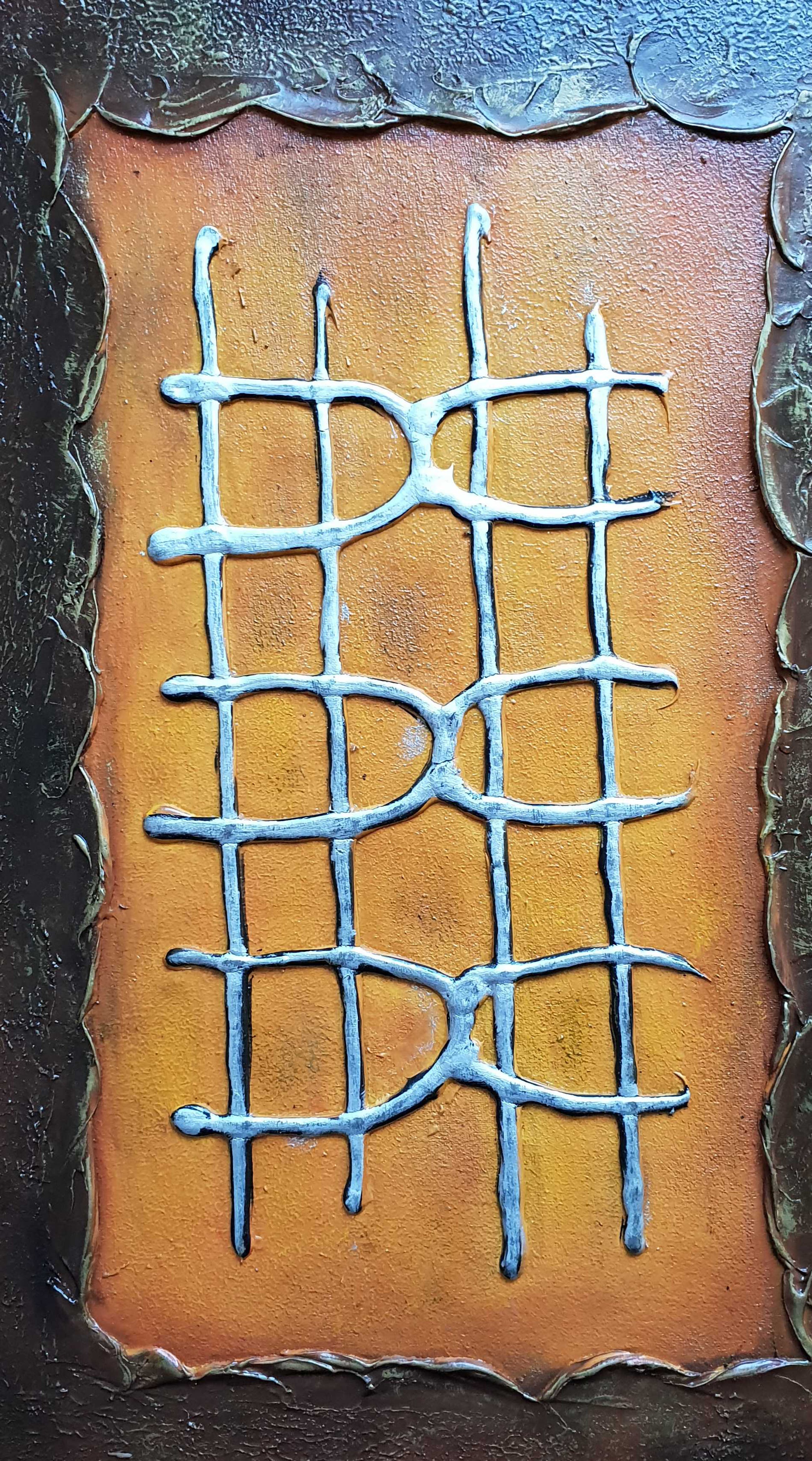 Han Teng ( 1978 ) is afgestudeerd aan de universiteit van Tianshui in 2001. Behaalde zijn bachelor's graad van de Chinese Nationale Universiteit voor de kunst. Op de 50ste verjaardag van de stichting van de staat van China verkreeg zijn schilderij 'Dat Jaar' de "Uitstekend Kunstwerk" prijs. Zijn werken zitten in wereldwijde collecties. Bij dit werk zijn de randen van de rechthoek en de zilveren lijnen dik aangezet en liggen hoog op het doek.