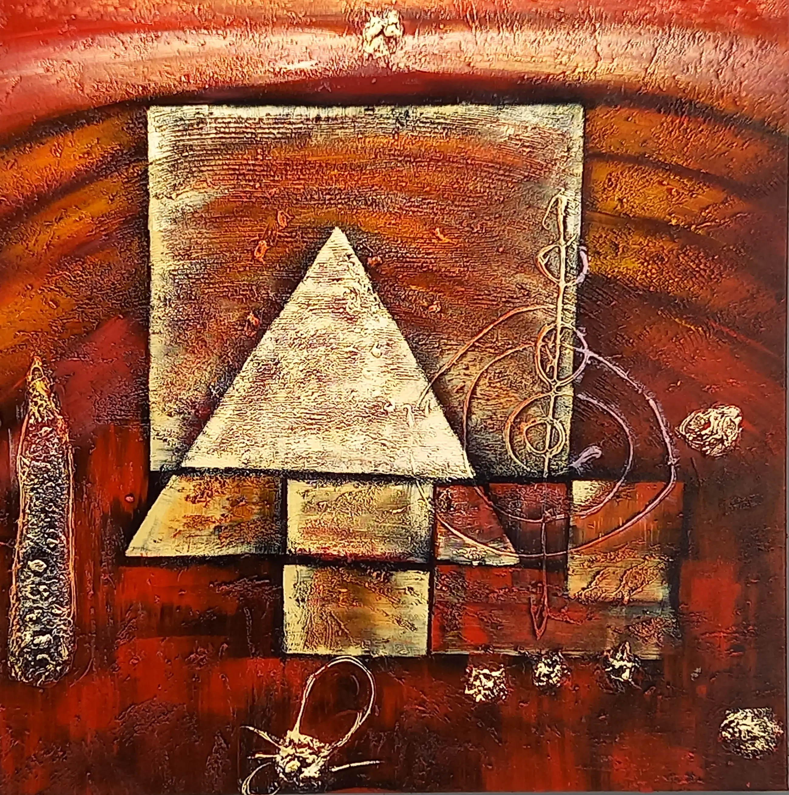 Schilderij opgespannen op dik spieraam. Gesigneerd op achterzijde.