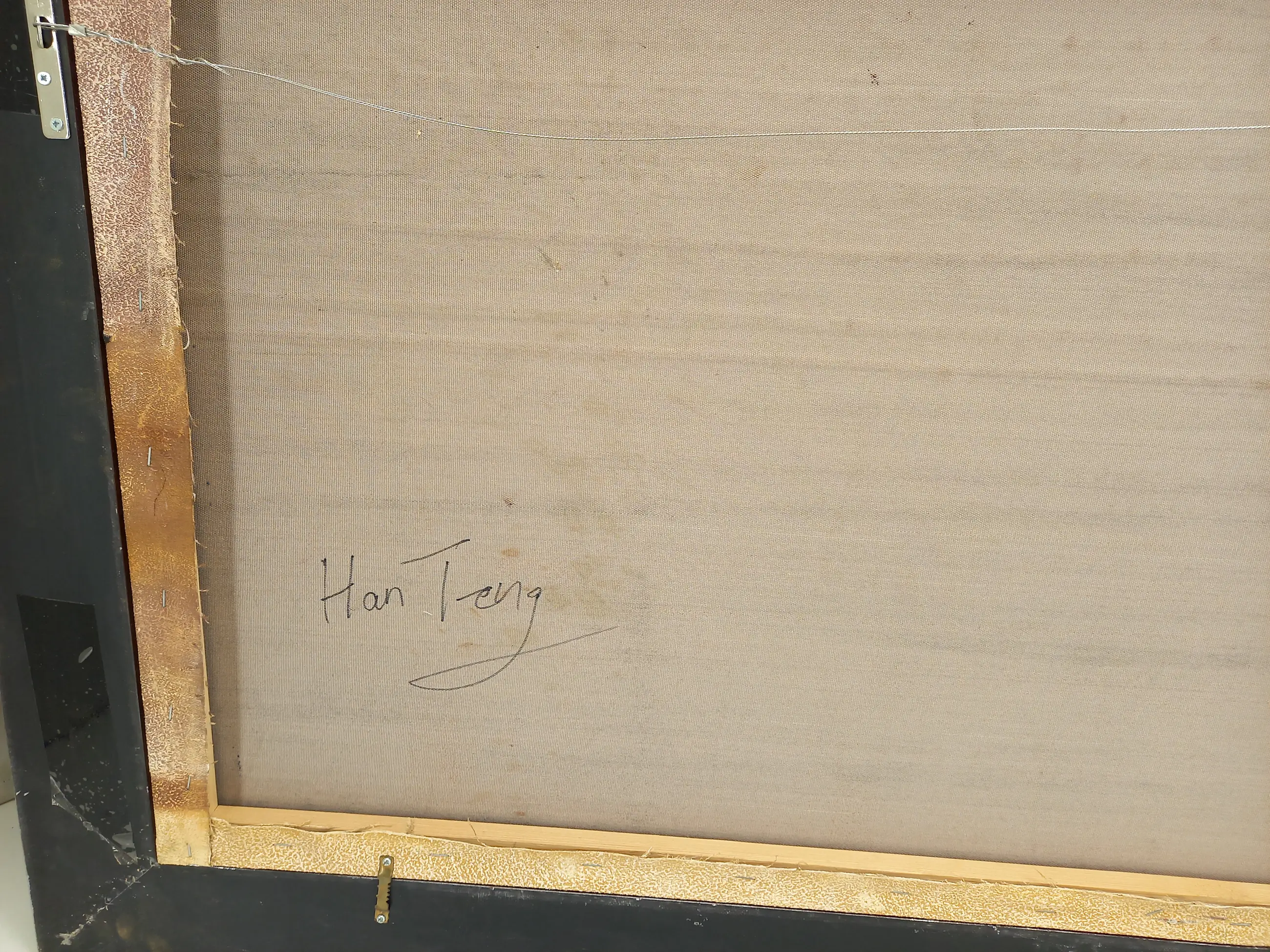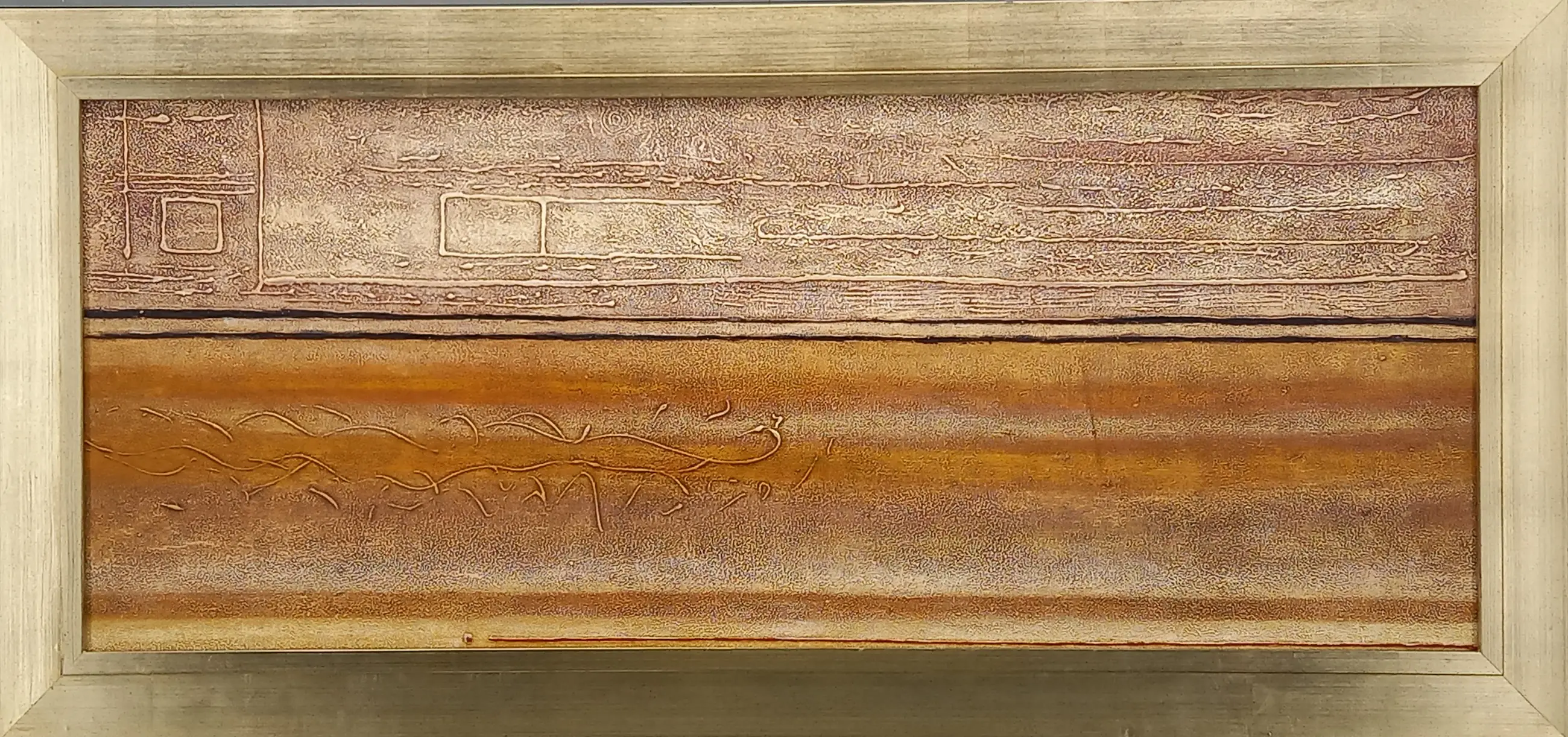 Schilderij in brede lijst. Gesigneerd op achterzijde.