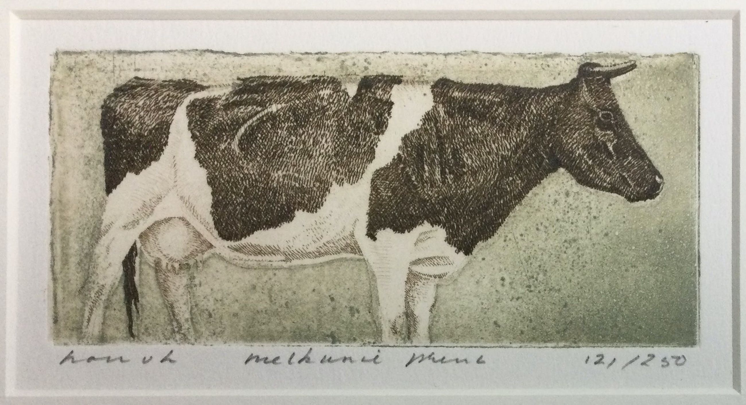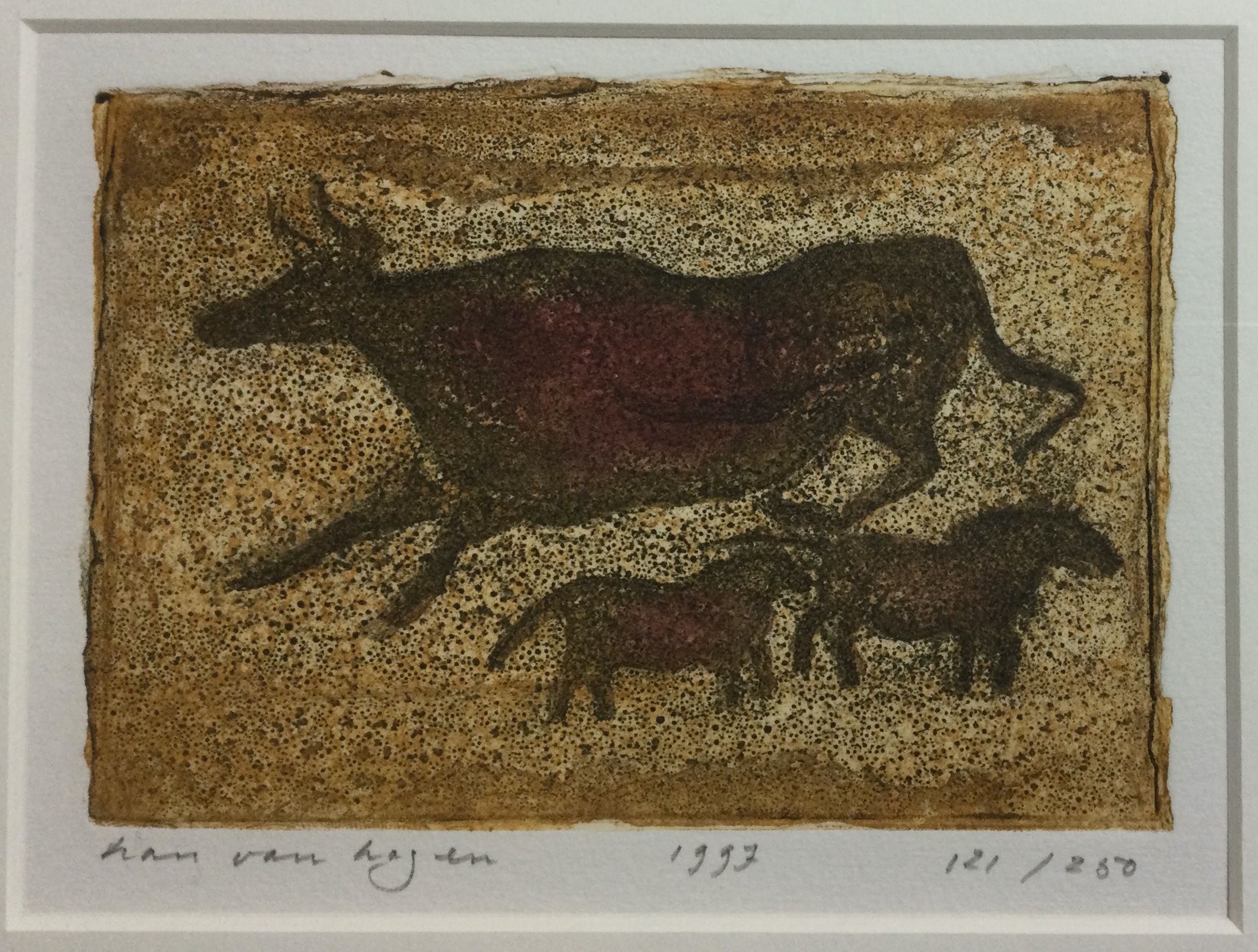 Han Hagen (1944) eind jaren '90 als relatiegeschenken een serie (4) etsen voor de Melkunie. Ze konden geen betere hiervoor vinden want Han is een ware meester etser als het om dieren, landschap en natuur gaat!