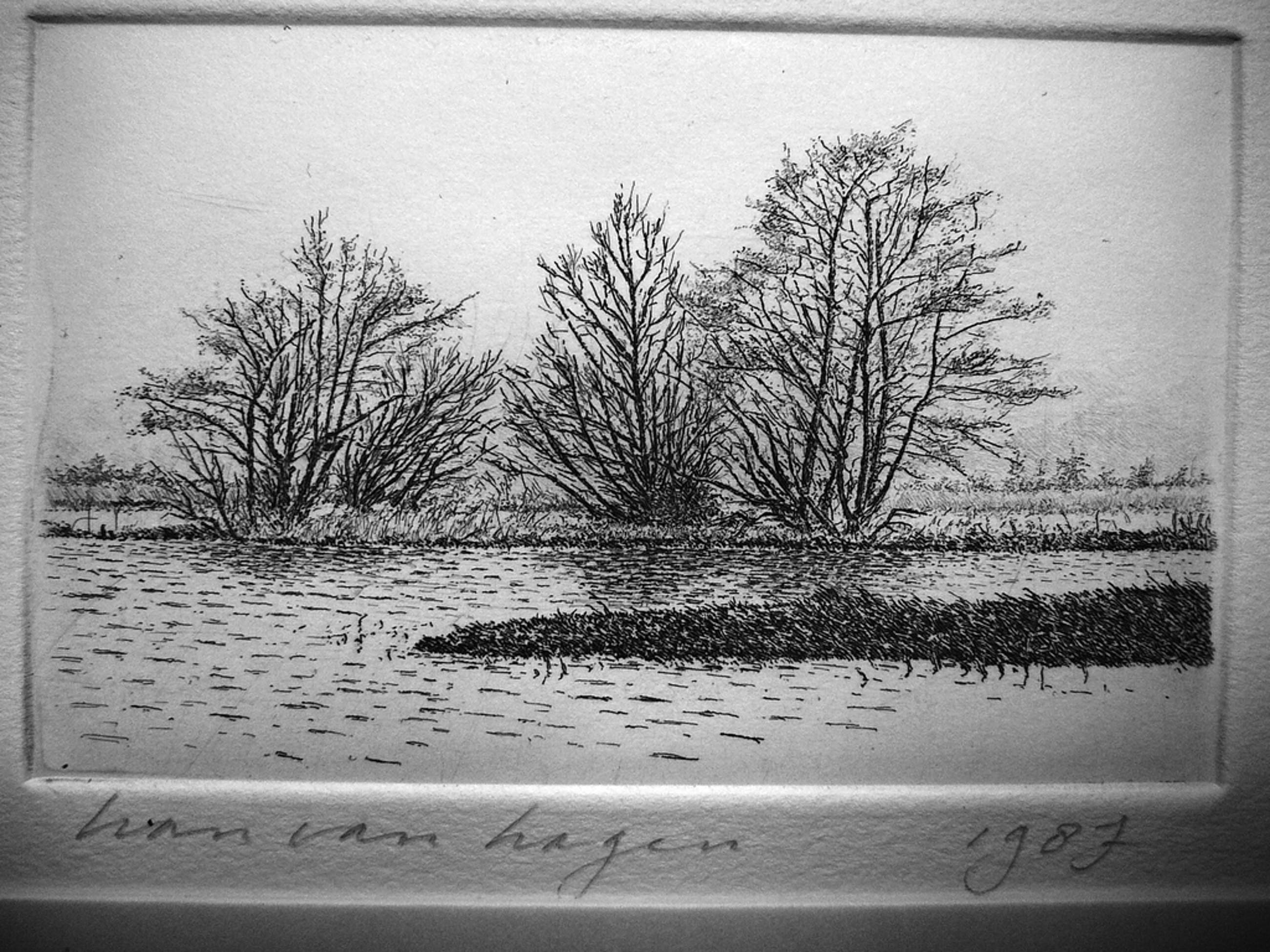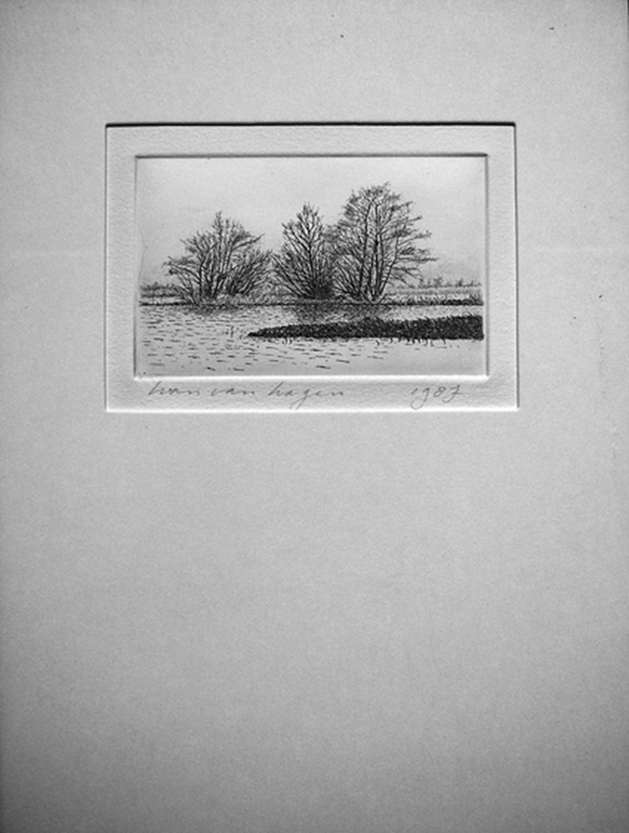 Mooi etsje in perfecte conditie van de prentkunstenaar Han van Hagen. Eenvoudige wissellijst.