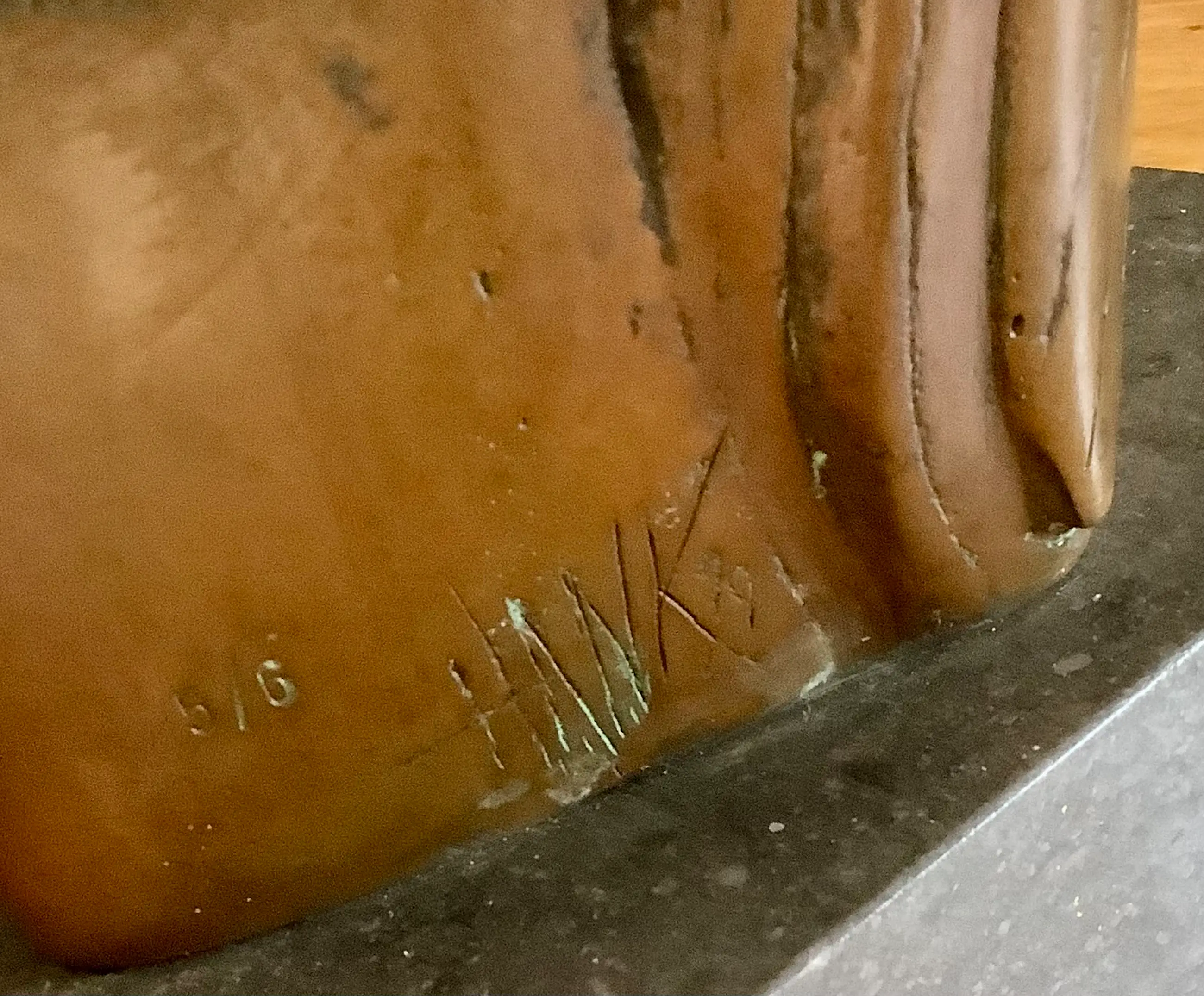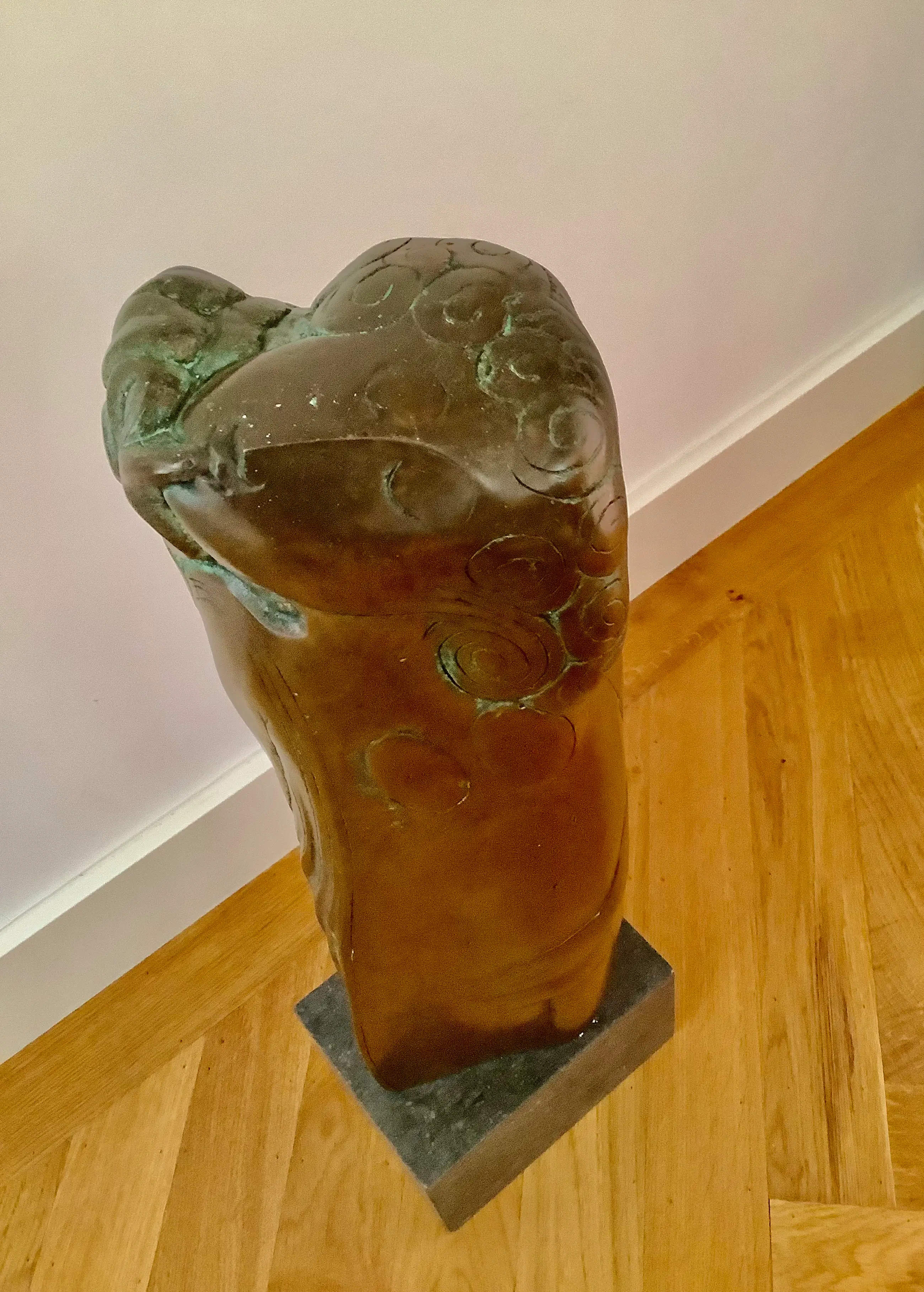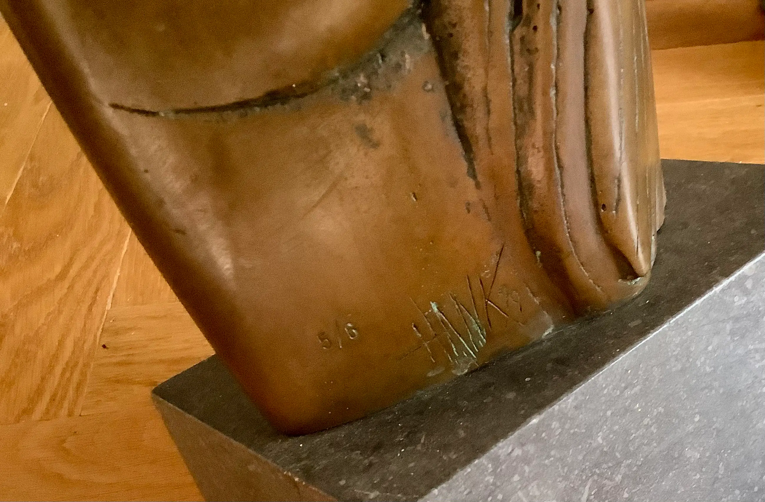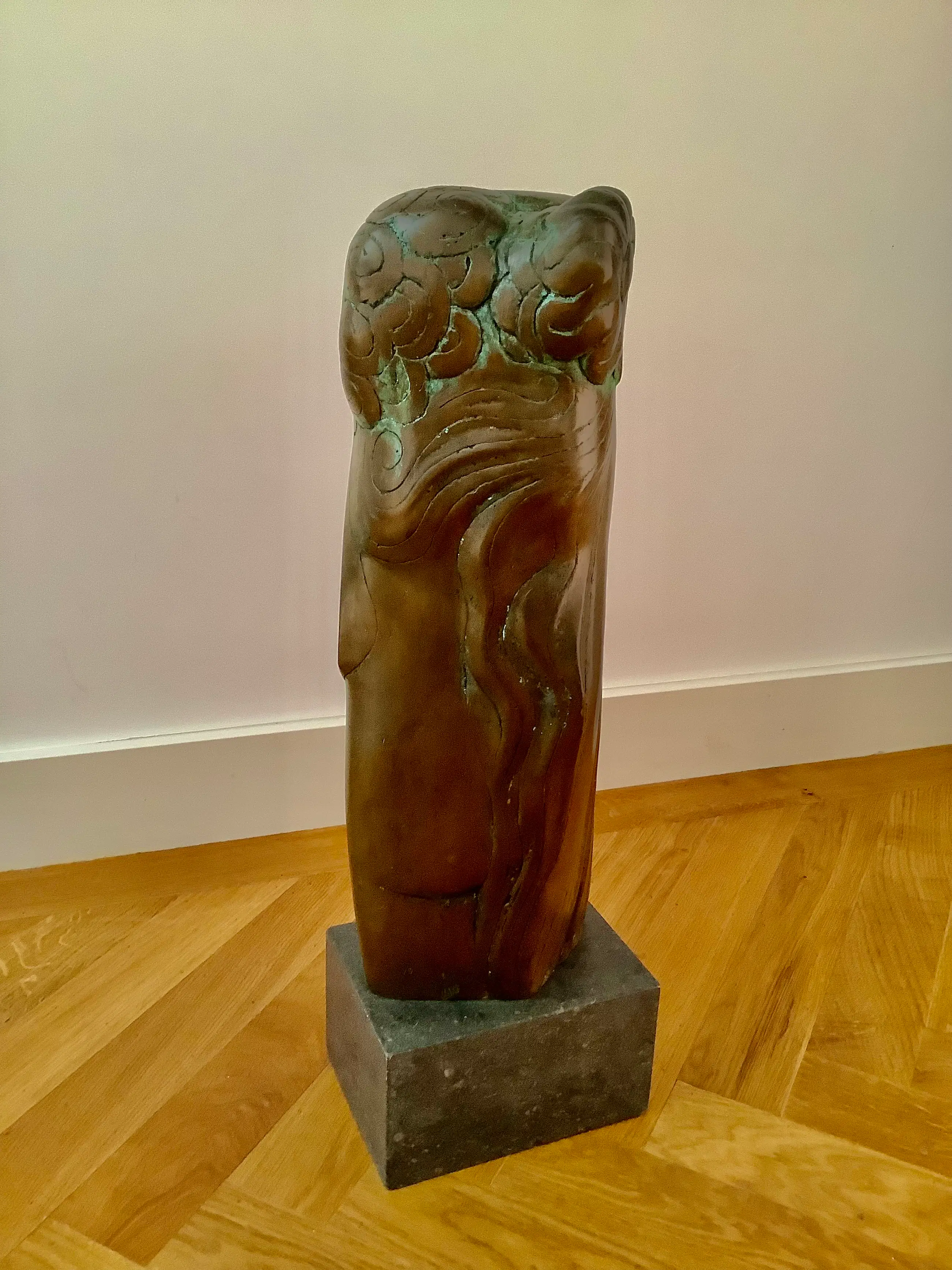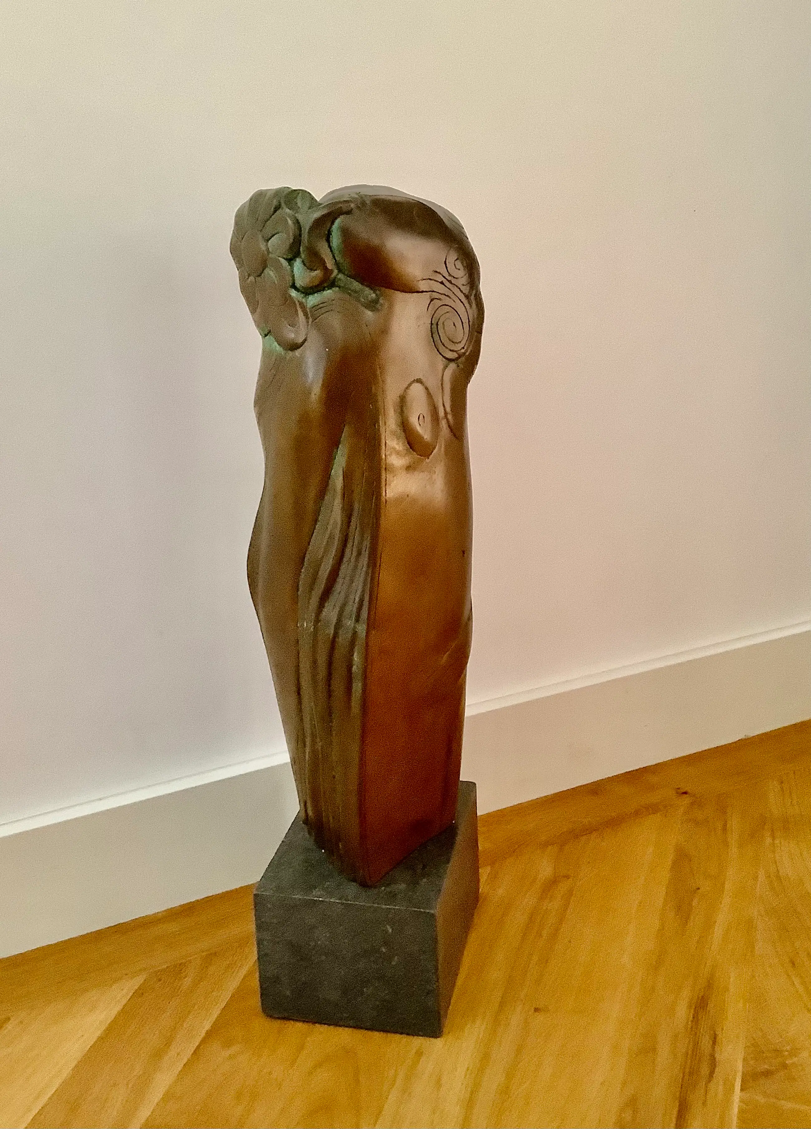 Grote sculptuur in de kenmerkende stijl van H. Beelenkamp. Op natuurstenen sokkel, afm. 10 x 18 x 13 cm. Mooie patina, elegant object. Kan ook buiten geplaatst worden. Alleen ophalen, zwaar object.