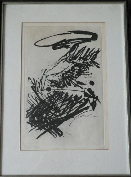 Radierung " Handwerk (von Lob der Hand)" , 1960" von 1959/60, die sich mit Henri Focillons "L'Eloge de la main" auseinandersetzt.