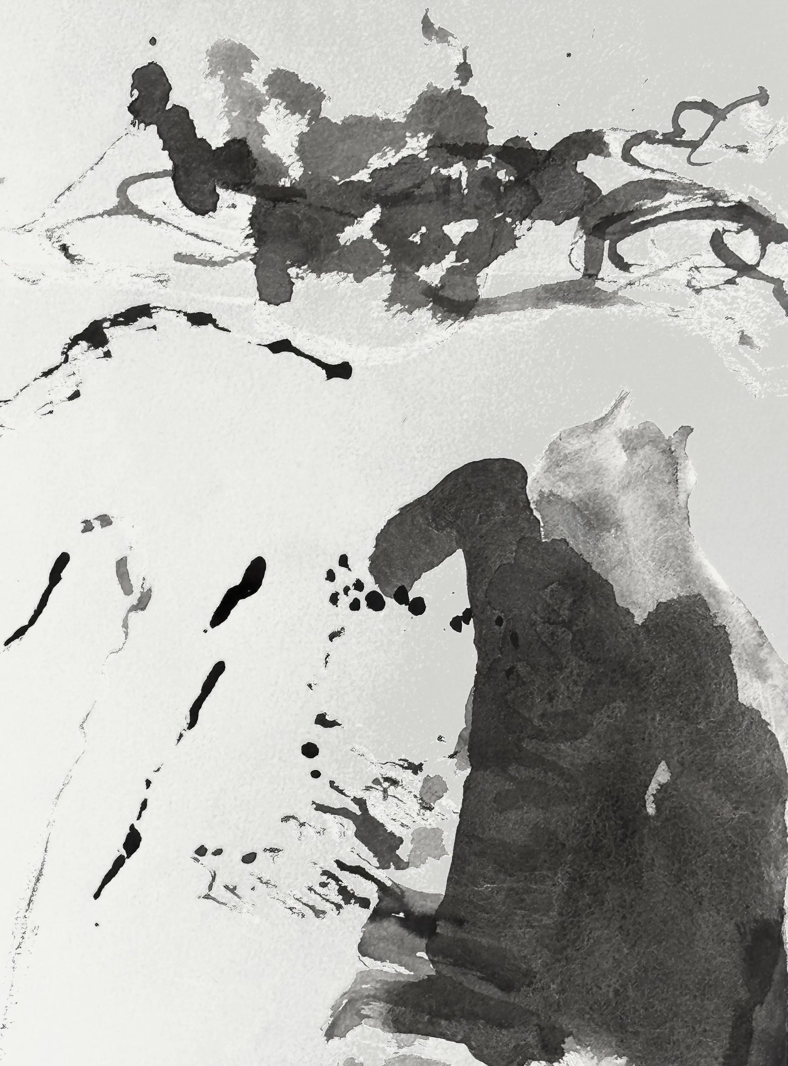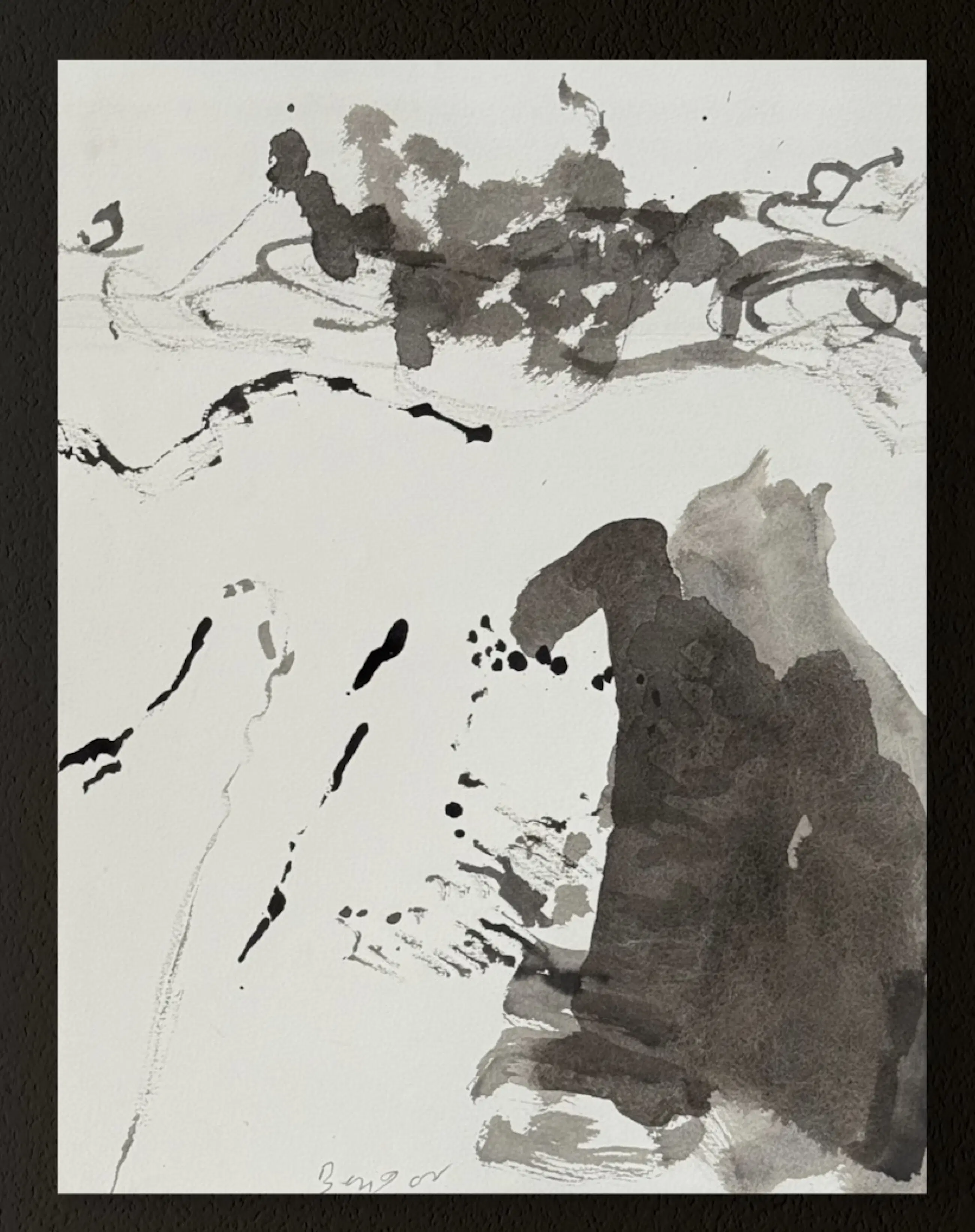 De hier gepresenteerde werken dateren uit de jaren 60, een beslissende periode waarin de kunstenaar de expressieve mogelijkheden van inkt en gewassen op papier verkende. Elk stuk getuigt van zijn subtiele verkenning van beweging, spoor en de ademhaling van het medium.