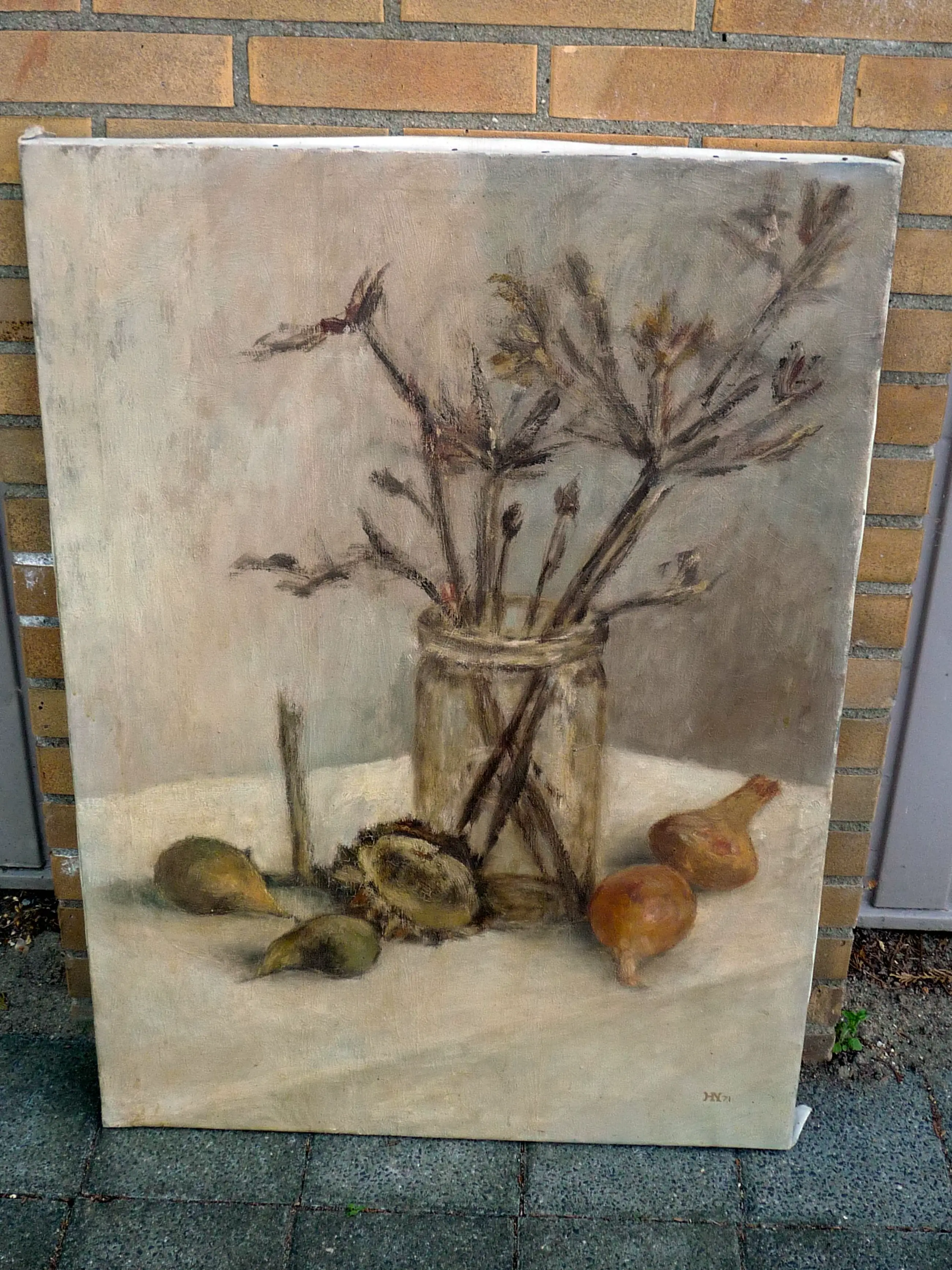 | Conditie van het schilderij tussen zeer goed en goed in. | |||||||||||