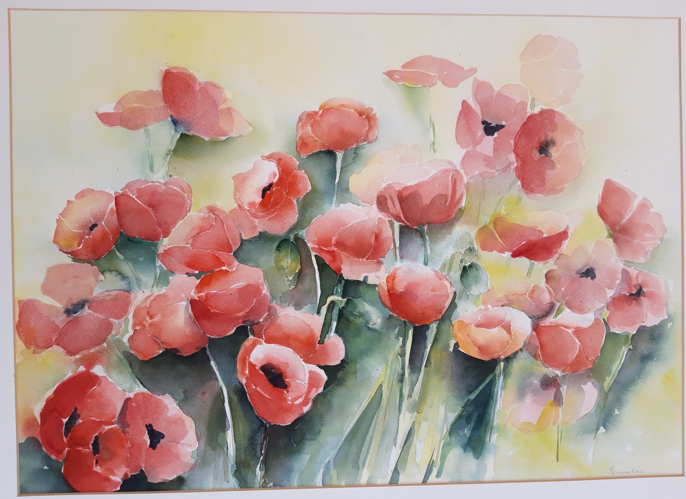 Aquarel 'Papavers' van Hannelore Noordeloos