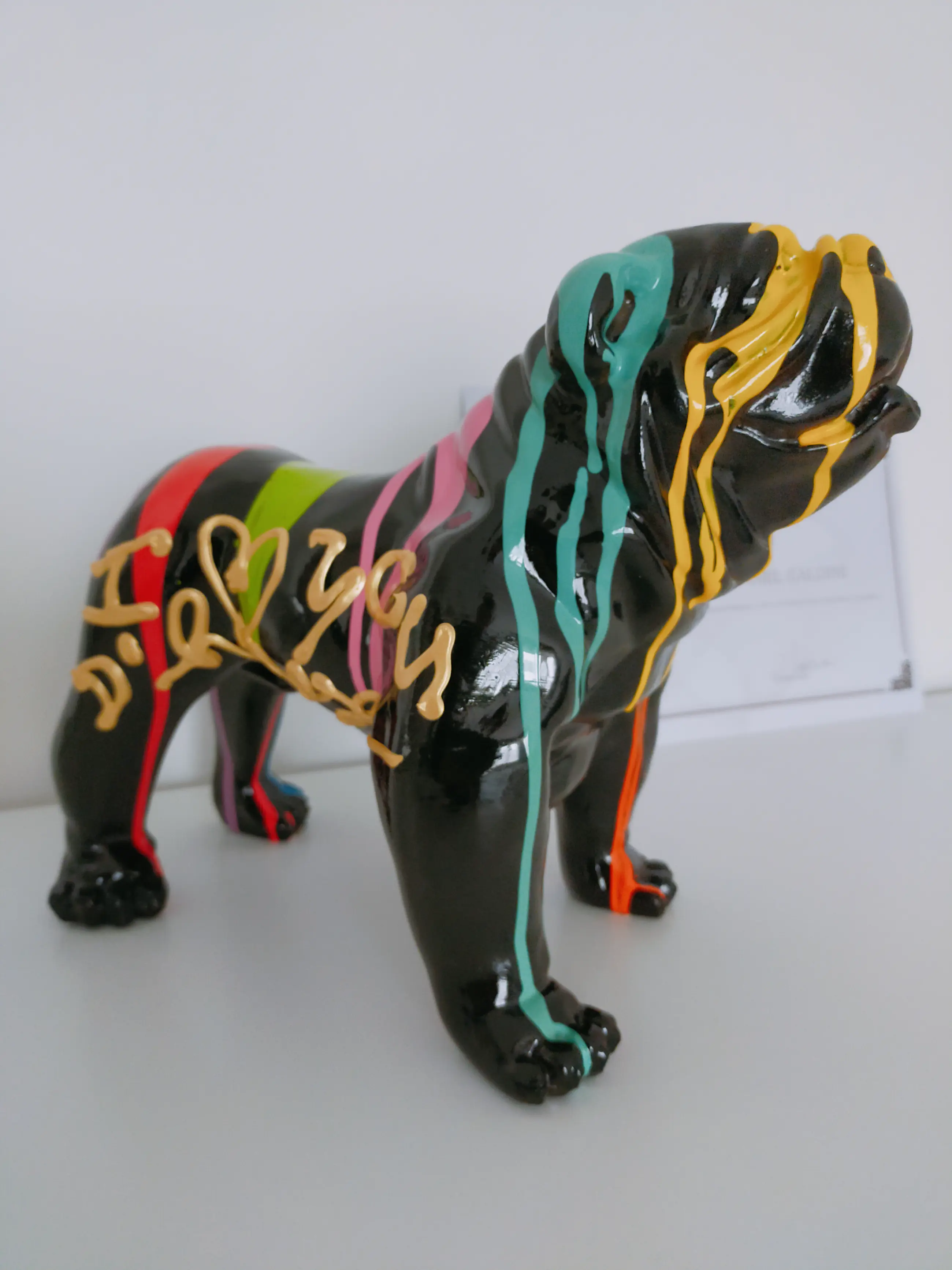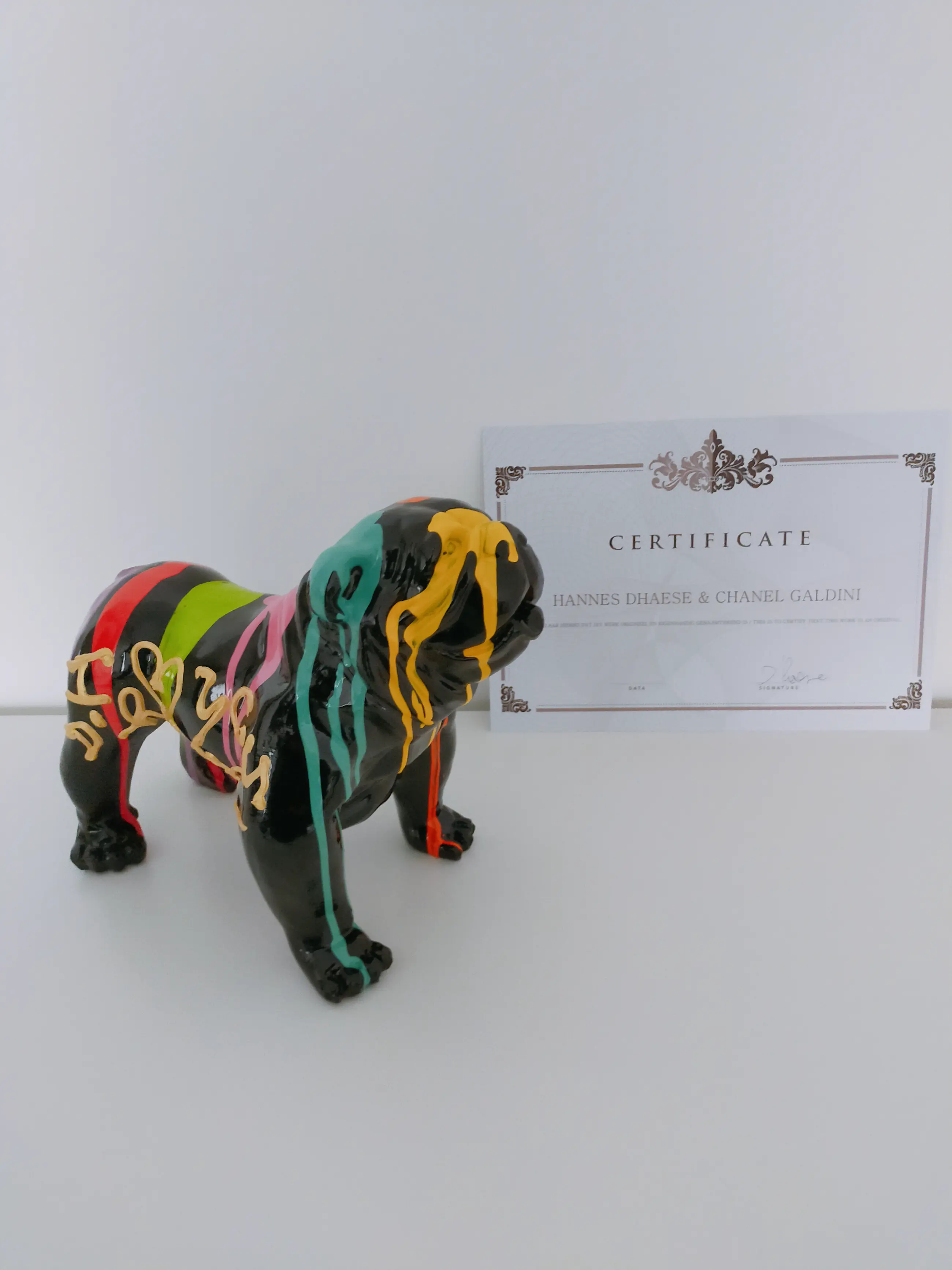 Hannes D'Haese - English bulldog black i love you Handgesigneerd Met echtheidscertificaat Kunsthars Rechtstreeks van de kunstenaar Nieuw