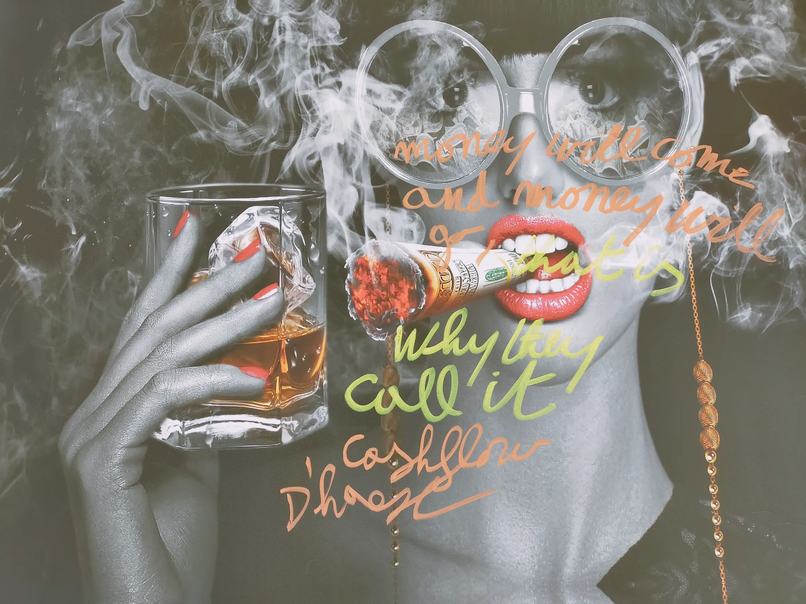 Hannes D'Haese - Money will come and money will go... Mixed media Print op doek Handgeschreven tekst Handgesigneerd Met echtheidscertificaat